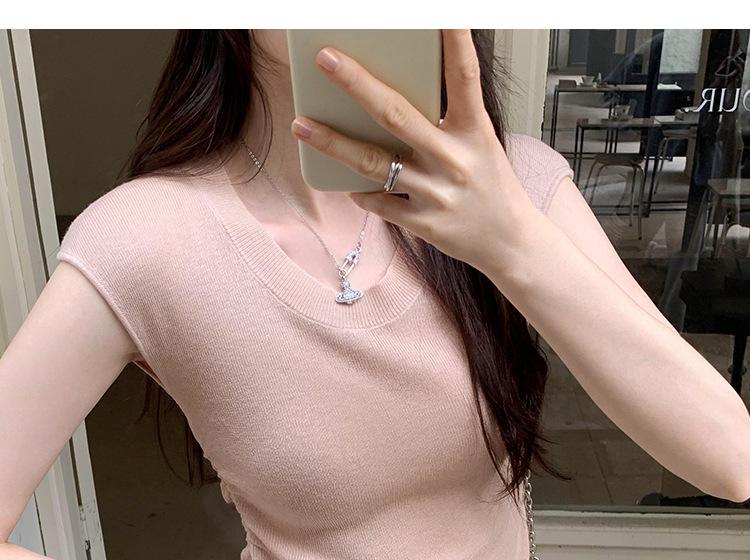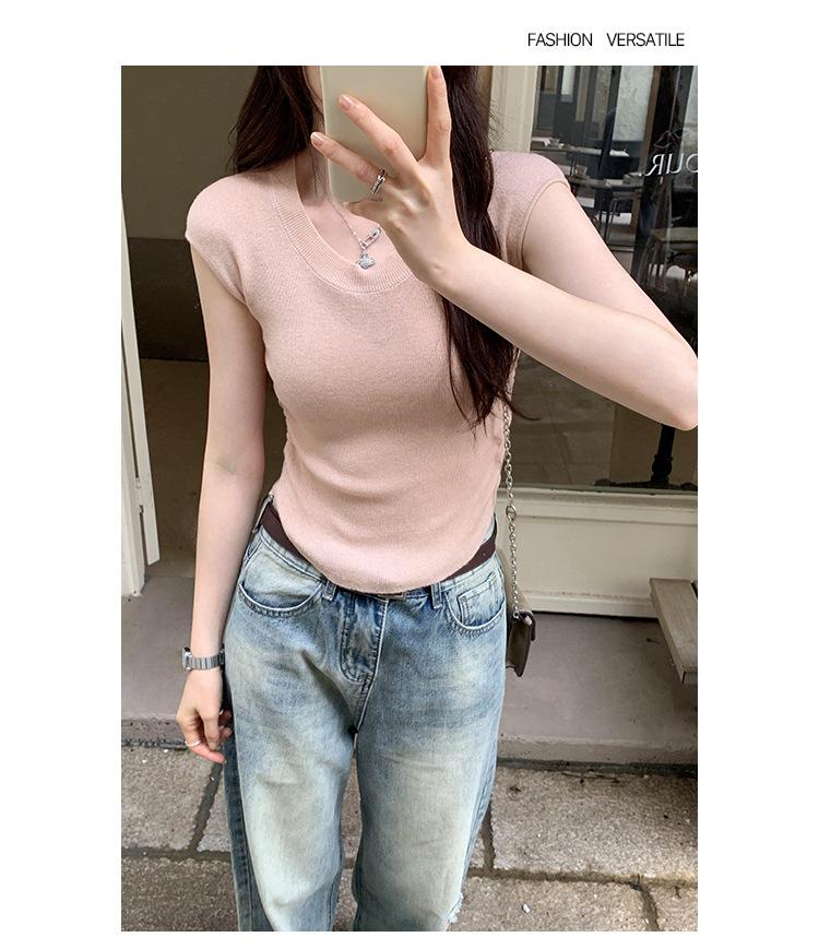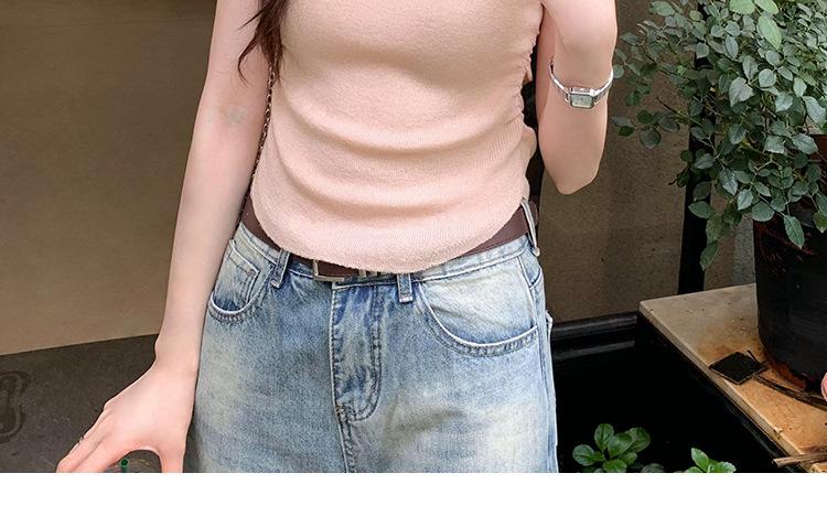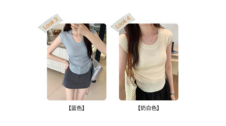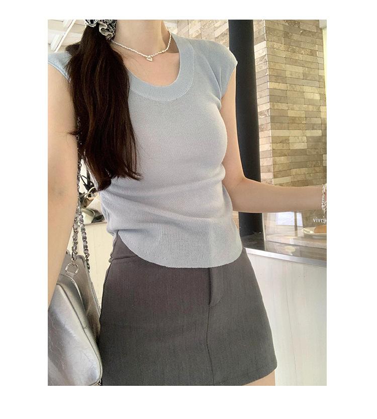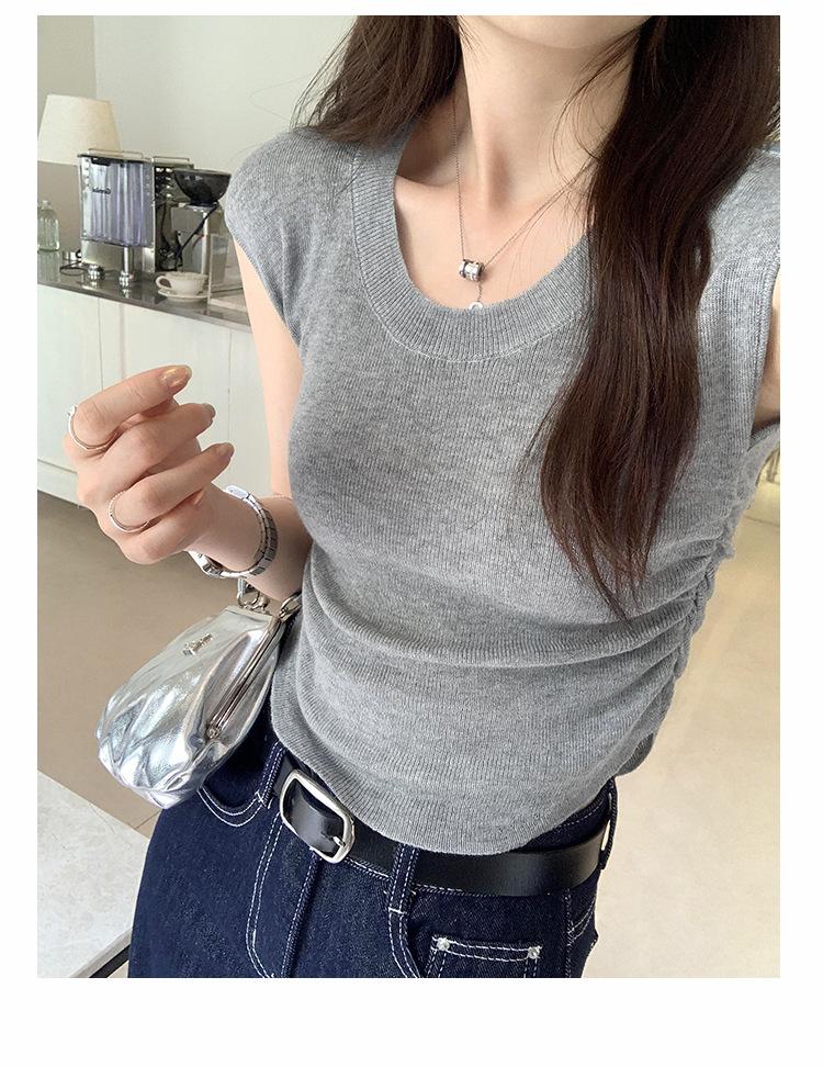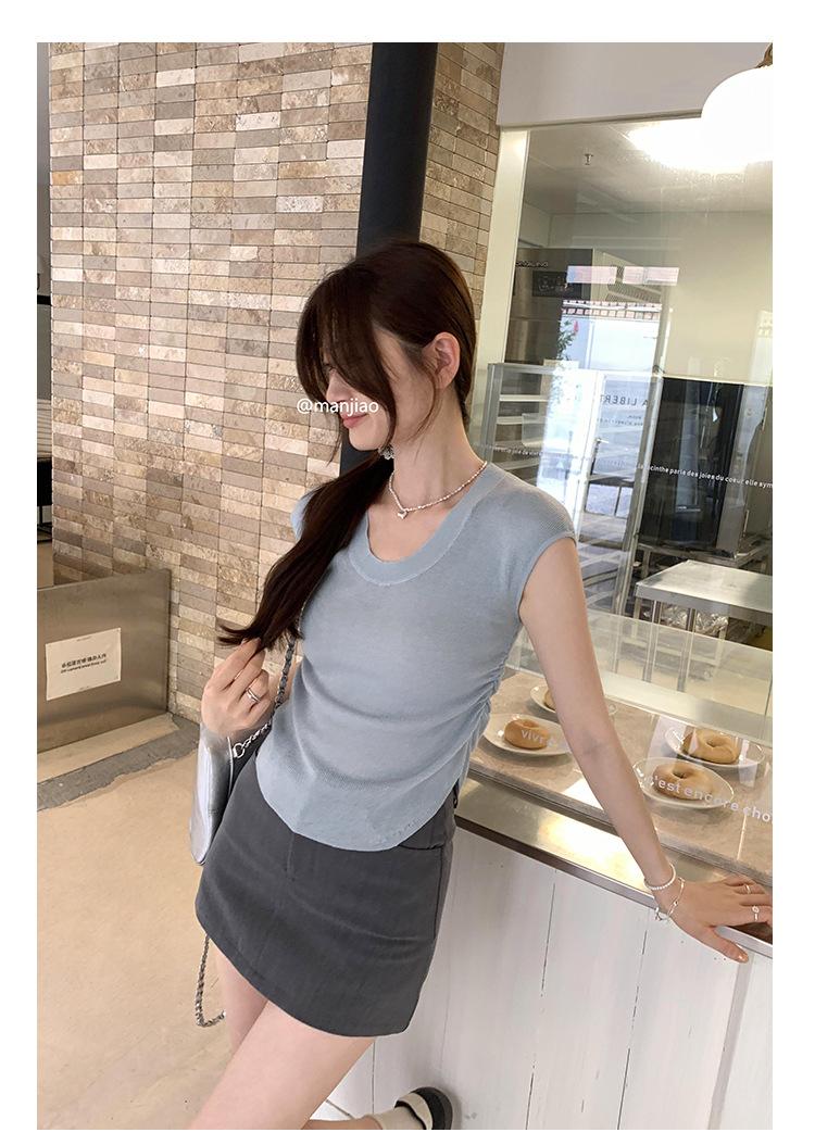 Camiseta de manga corta con hombros descubiertos para mujer, de algodón, de verano, ajustada, plisada, de corte entallado y diseño irregular.