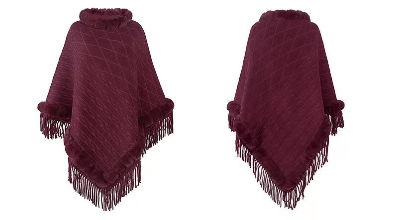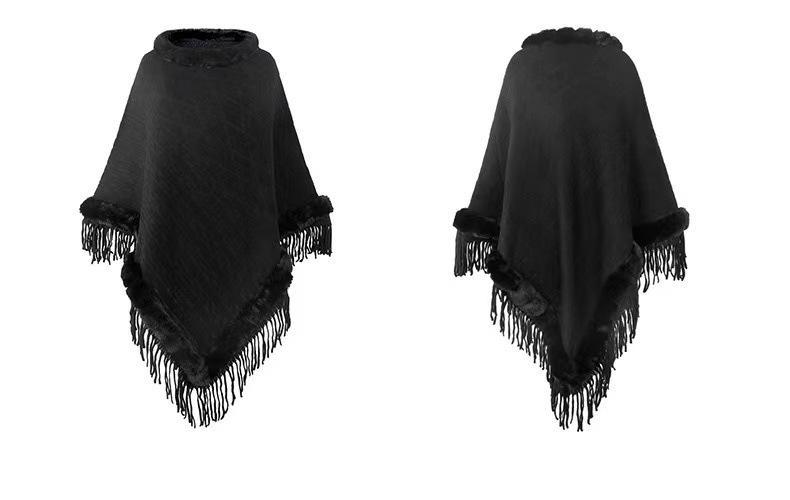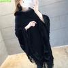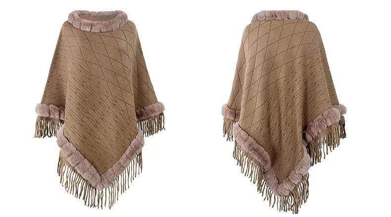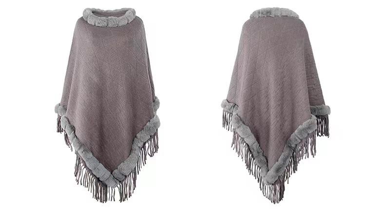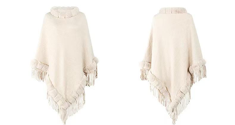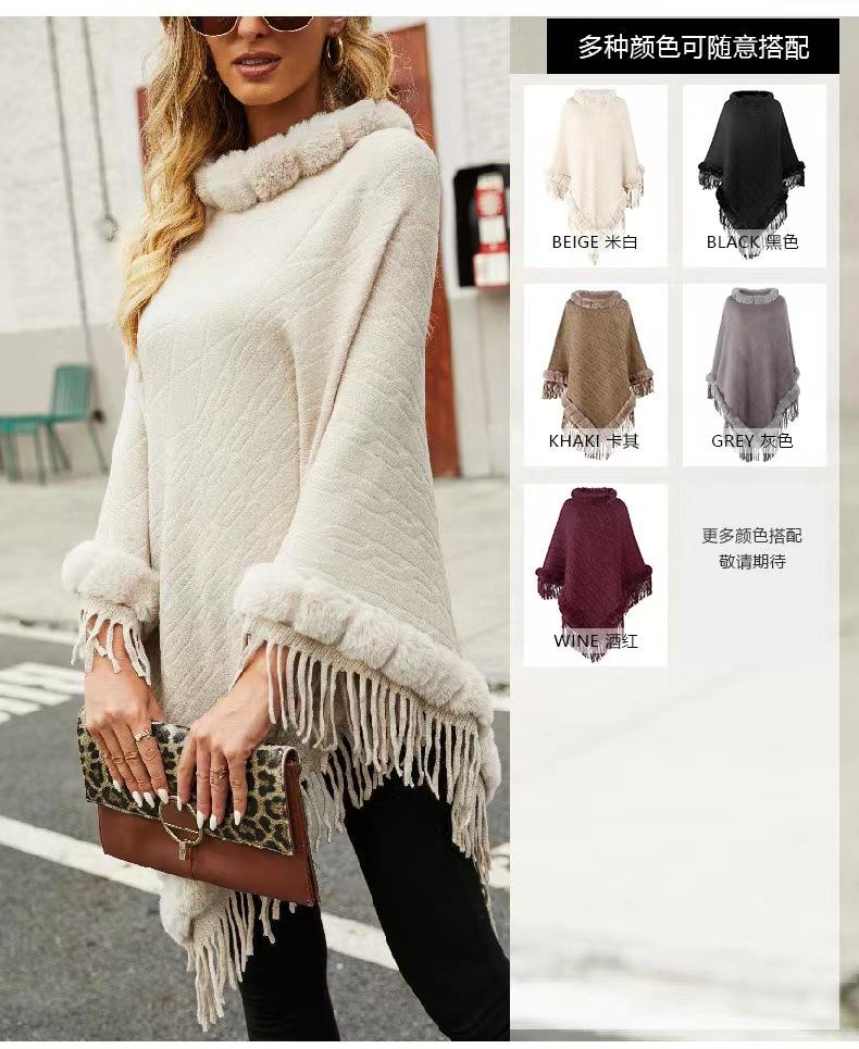 Otoño e invierno nuevo europeo y americano otoño e invierno nuevo jersey de cuello de piel de punto moda borla capa capa exterior