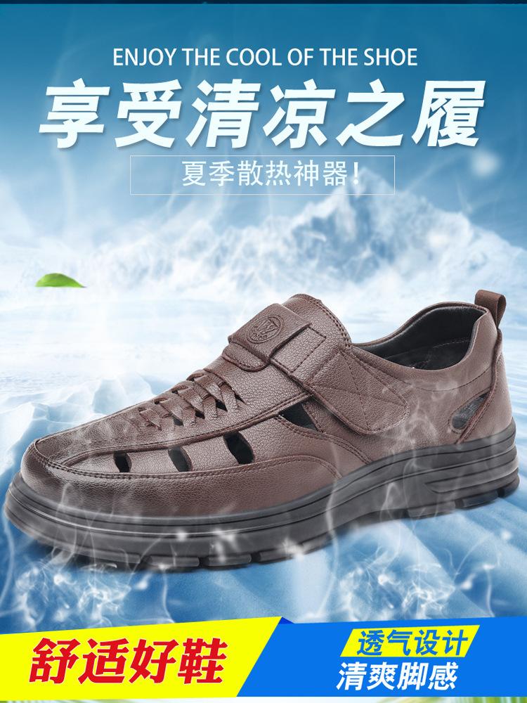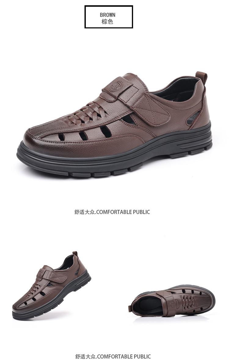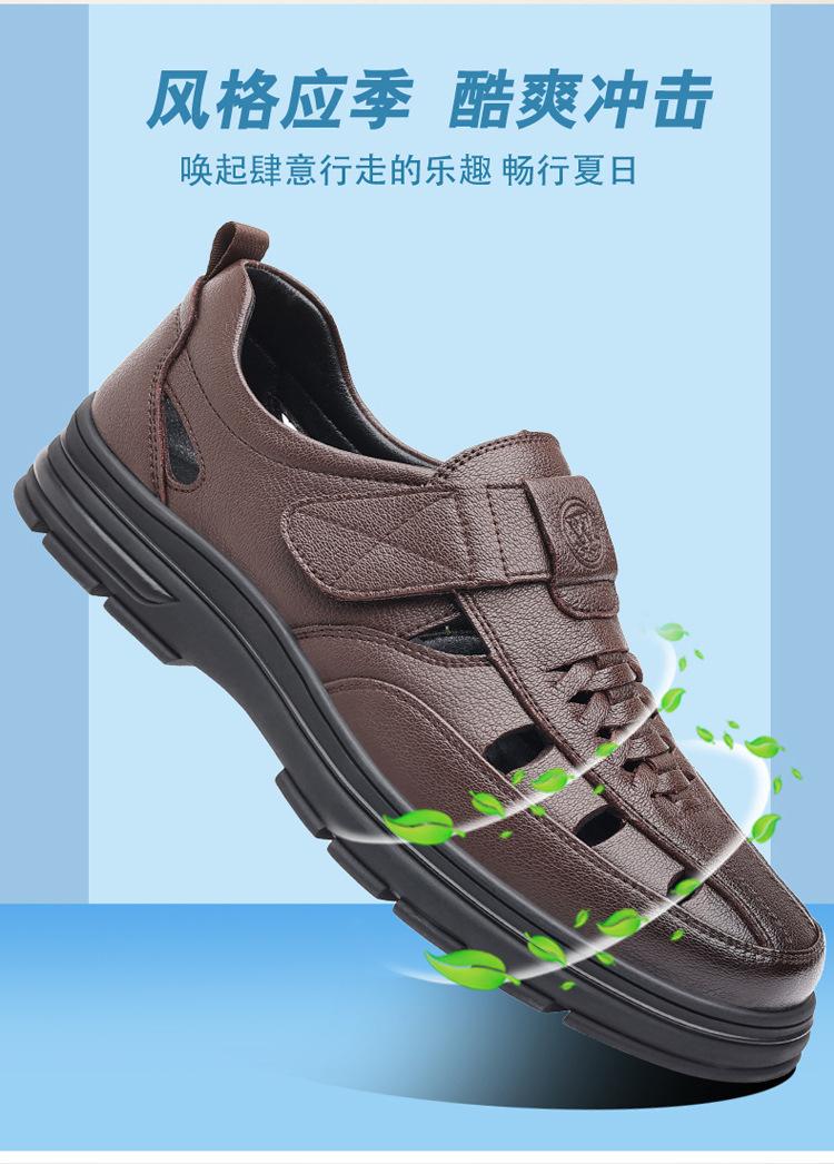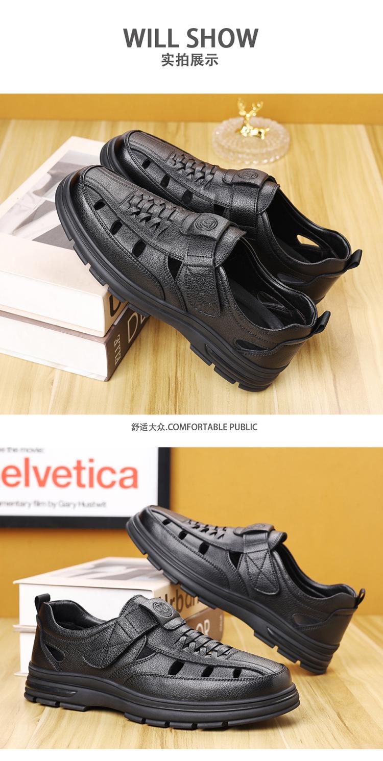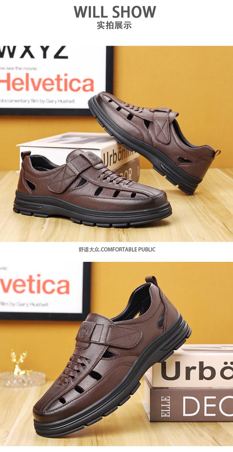 Zapatos casuales de cuero para hombre, sandalias de suela suave para papá de mediana edad, con agujeros transpirables, para el cabello, novedad de verano de 2024