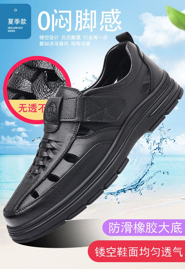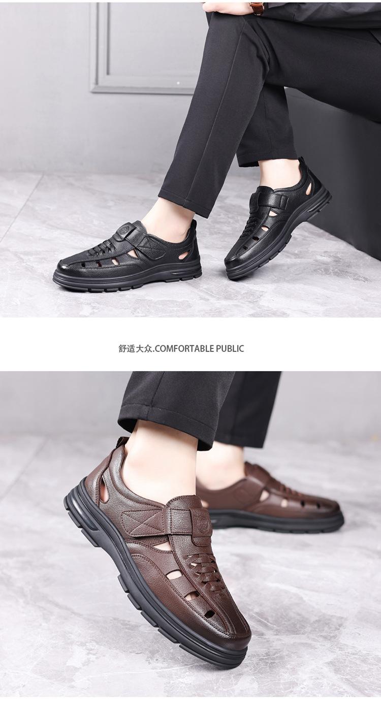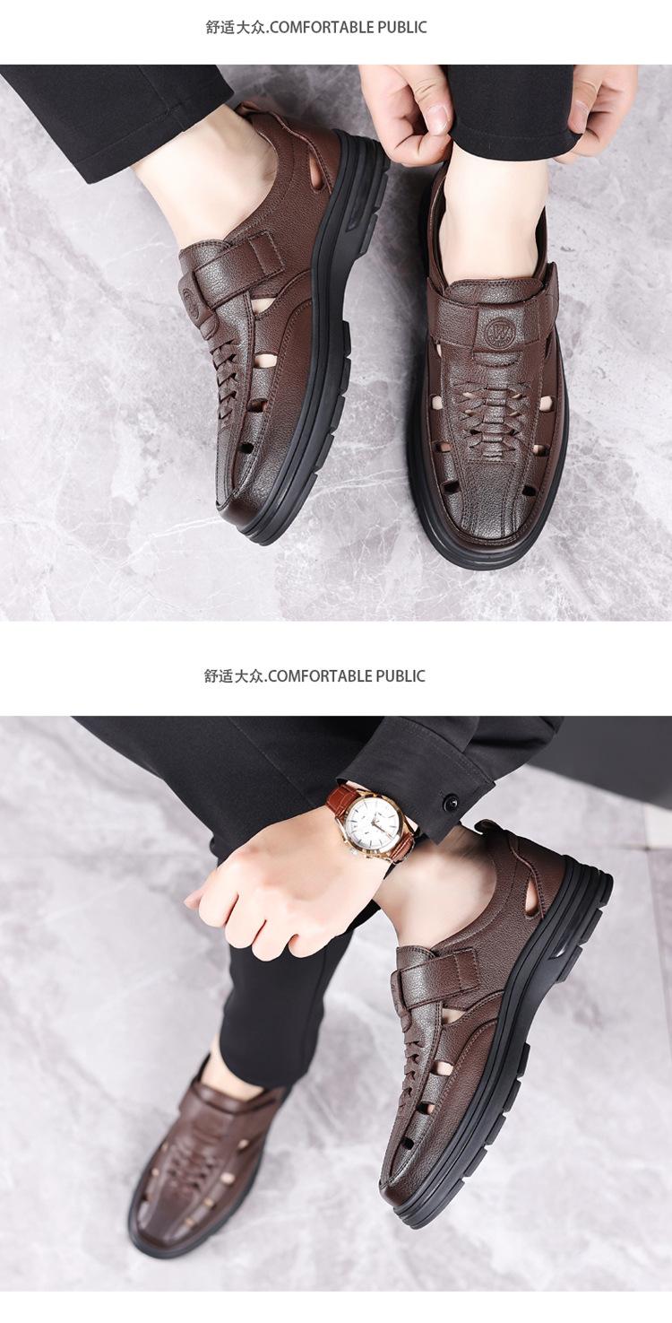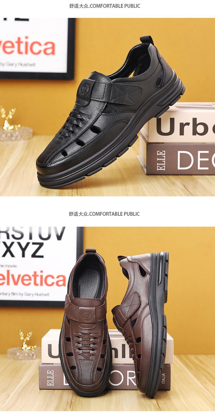 Zapatos casuales de cuero para hombre, sandalias de suela suave para papá de mediana edad, con agujeros transpirables, para el cabello, novedad de verano de 2024