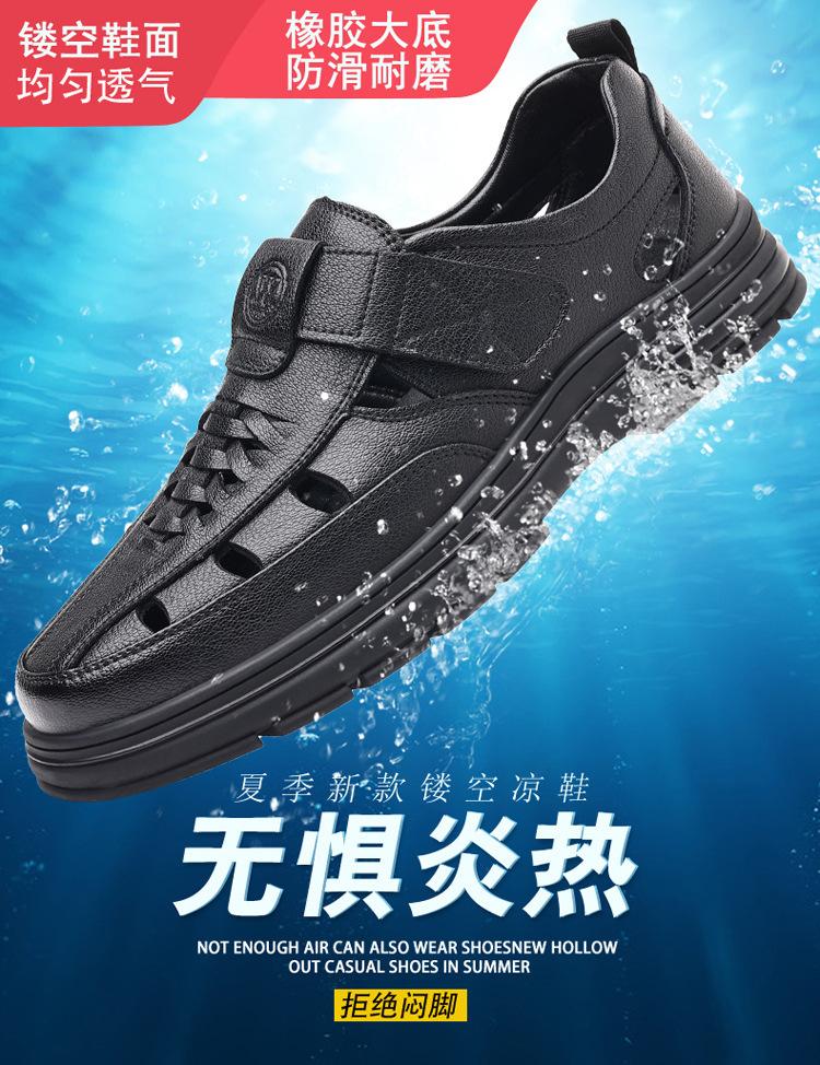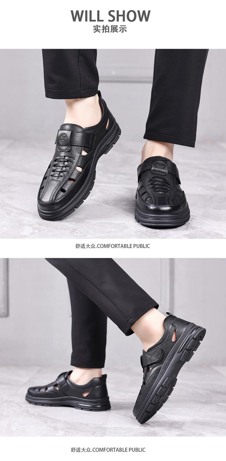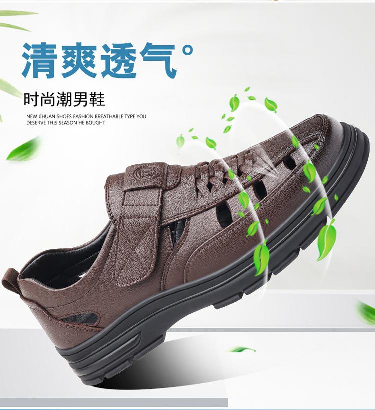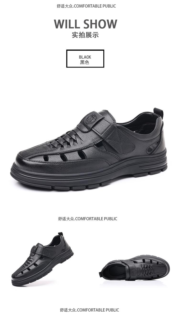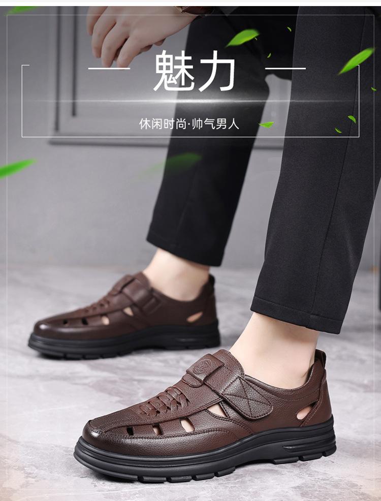 Zapatos casuales de cuero para hombre, sandalias de suela suave para papá de mediana edad, con agujeros transpirables, para el cabello, novedad de verano de 2024