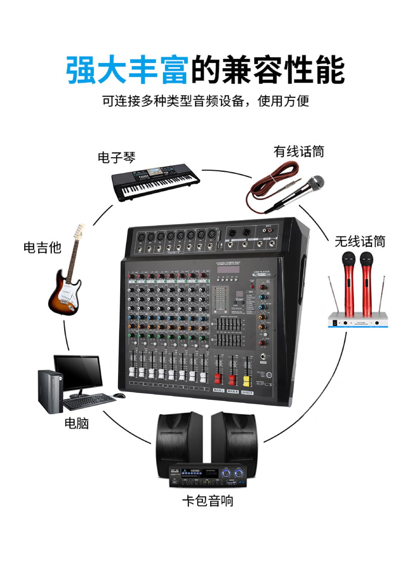 1. Mezclador todo en uno de ocho canales con amplificador de potencia