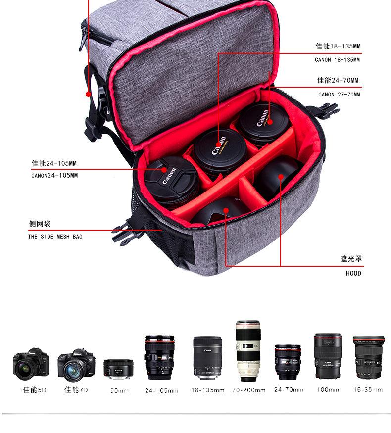 Esta bolsa para cámara de un solo hombro utiliza tela impermeable de alta densidad, impermeable, resistente a los arañazos y al desgaste. ¡Un producto de alta calidad!