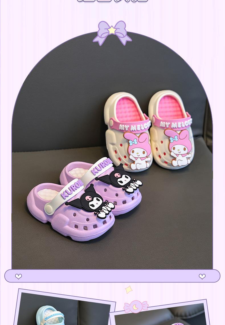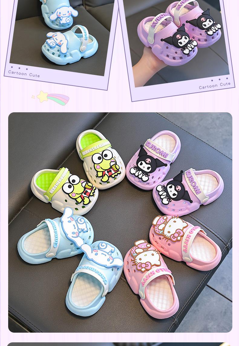 Pantuflas de verano para niños Sanrio para niñas, zapatos con agujeros para casa, antideslizantes, sandalias para bebé para niño pequeño, punta cerrada, para uso exterior