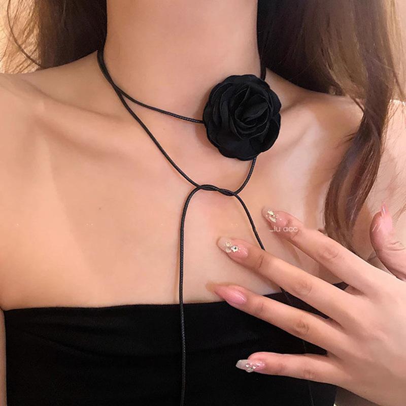 Collar transfronterizo europeo y americano, gargantilla femenina con temperamento, cadena de clavícula de alta gama, collar con personalidad, collar de cadena de flores de rosa hecho a mano