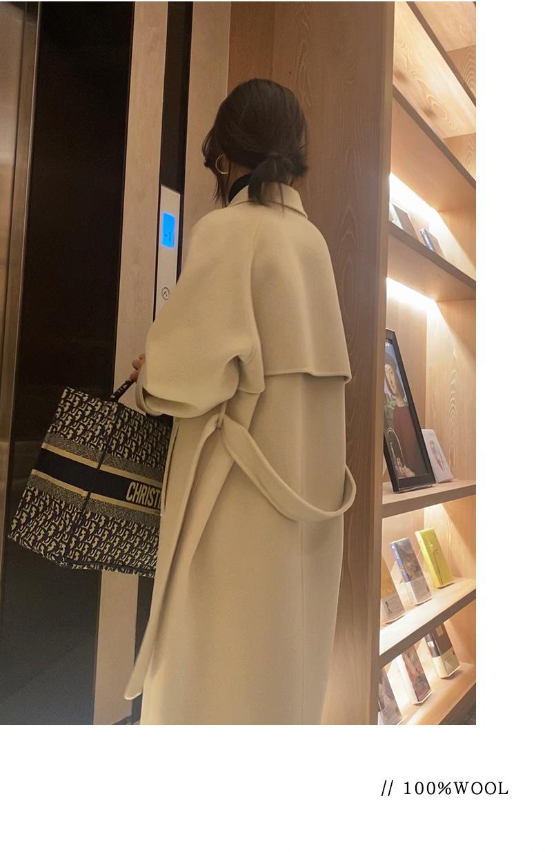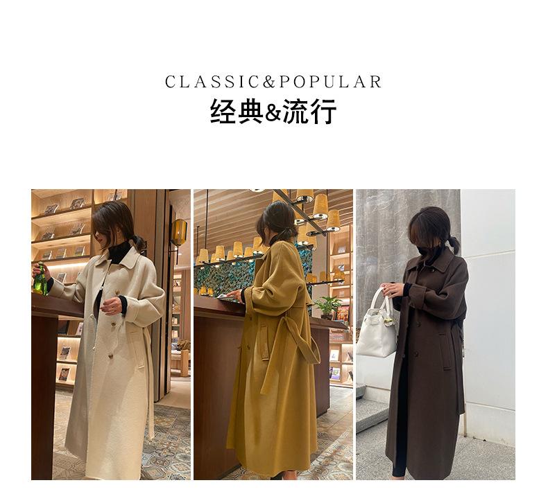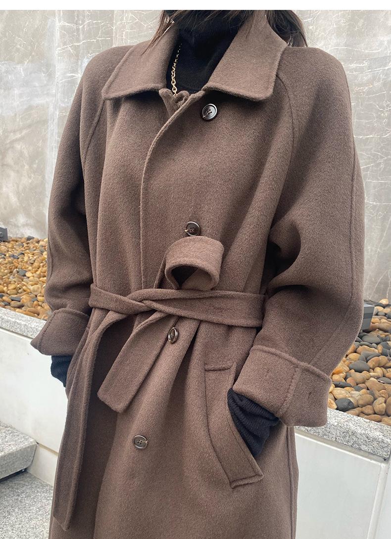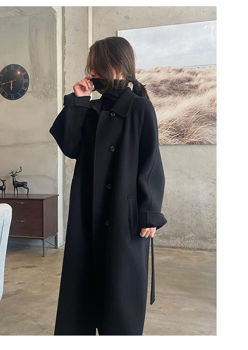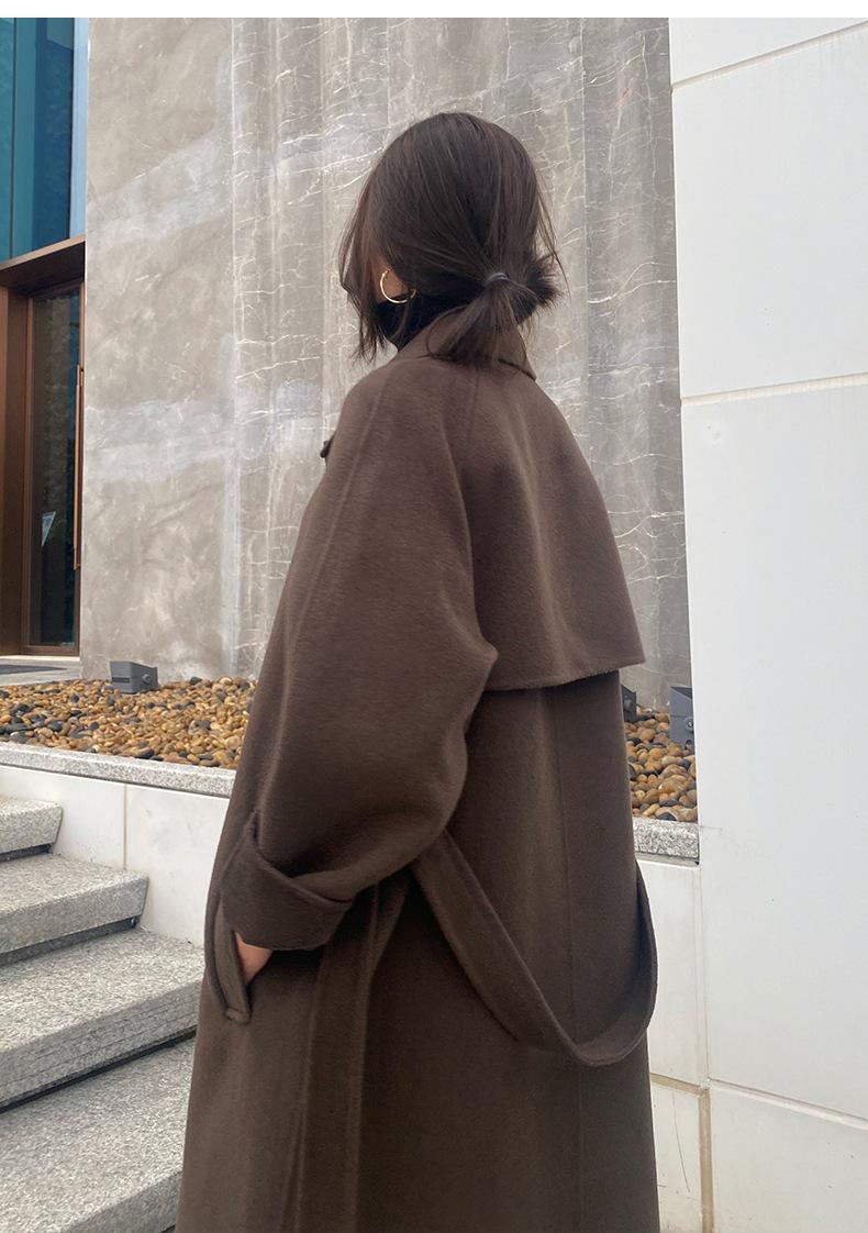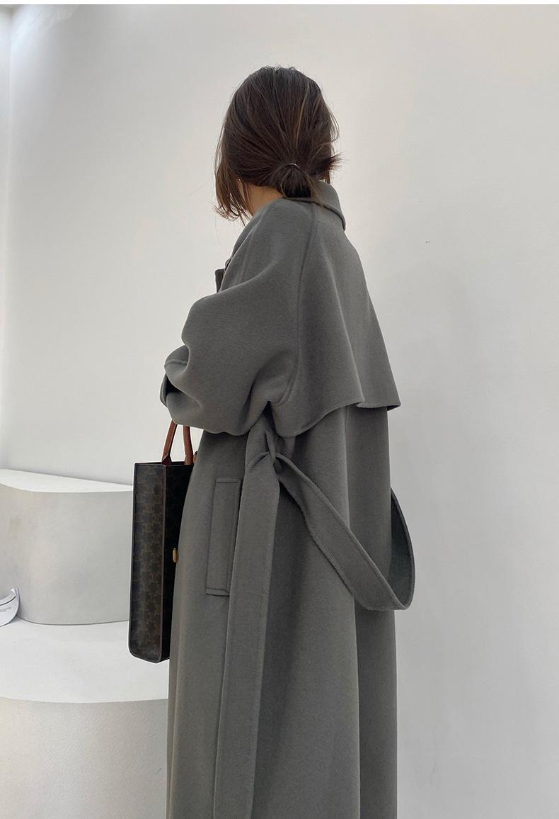 Abrigo de lana de doble cara, clásico, holgado, elegante, con cordones, largo y combinable.