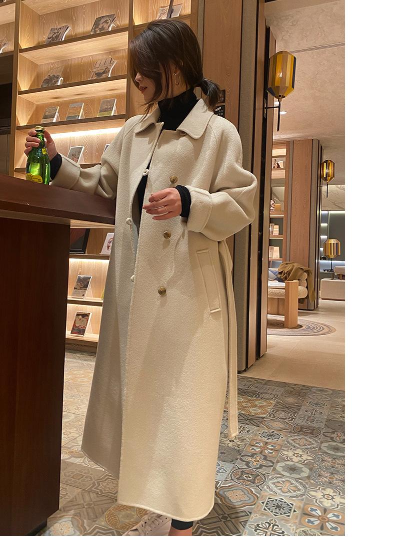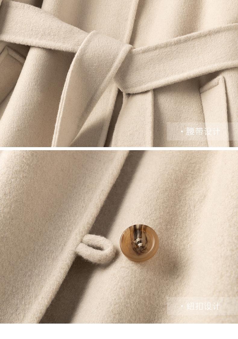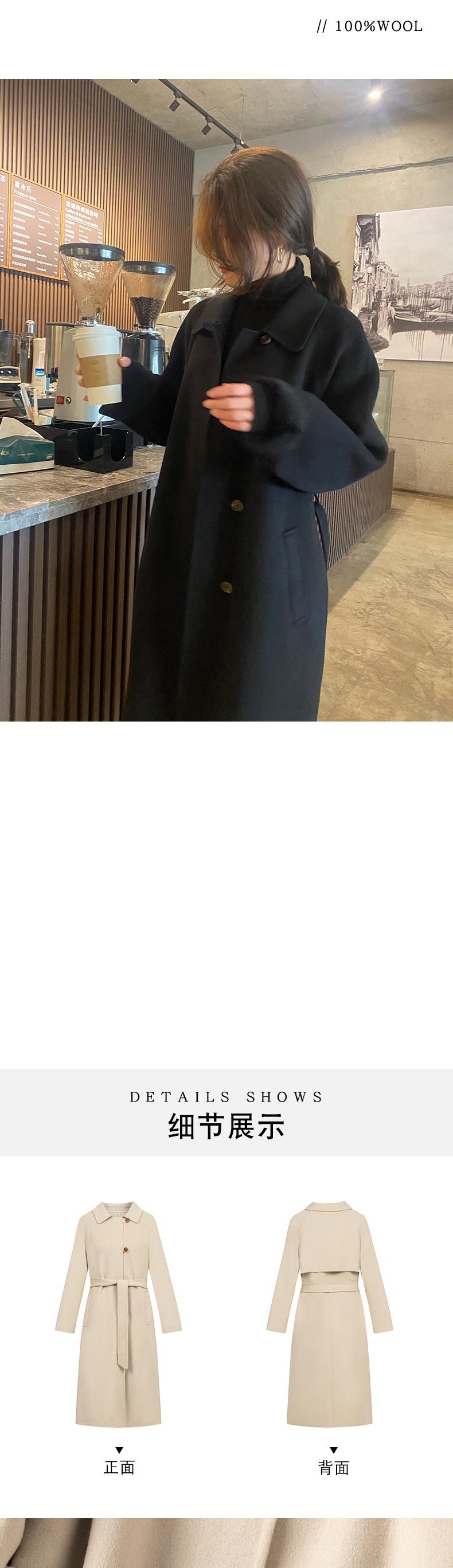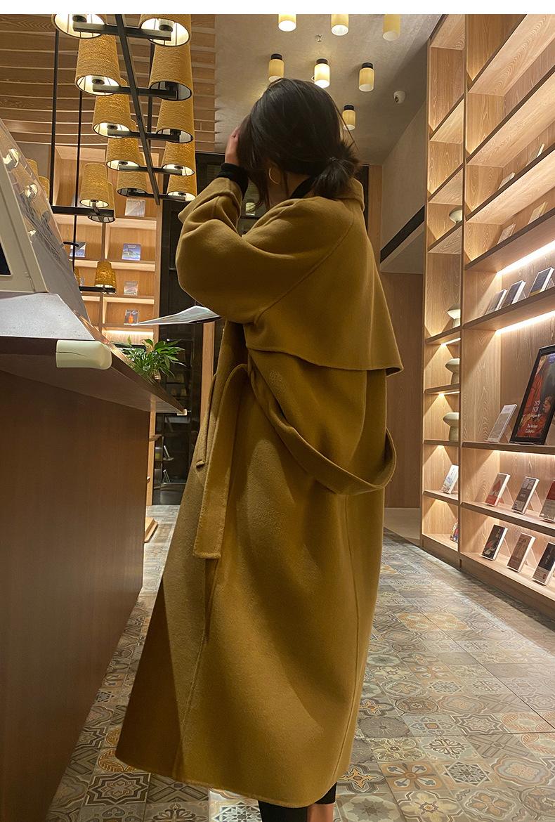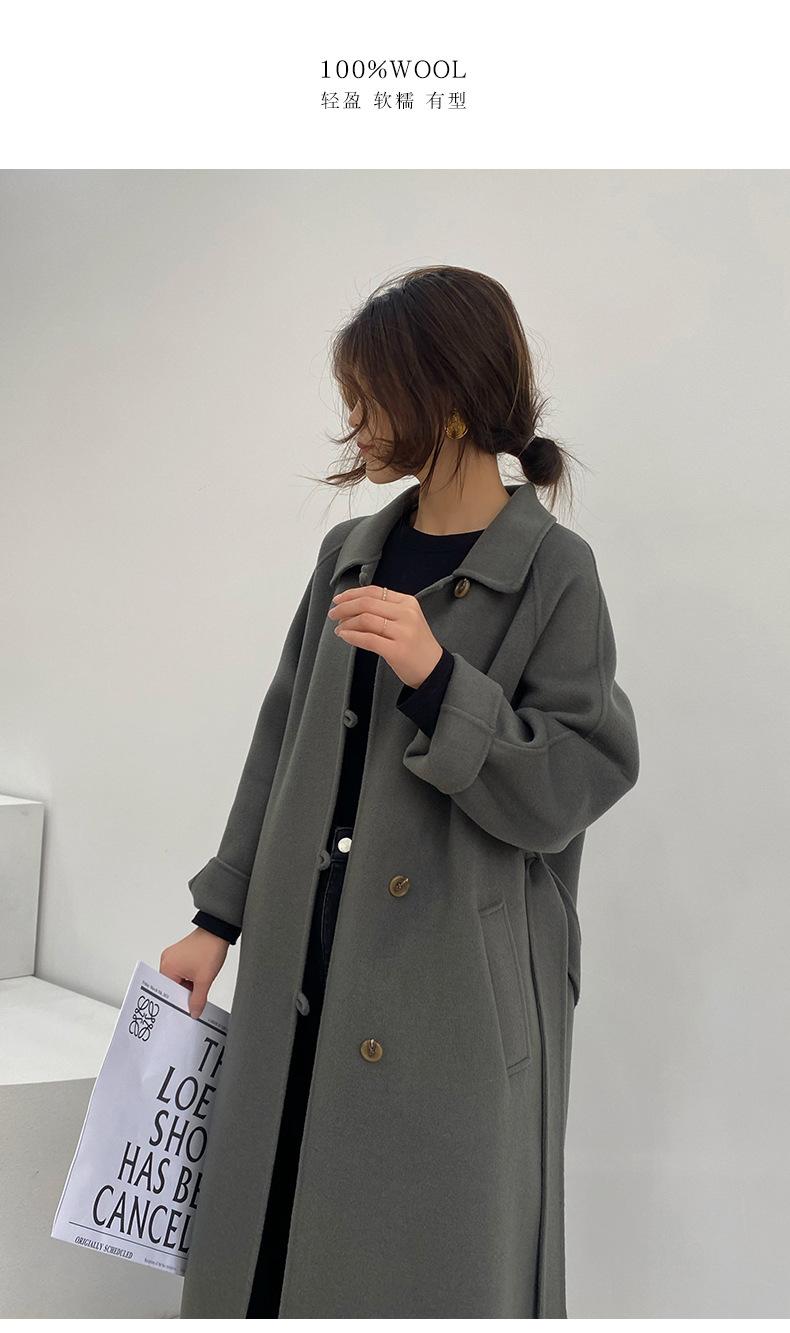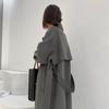 Abrigo de lana de doble cara, clásico, holgado, elegante, con cordones, largo y combinable.