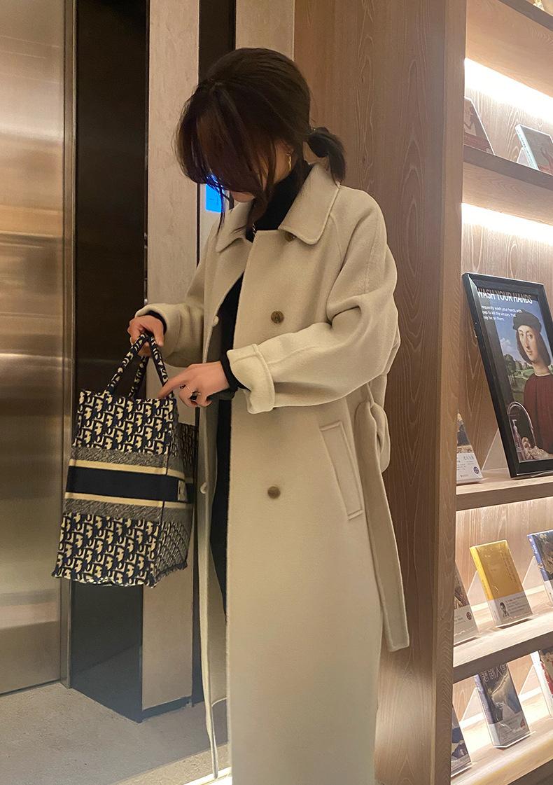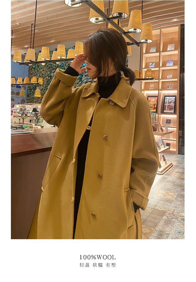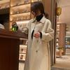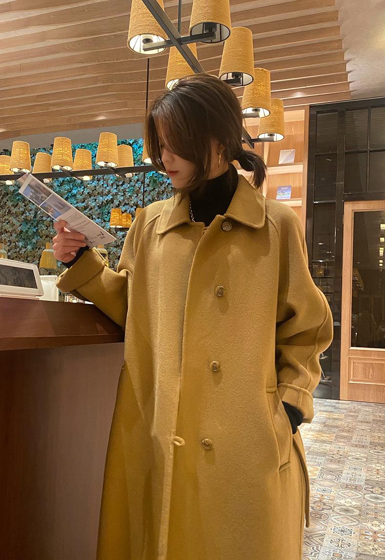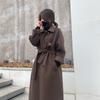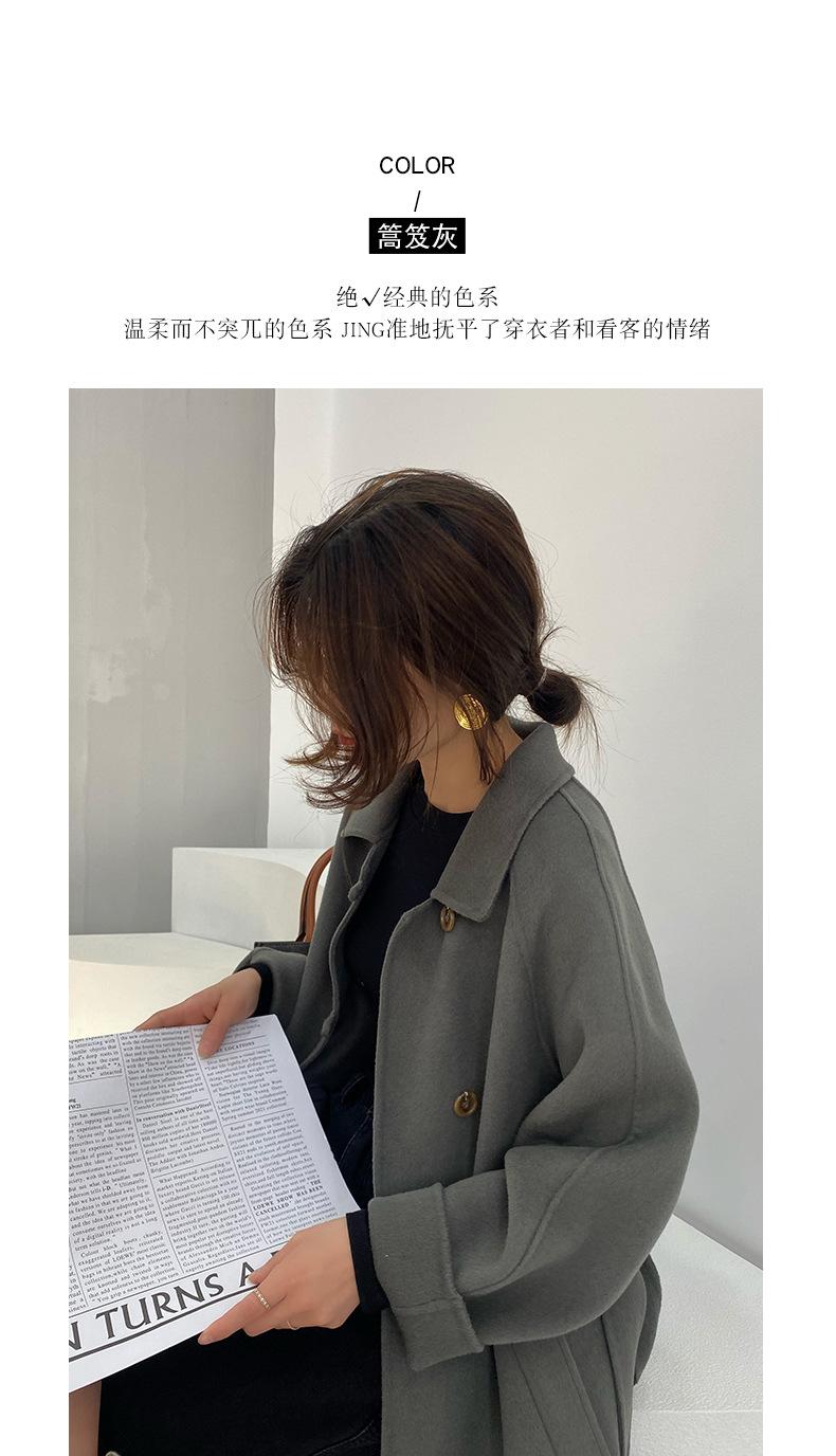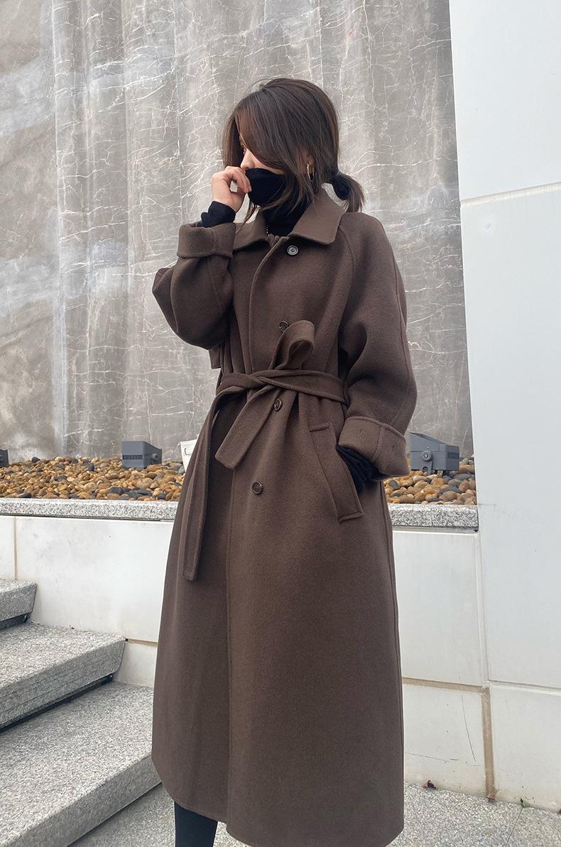 Abrigo de lana de doble cara, clásico, holgado, elegante, con cordones, largo y combinable.