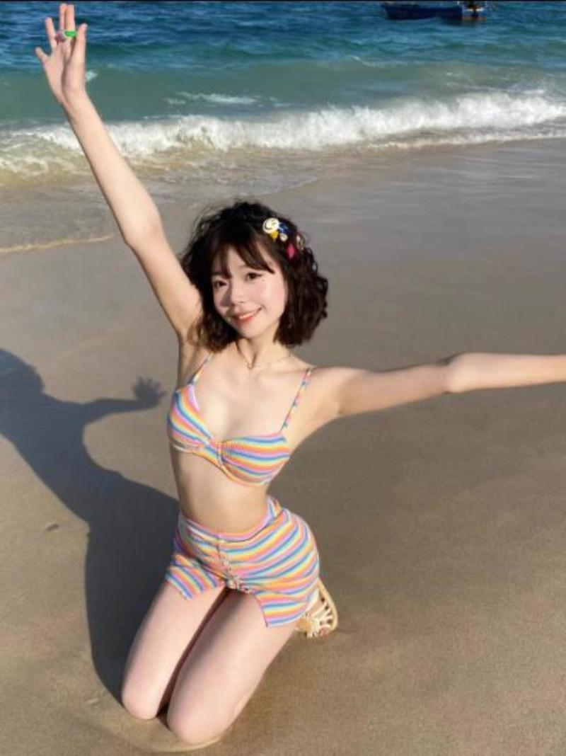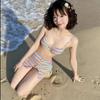 Traje de baño para mujer, estilo coreano, bikini dividido de tres piezas, falda triangular, adelgazante, que cubre el vientre, traje de baño para vacaciones en aguas termales