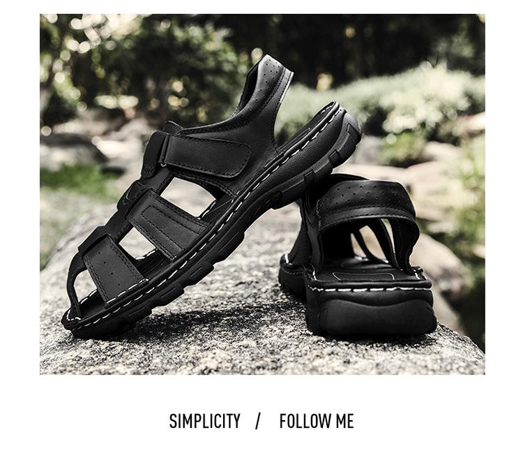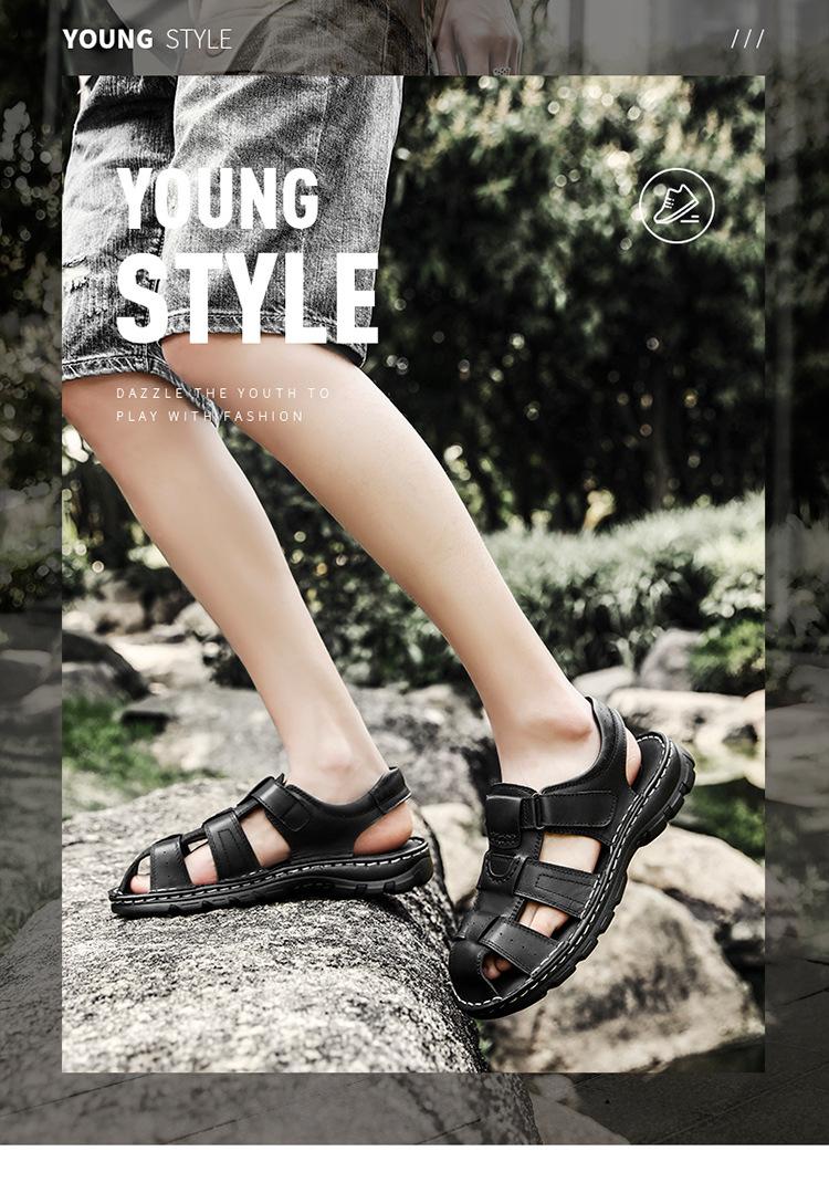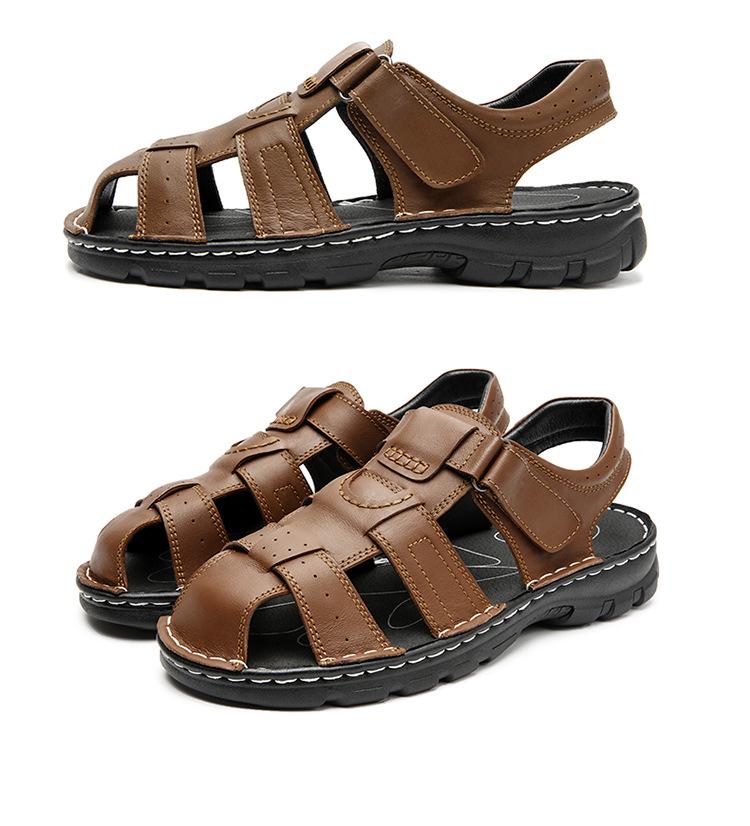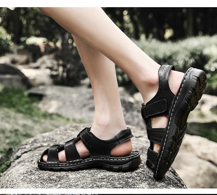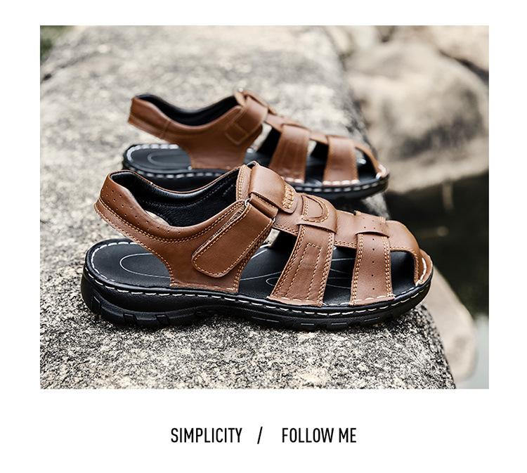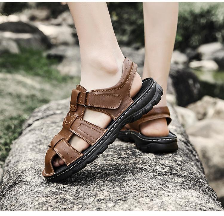 Sandalias de Hombre de Piel Vacuna Zapatos de Playa Comercio Exterior Sandalias de Talla Grande Retro Hechas a Mano Transfronterizas Casuales para Exterior Sandalias de Hombre Tipo Pan