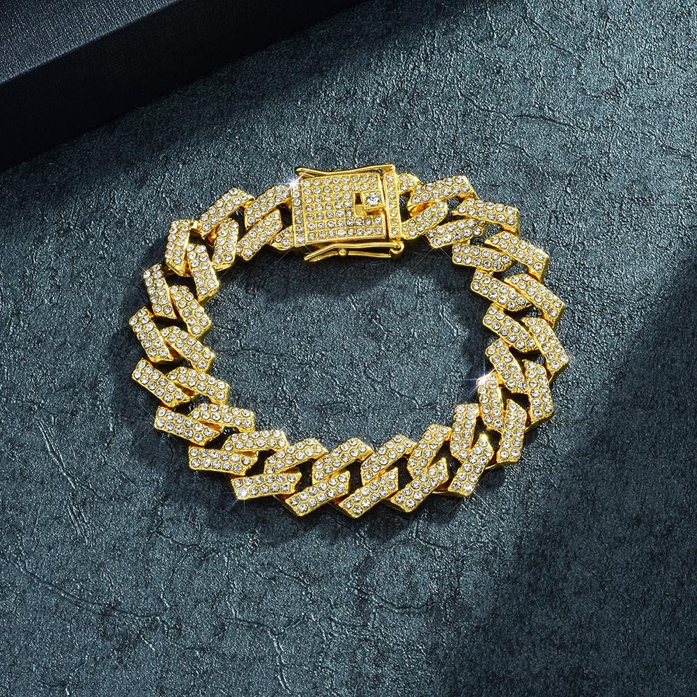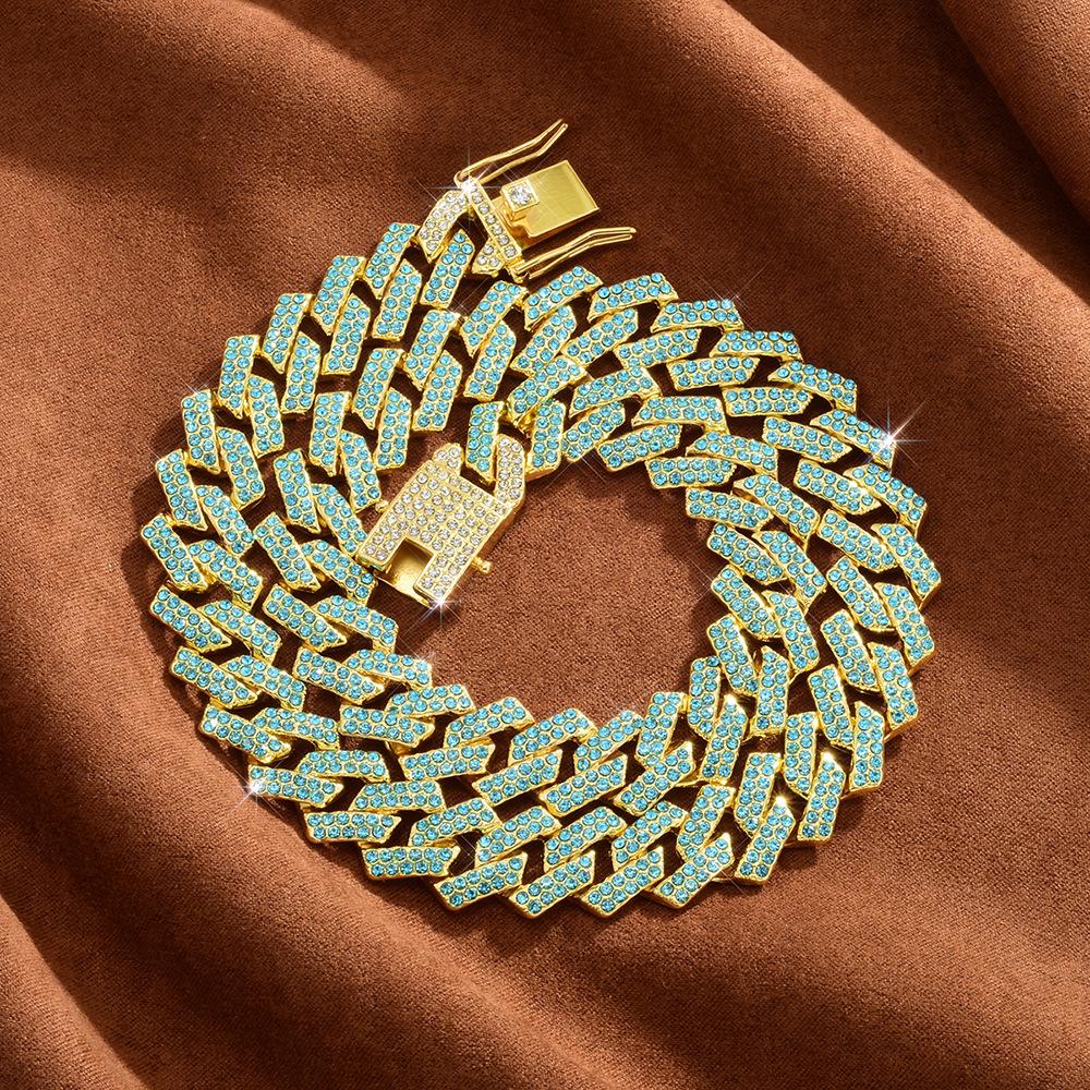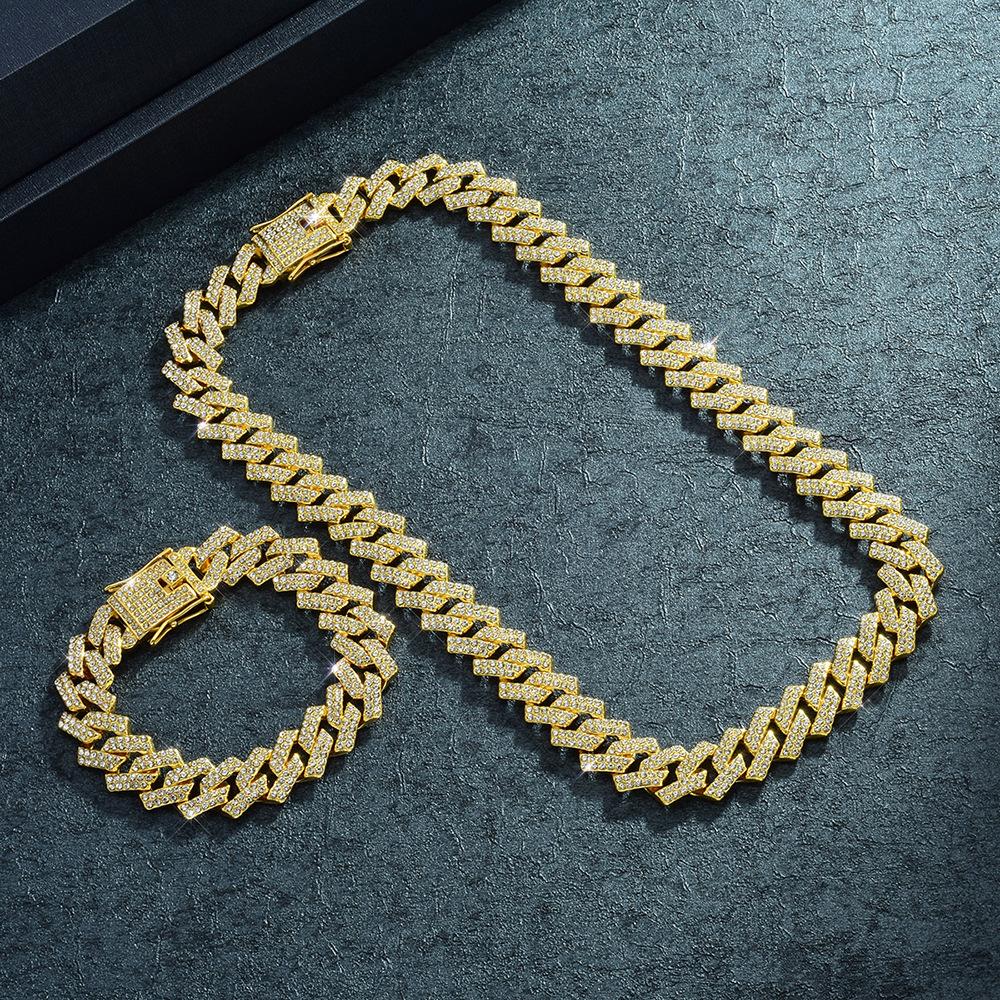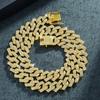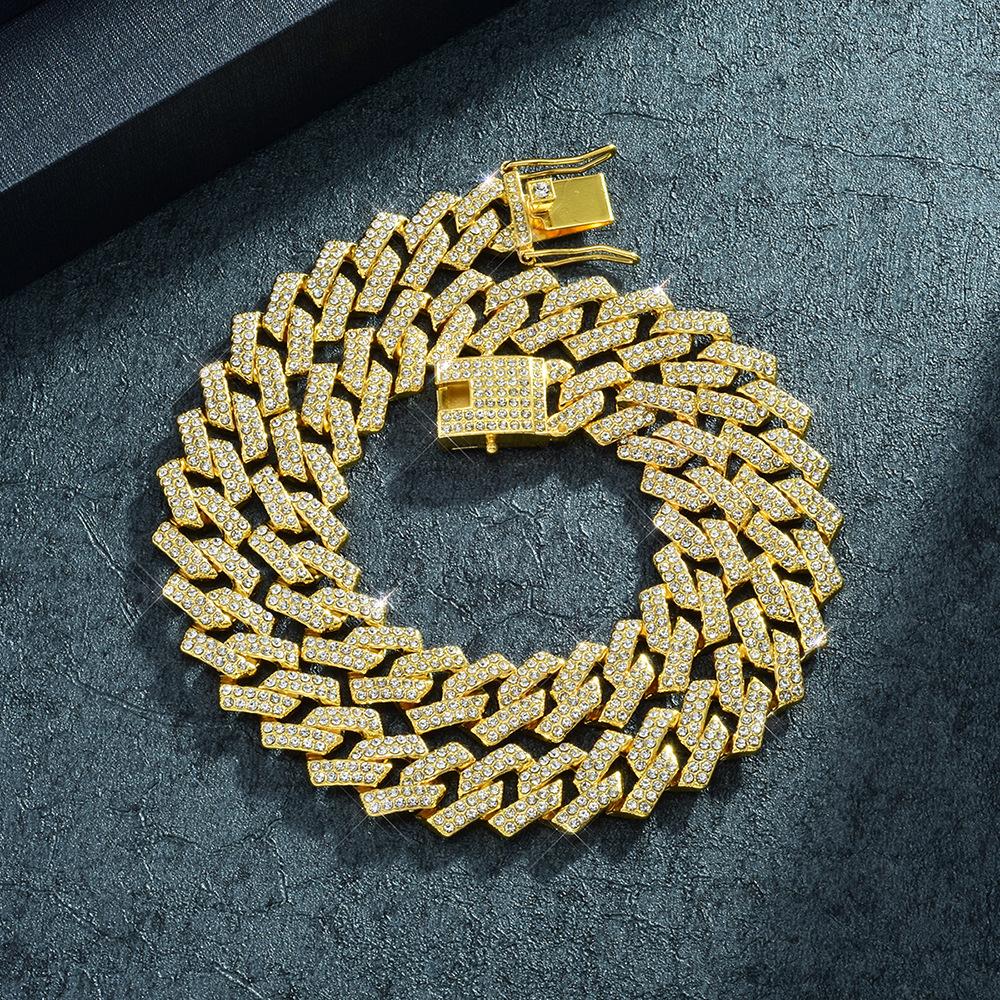 Collar Hip-Hop Cadena Cubana de Barra de 15 mm Diamante Completo Marca de Moda Europea y Americana Personalizado Aleación Pedrería Transfronterizo Exclusivo para Moderno