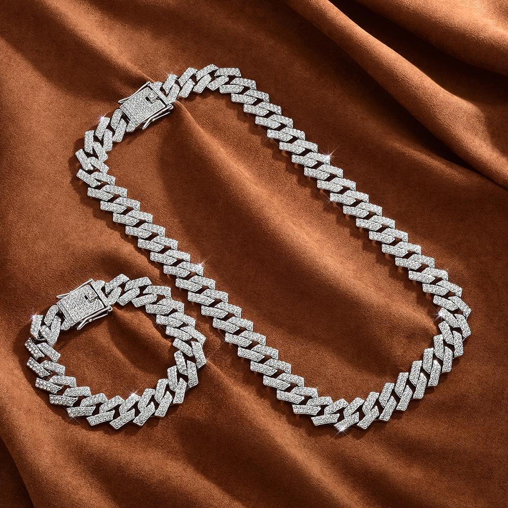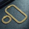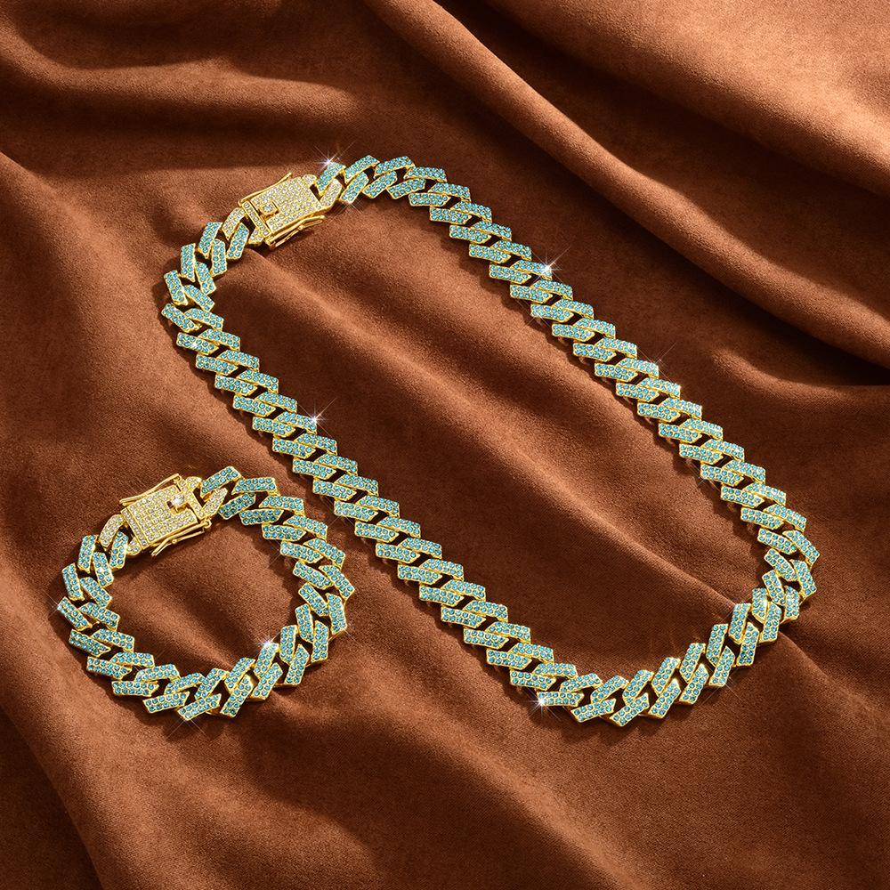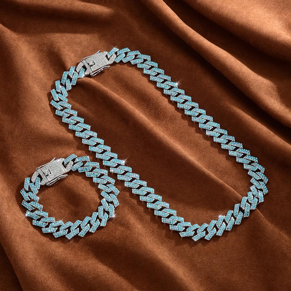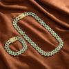 Collar Hip-Hop Cadena Cubana de Barra de 15 mm Diamante Completo Marca de Moda Europea y Americana Personalizado Aleación Pedrería Transfronterizo Exclusivo para Moderno