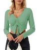 2026 Top Corto Cruzado Europeo y Americano Primavera y Otoño Cuello en V Manga Larga Fruncido Sexy Casual Atado Versátil Camiseta de Color Sólido Top para Mujer