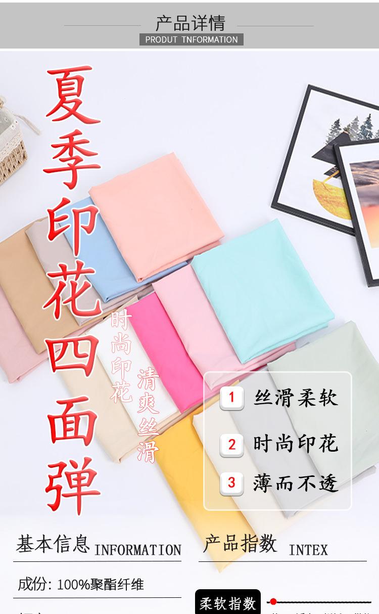 Tejido liso 100d de color sólido, tejido elástico de cuatro lados, tejido de base blanca estampado, tejido de poliéster para forro de ropa.