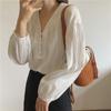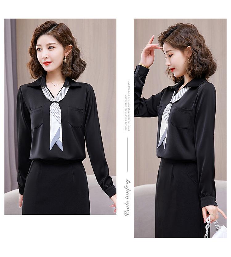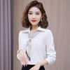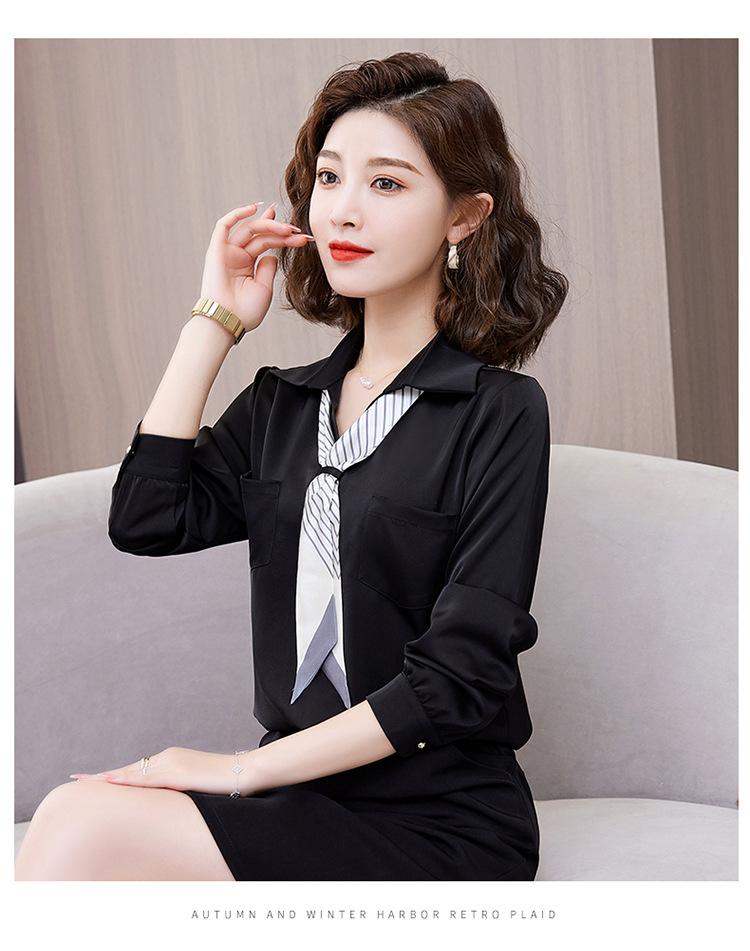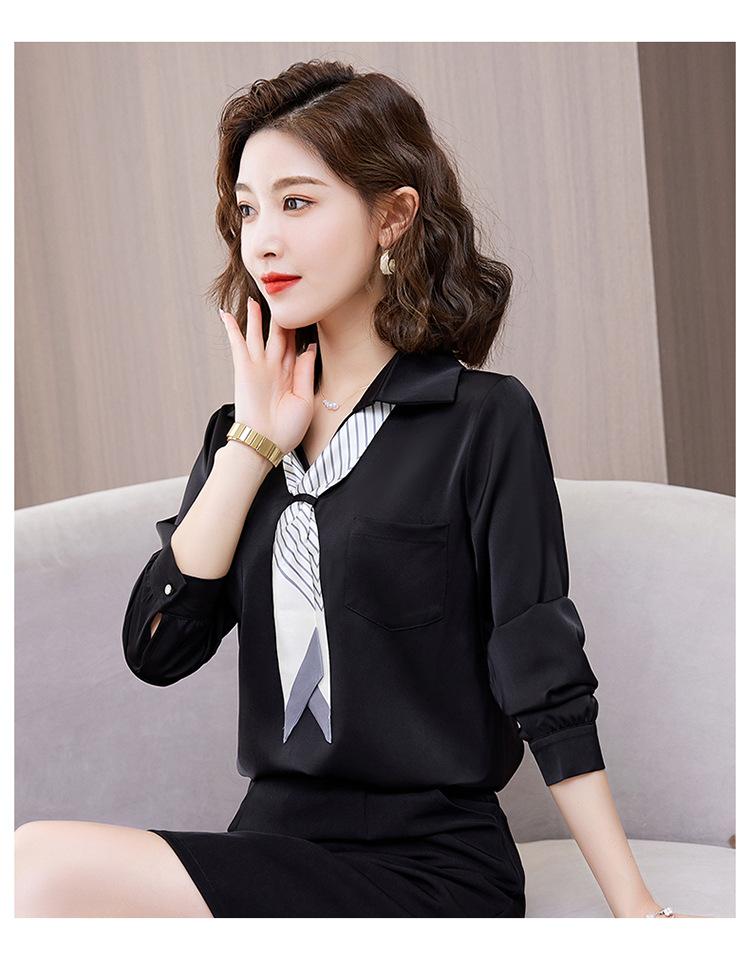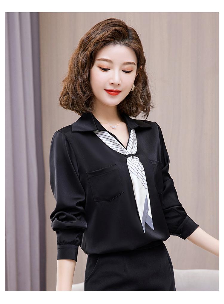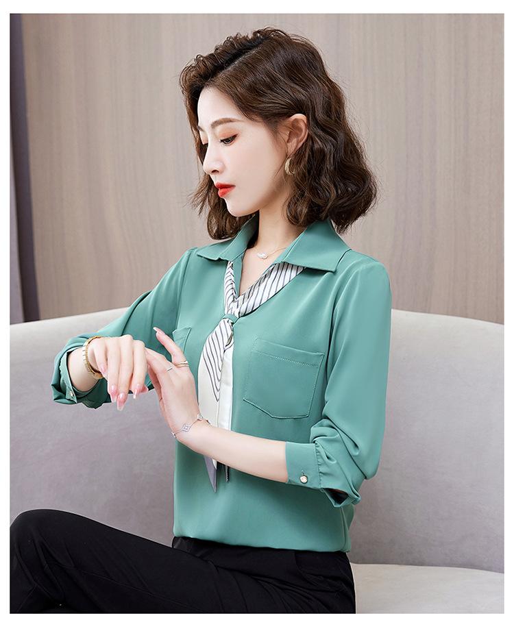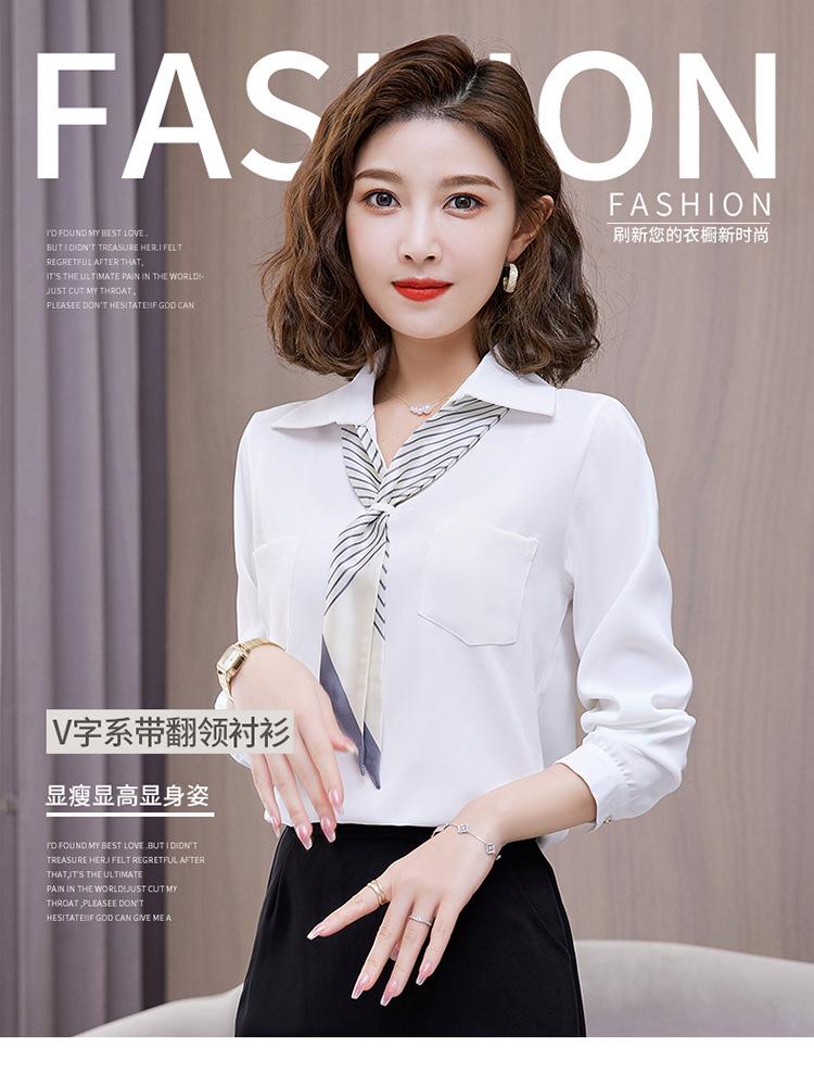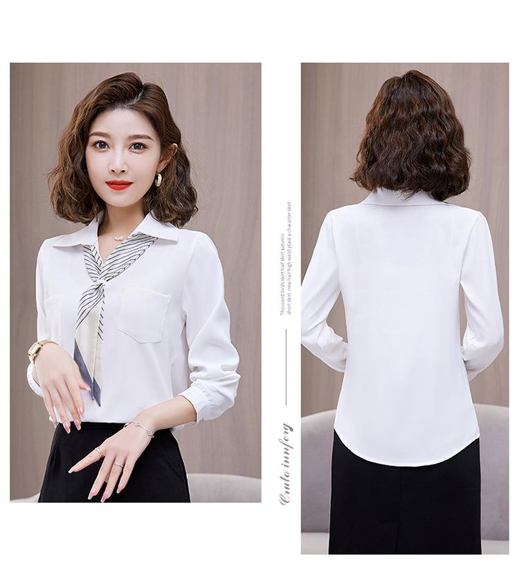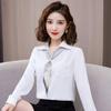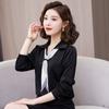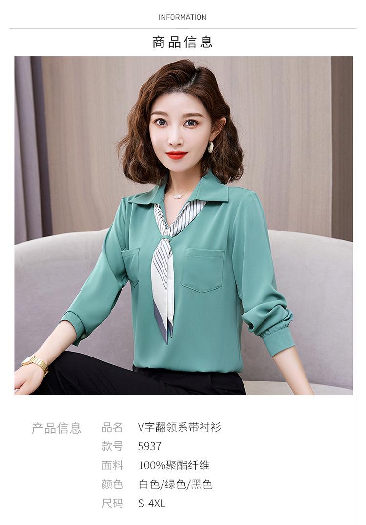Camisa con cuello en V, solapa, cordones y lazo para mujer, ropa de trabajo profesional que combina con todo, estilo occidental, antiedad.