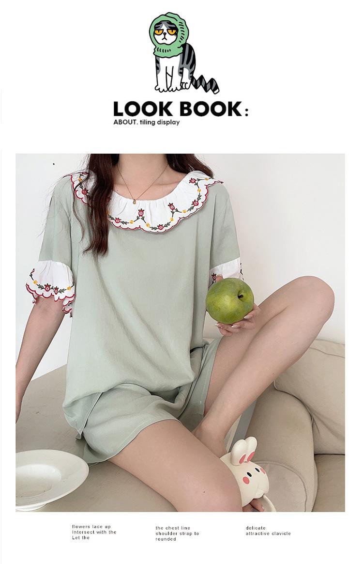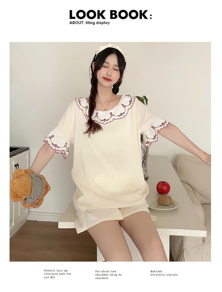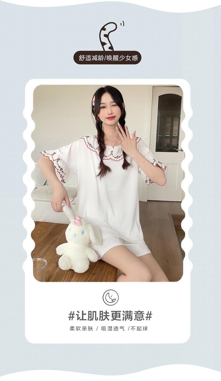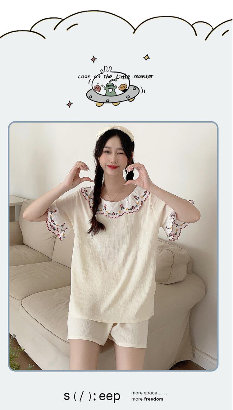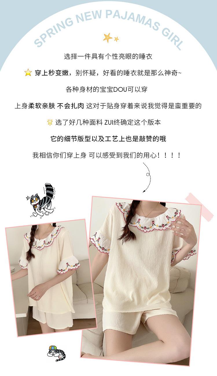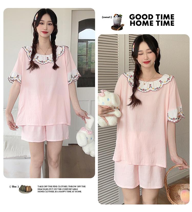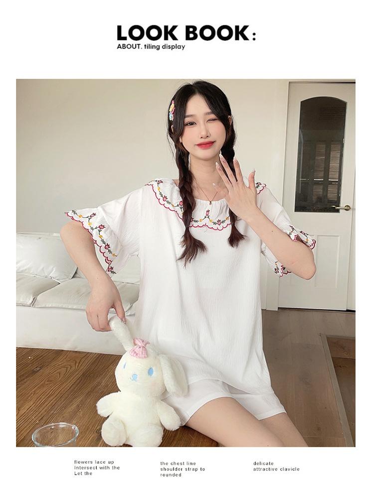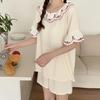 Pijama de algodón de nube para mujer, de verano, de manga corta, con cuello redondo, estilo real, dulce, bonito, informal, holgado, para el hogar