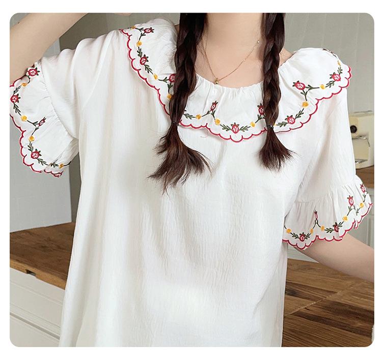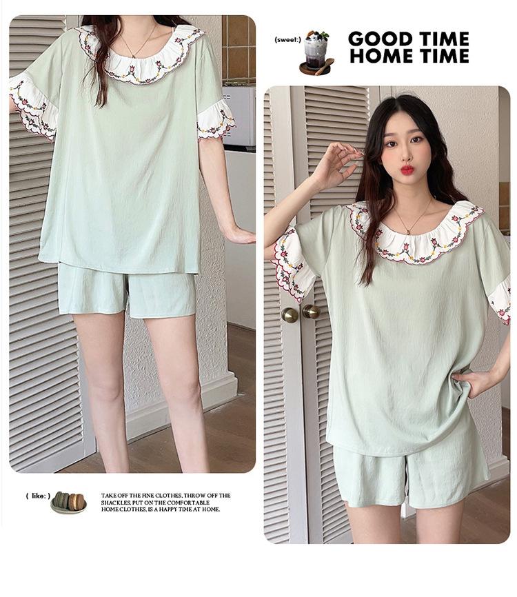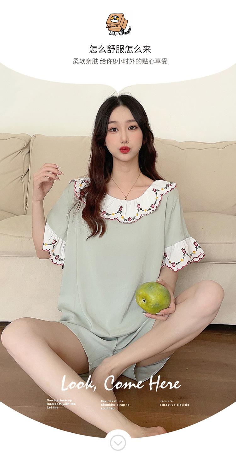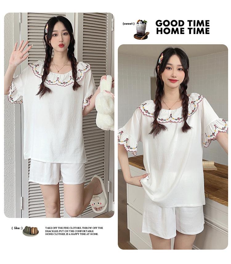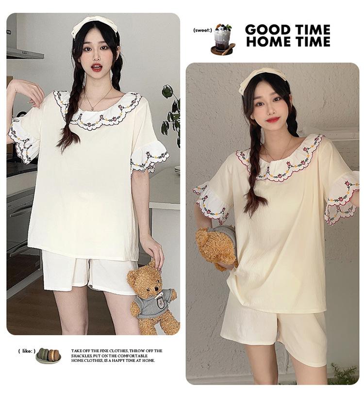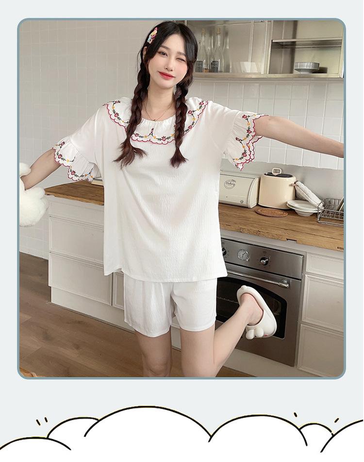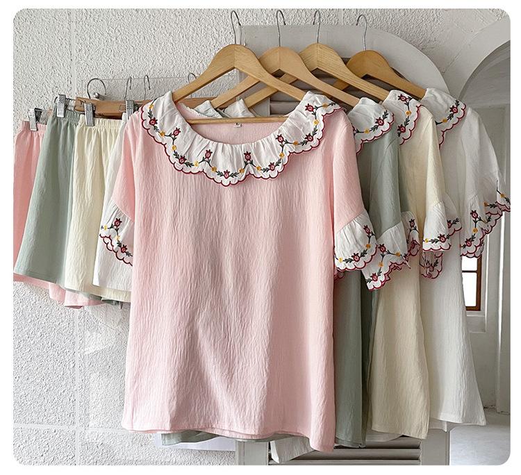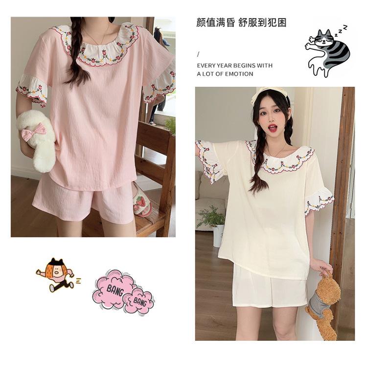 Pijama de algodón de nube para mujer, de verano, de manga corta, con cuello redondo, estilo real, dulce, bonito, informal, holgado, para el hogar