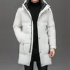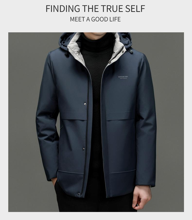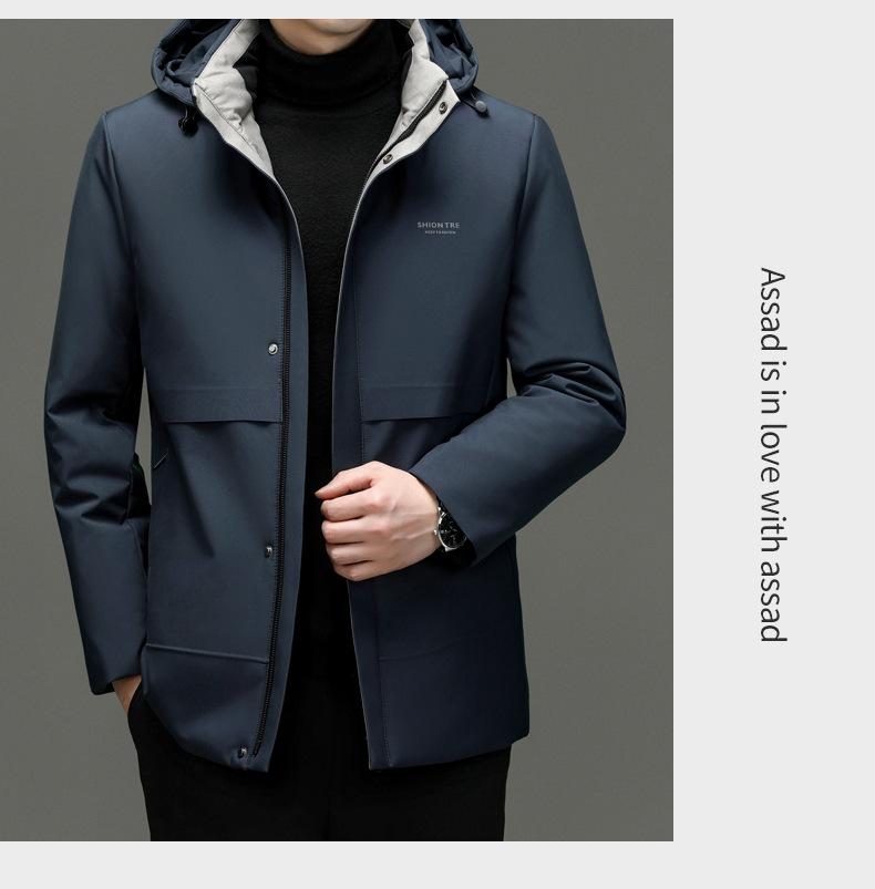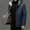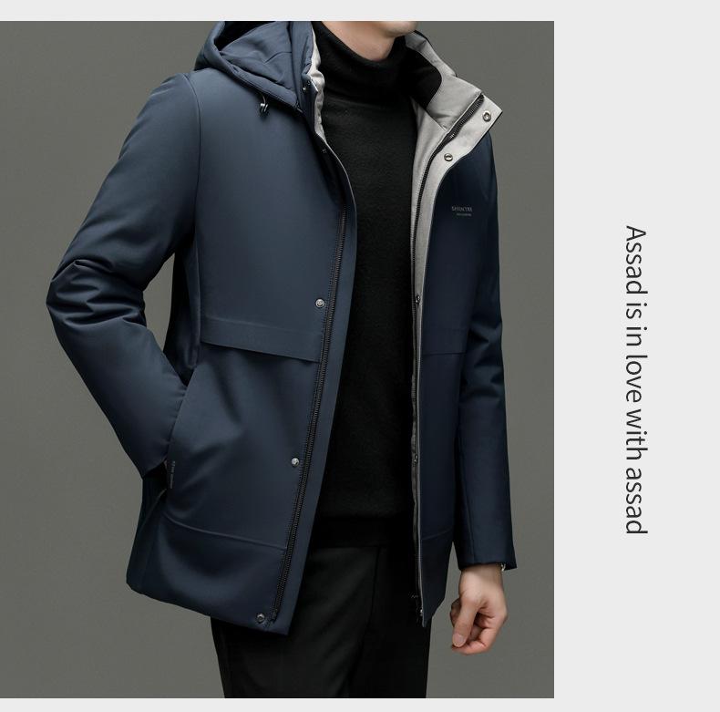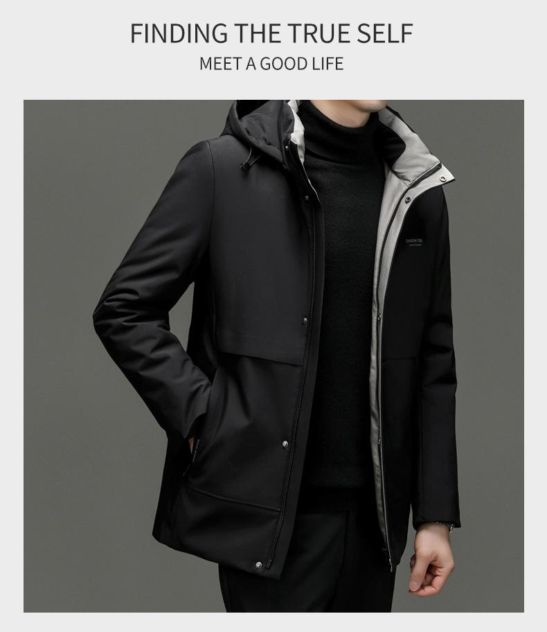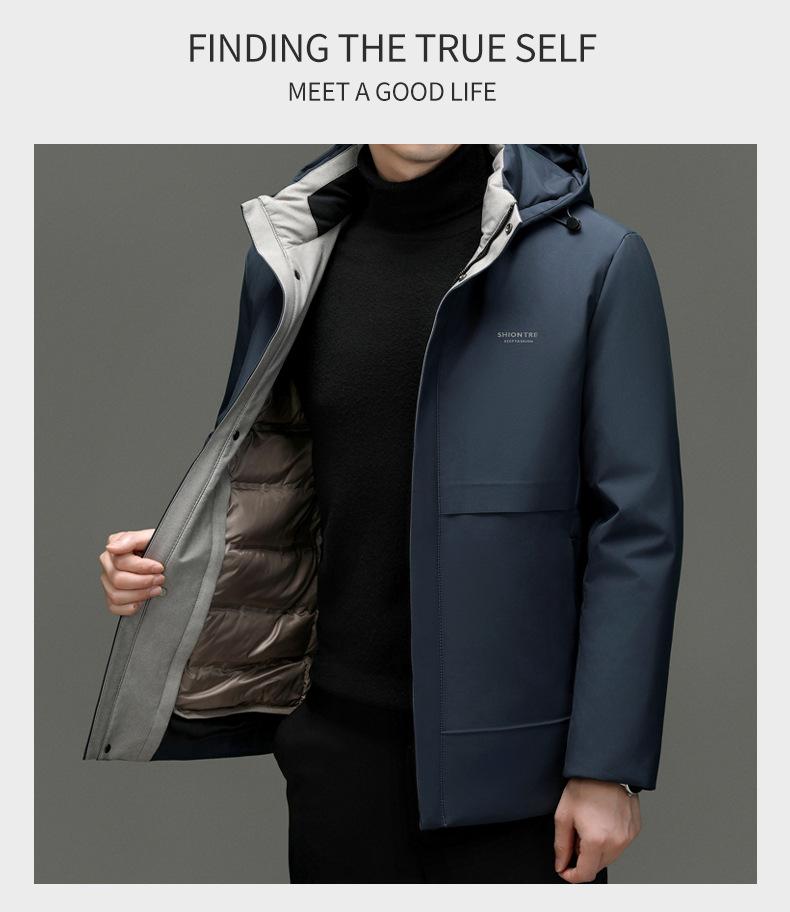 Chaqueta de plumón para hombre 2023, abrigo de papá grueso con capucha, chaqueta de plumón de longitud media, gabardina con forro desmontable