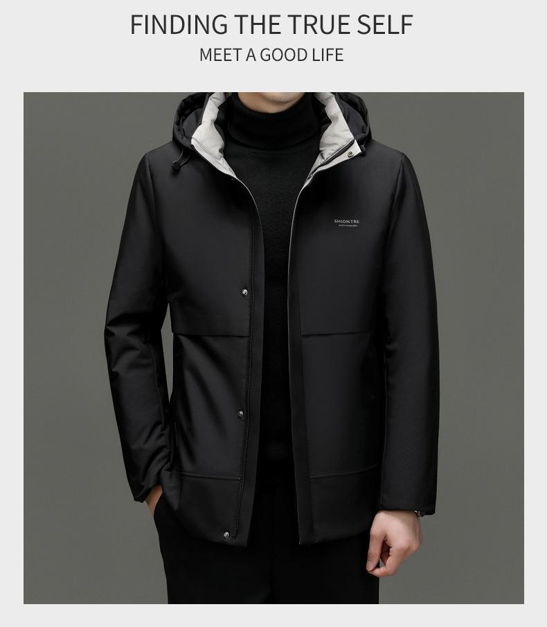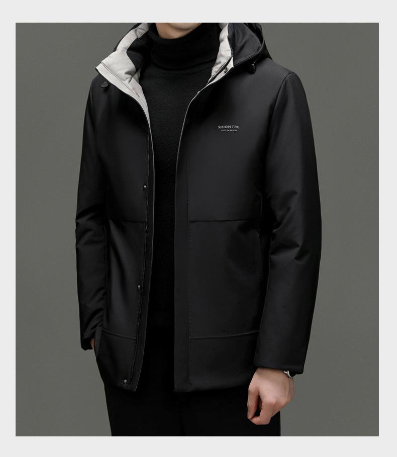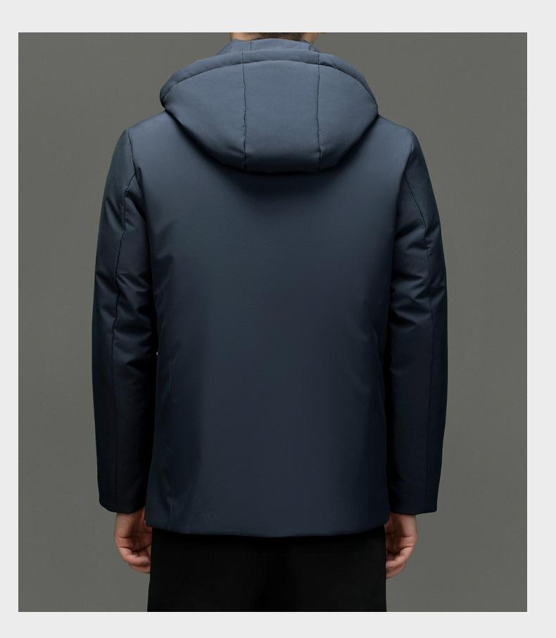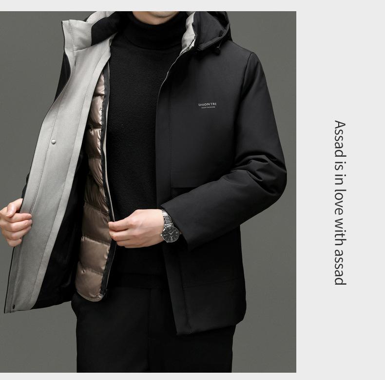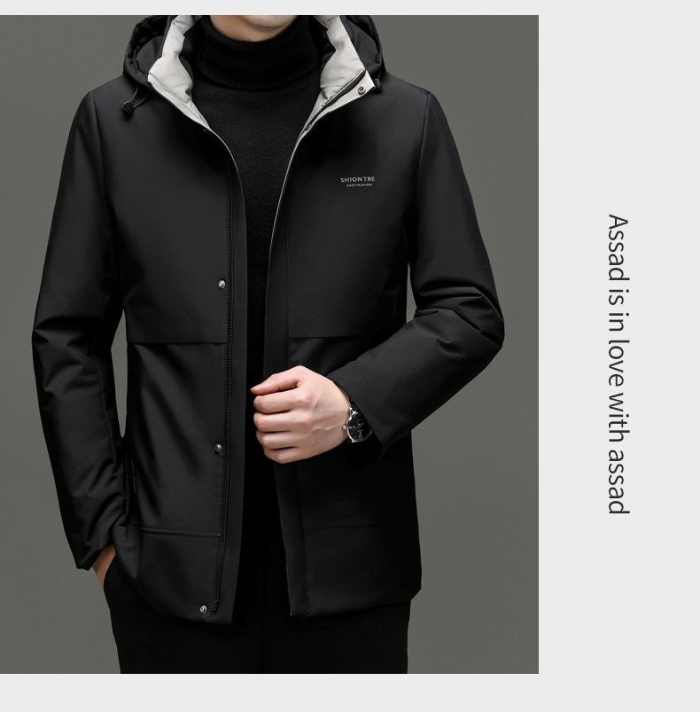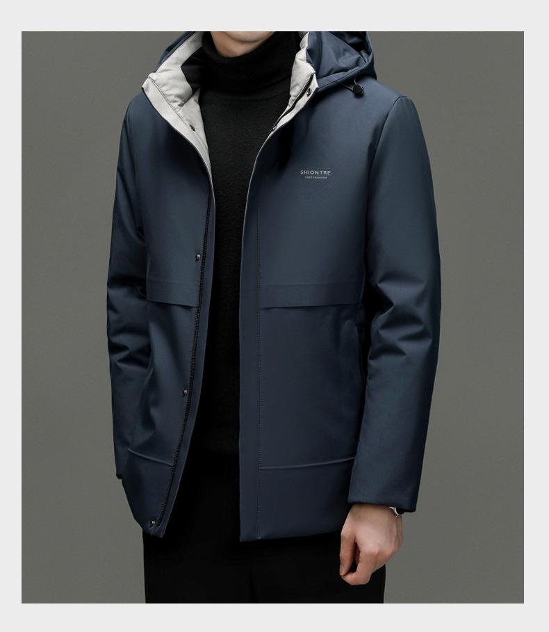 Chaqueta de plumón para hombre 2023, abrigo de papá grueso con capucha, chaqueta de plumón de longitud media, gabardina con forro desmontable