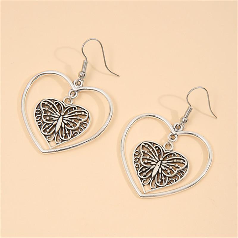 Pendientes de mariposa de aleación con forma de corazón hueco, nuevos, personalizados, retro, de estilo transfronterizo europeo y americano