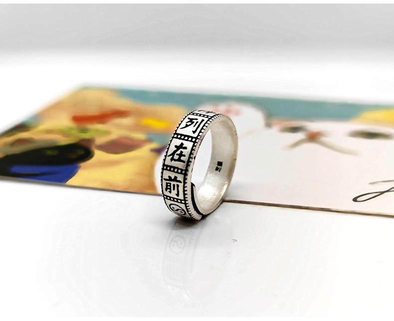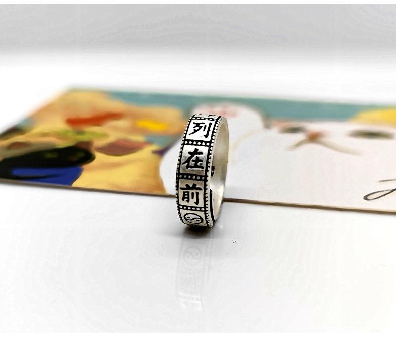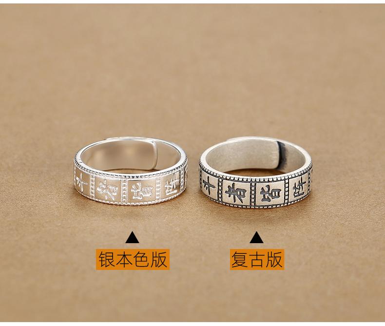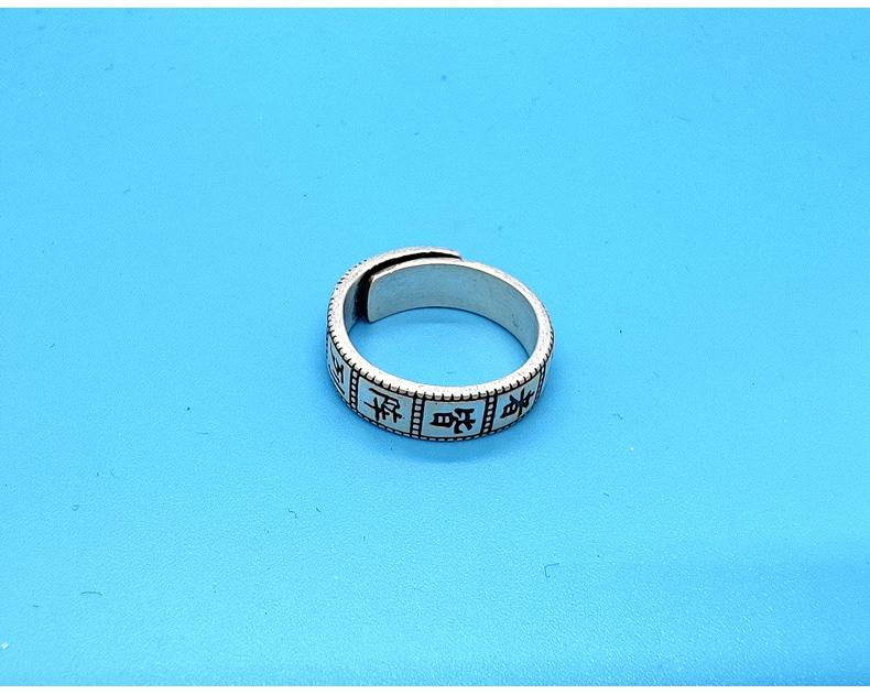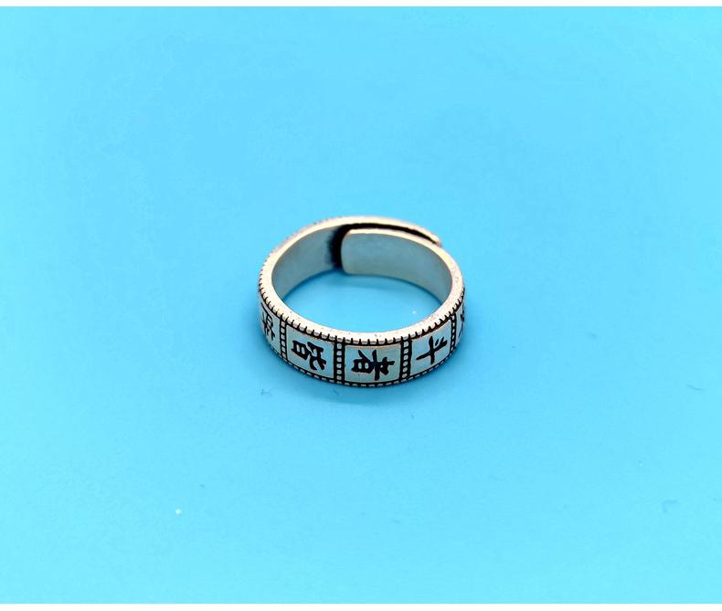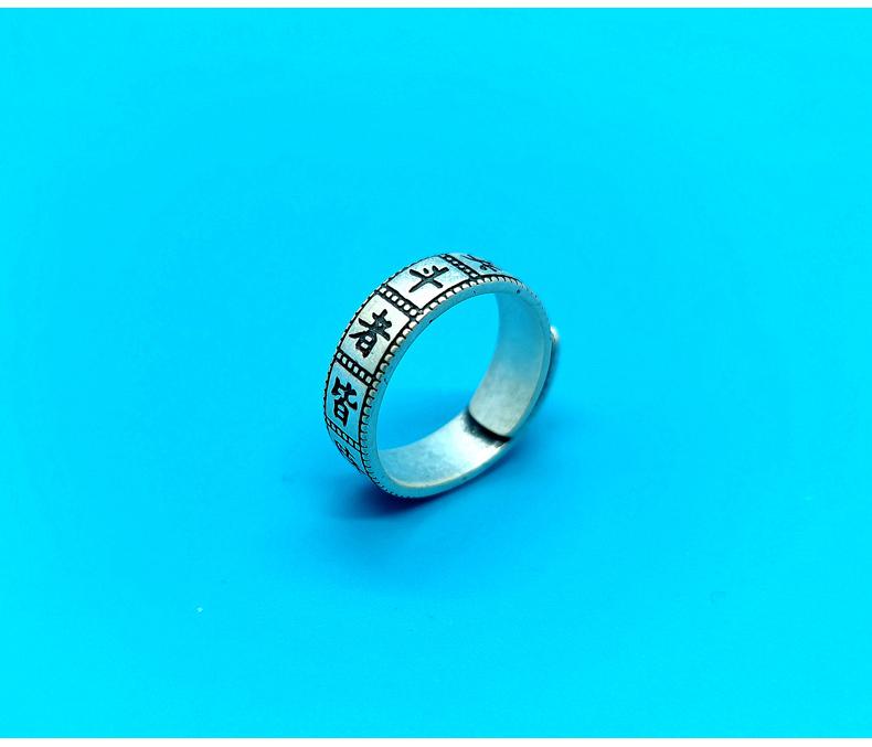Anillo para hombre chapado en plata 99 Plata pura Personalizado Retro Dominante Apertura Ajustable Mantra taoísta de nueve caracteres Anillo para dedo índice