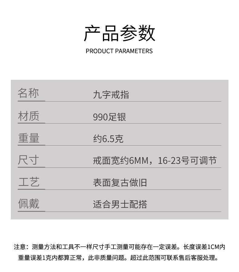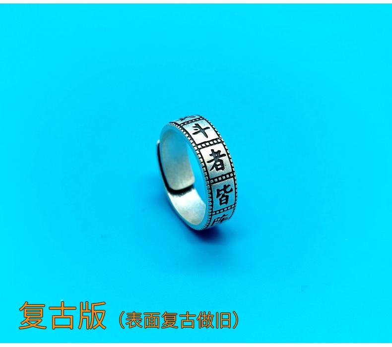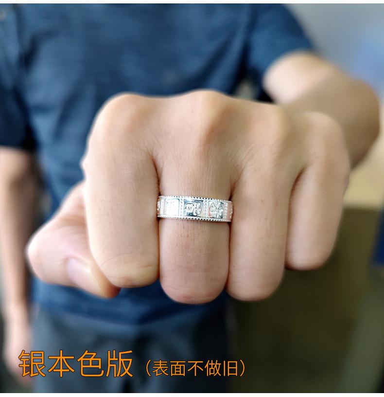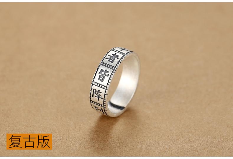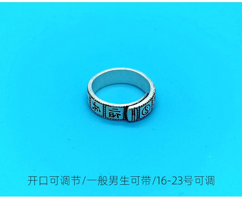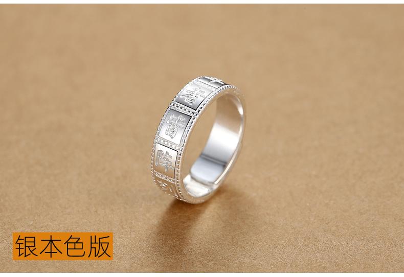 Anillo para hombre chapado en plata 99 Plata pura Personalizado Retro Dominante Apertura Ajustable Mantra taoísta de nueve caracteres Anillo para dedo índice
