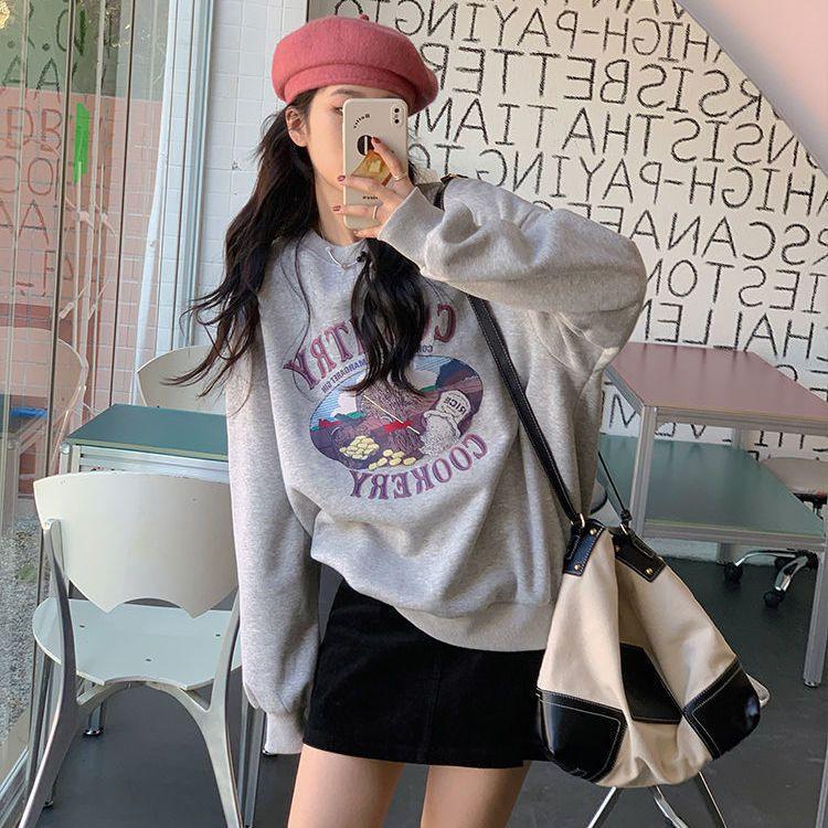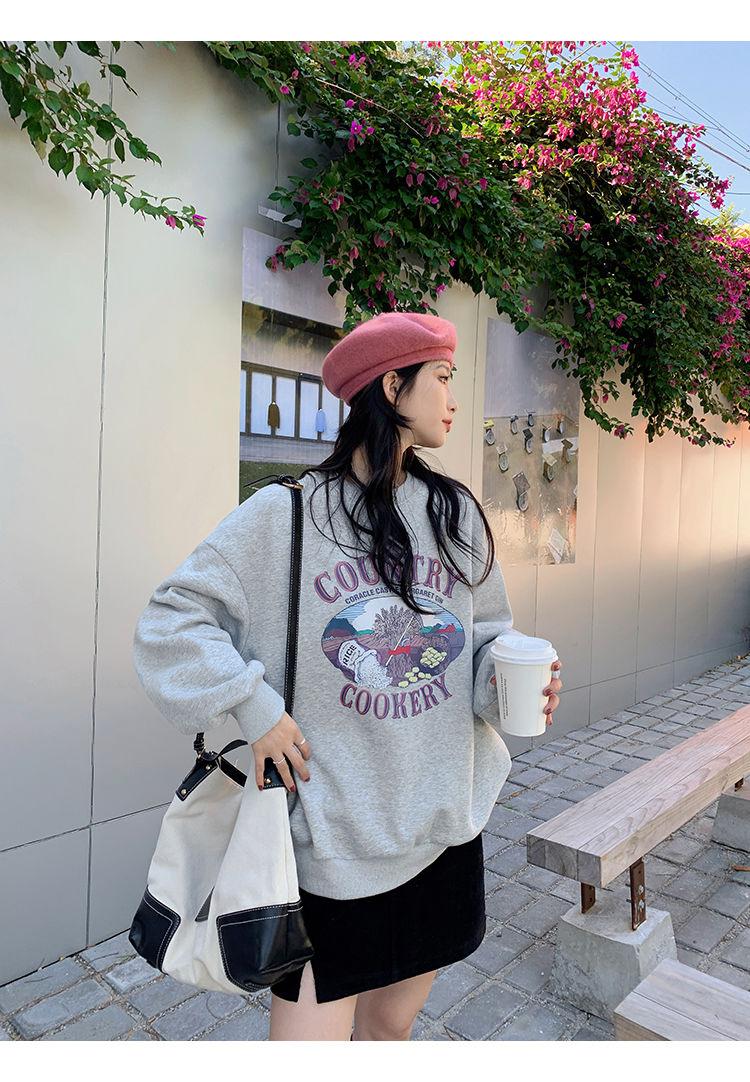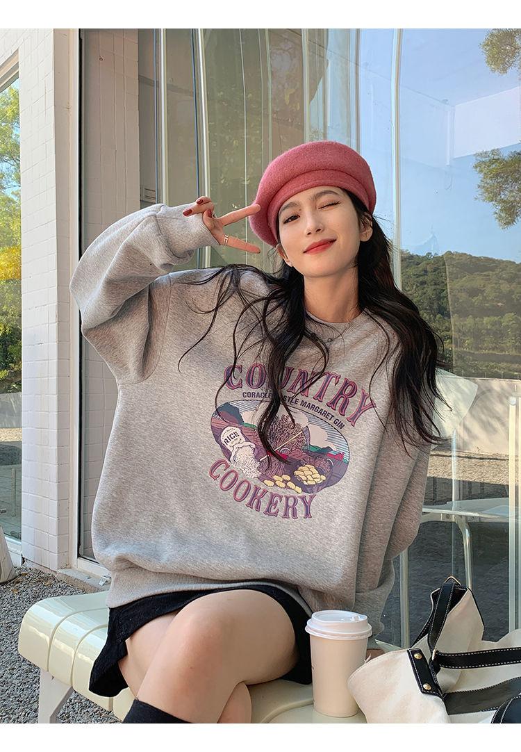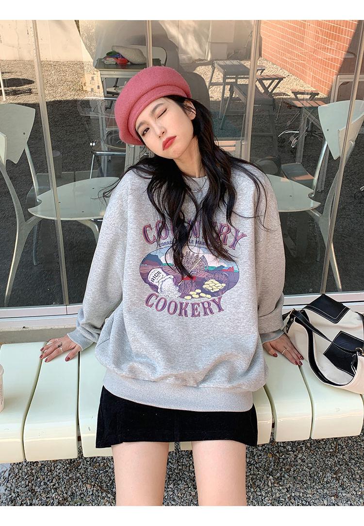 Sudadera Fina de Otoño e Invierno para Mujer 2024 Nueva Moda Estilo Coreano Suelta Elegante Versátil Chaqueta Estampada para Estudiante a la Moda