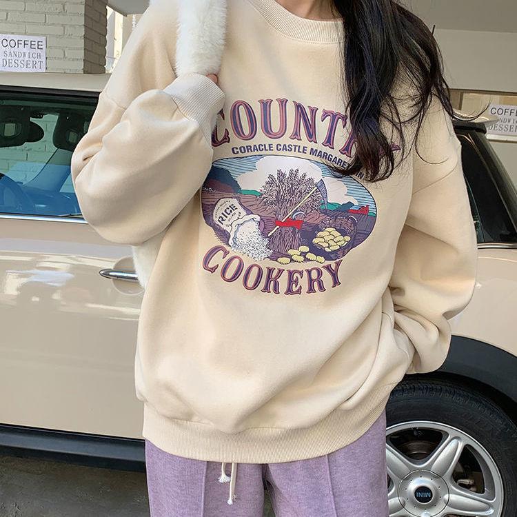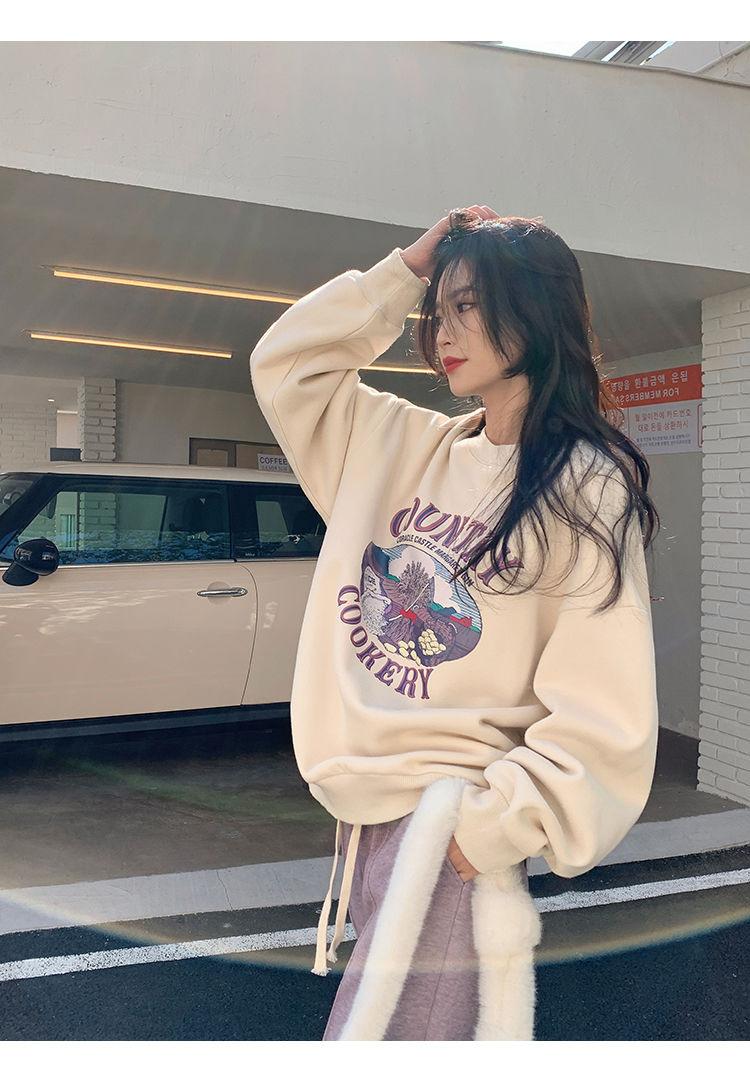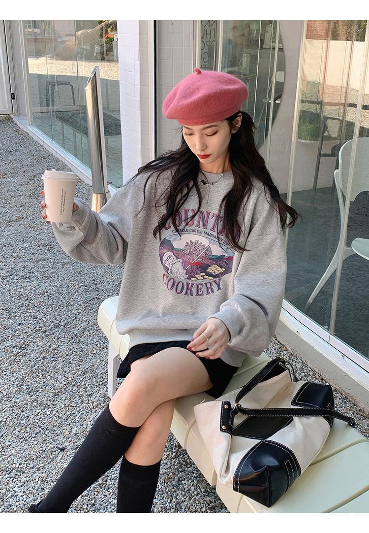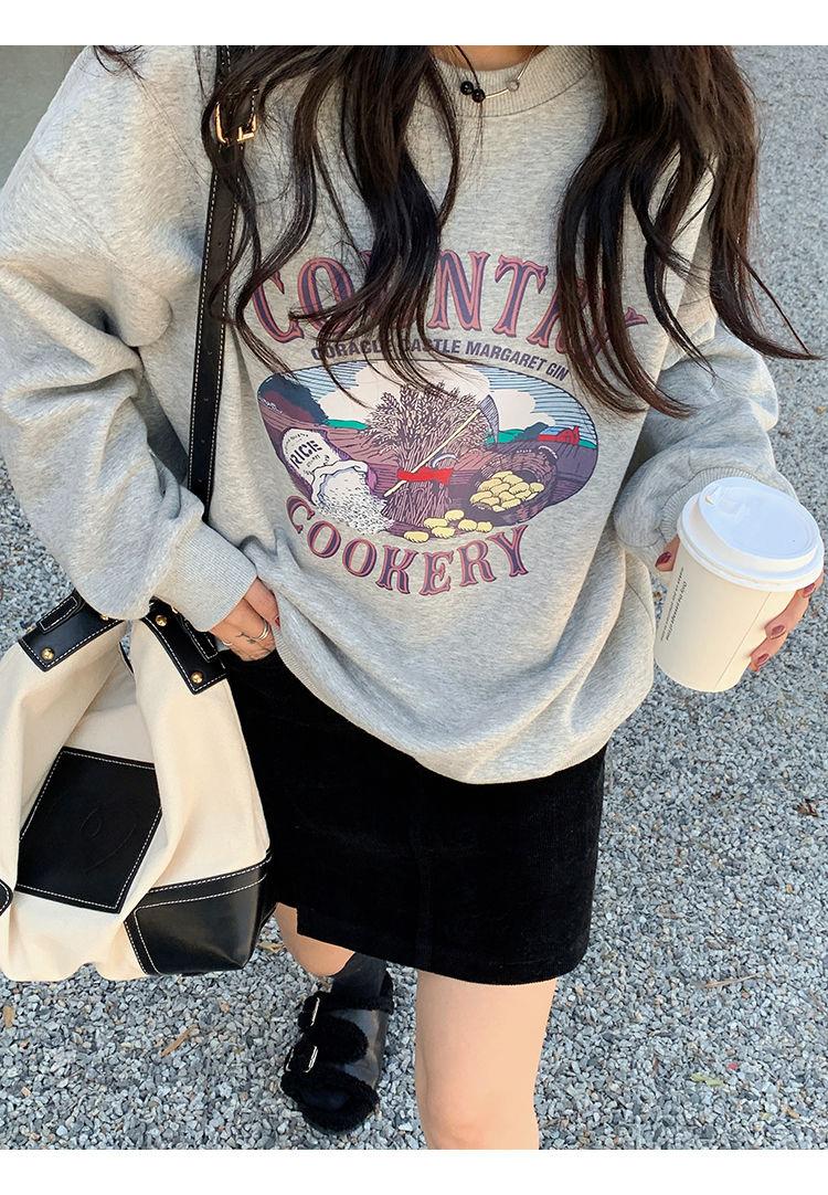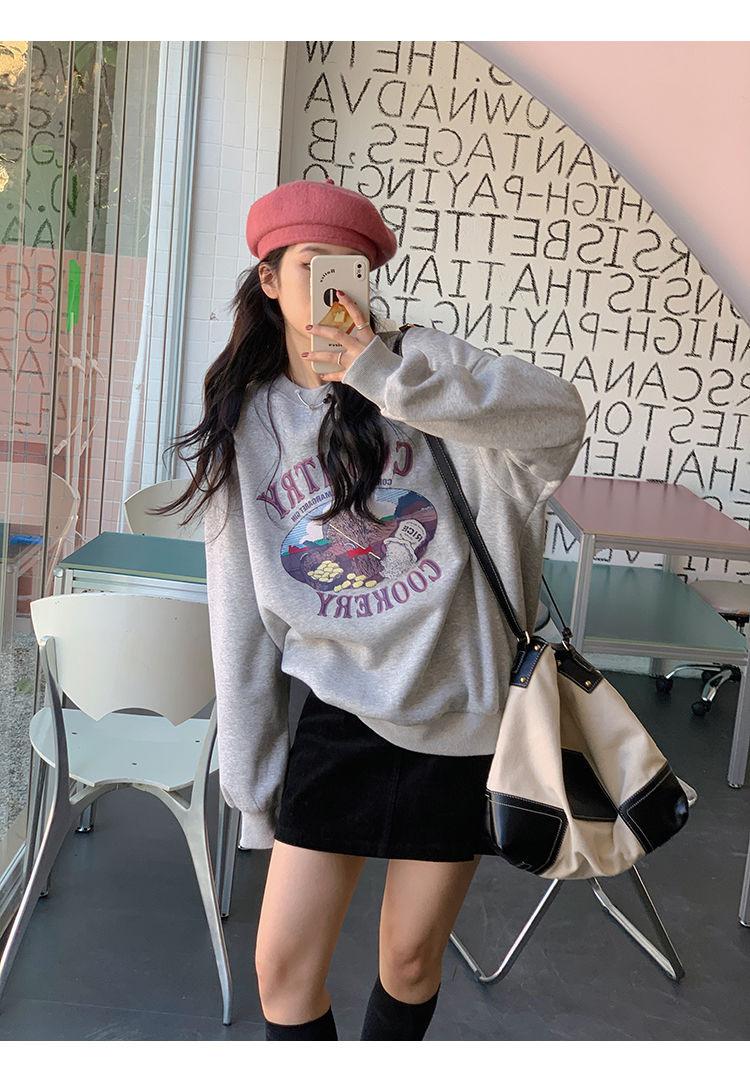 Sudadera Fina de Otoño e Invierno para Mujer 2024 Nueva Moda Estilo Coreano Suelta Elegante Versátil Chaqueta Estampada para Estudiante a la Moda