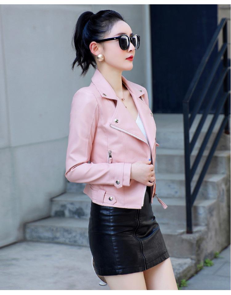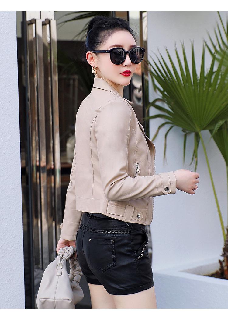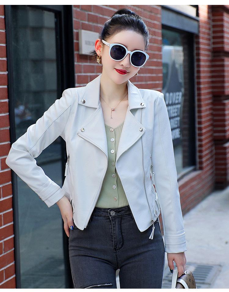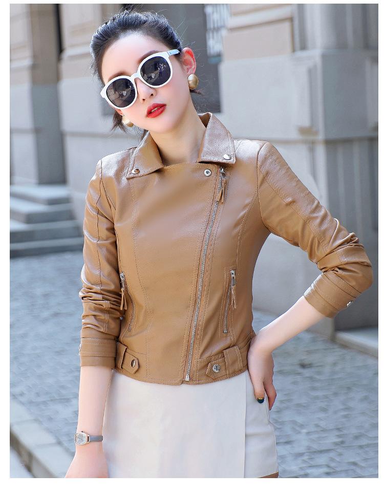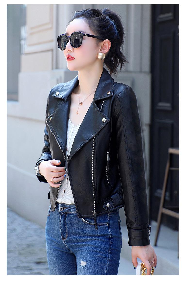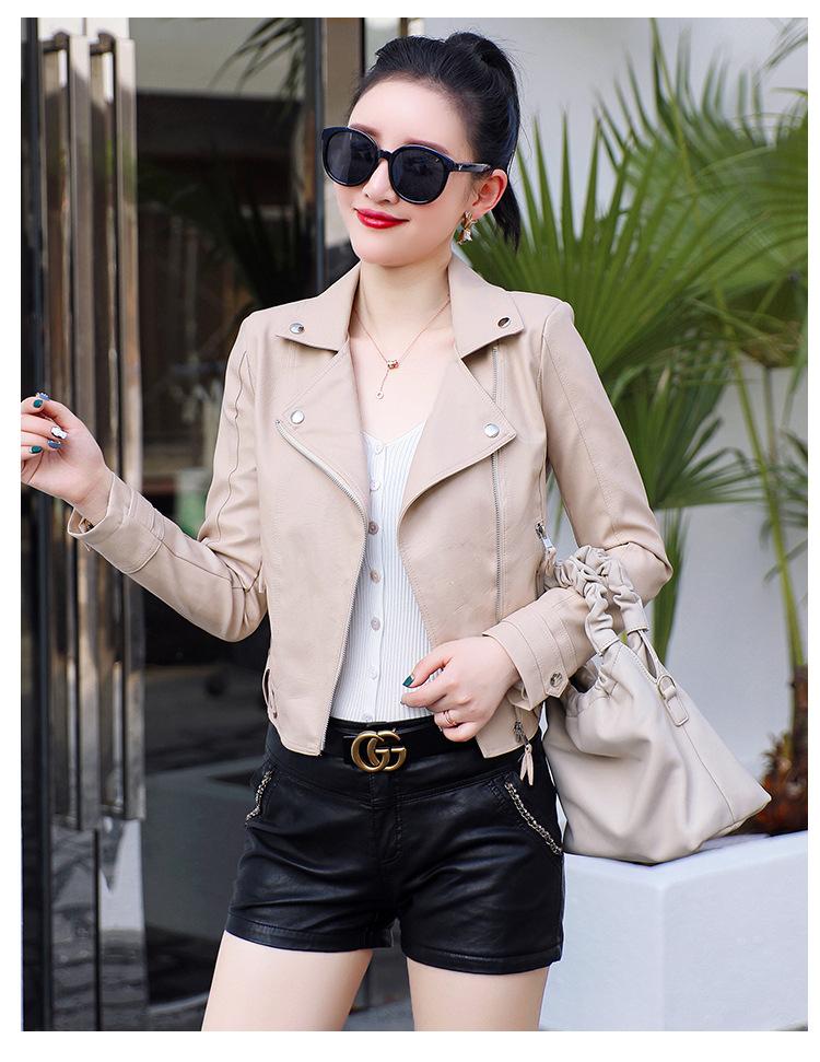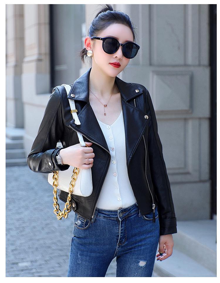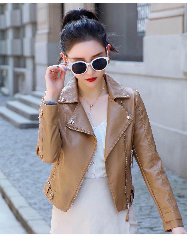 Chaqueta de Cuero PU Abrigo Biker para Mujer, Otoño 2023 Nuevo Versátil Petite Corto Chaqueta de Cuero para Mujer Moda Coreana