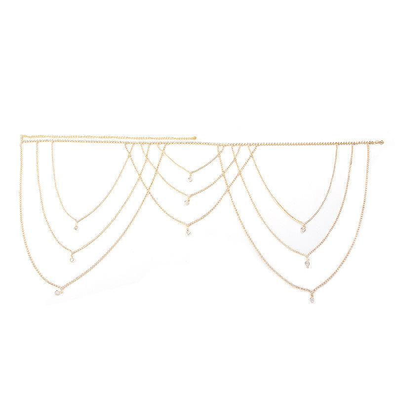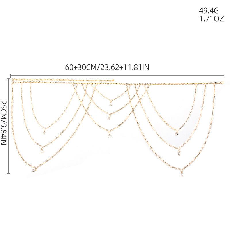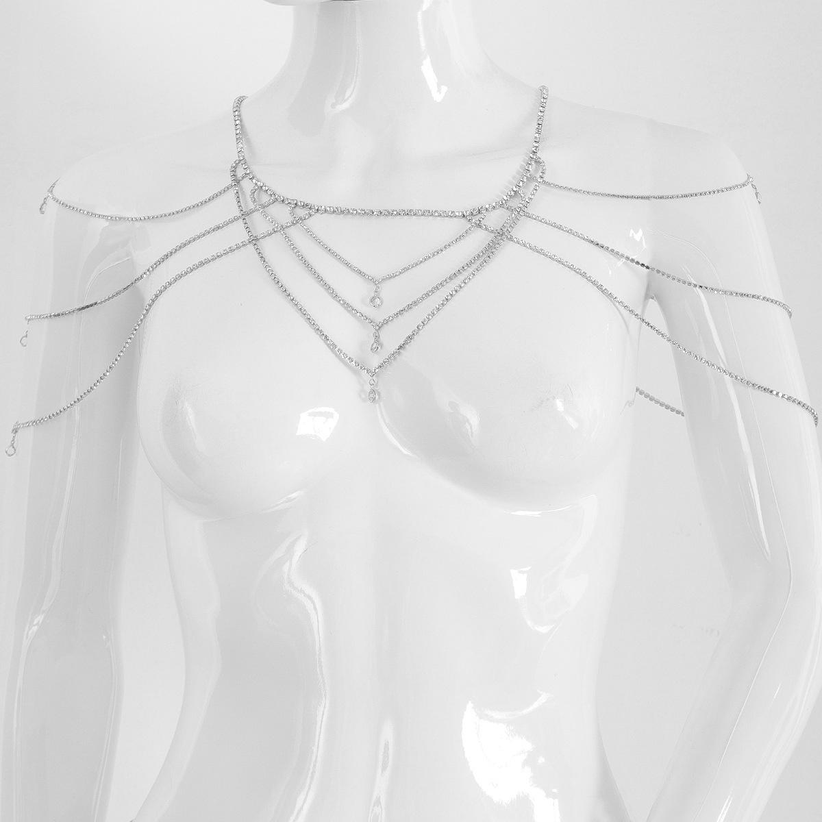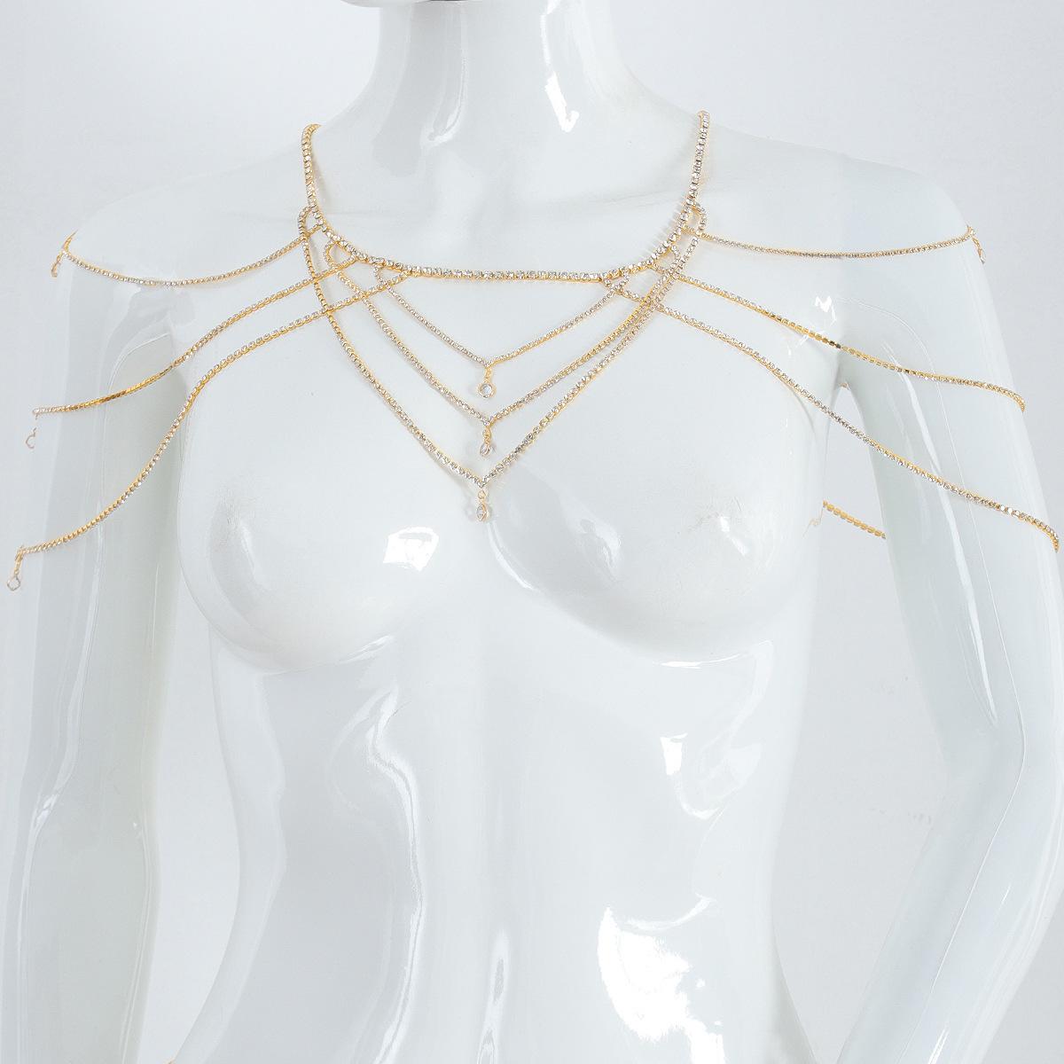 Nueva cadena de pecho con diamantes de imitación de moda transfronteriza, cadena de vestido multicapa de moda sexy europea y americana, cadena de cuerpo para mujer