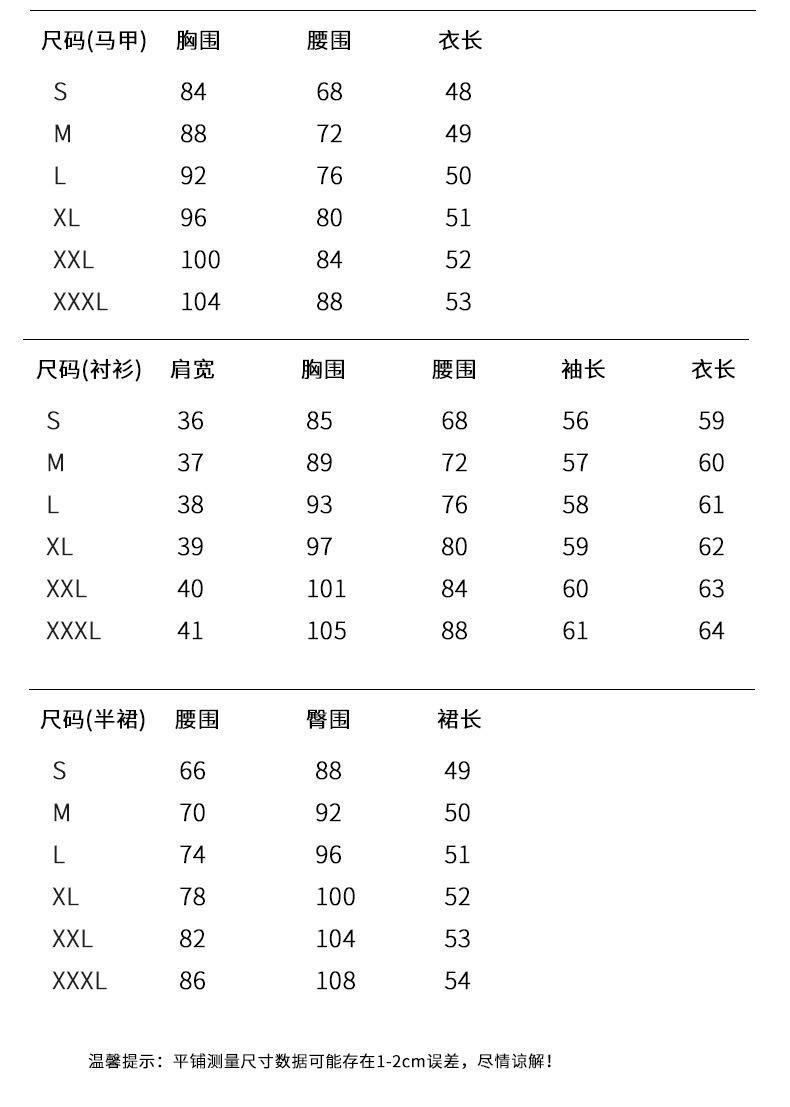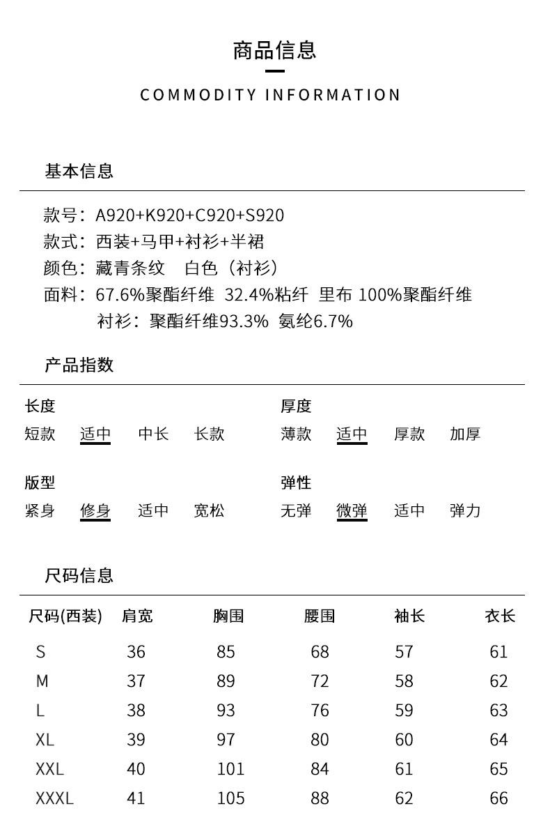 Suit, Vest, Shirt, Half skirt, Suit + suit pants, Suit + skirt, Vest + suit pants, Vest + skirt, Shirt + skirt...
