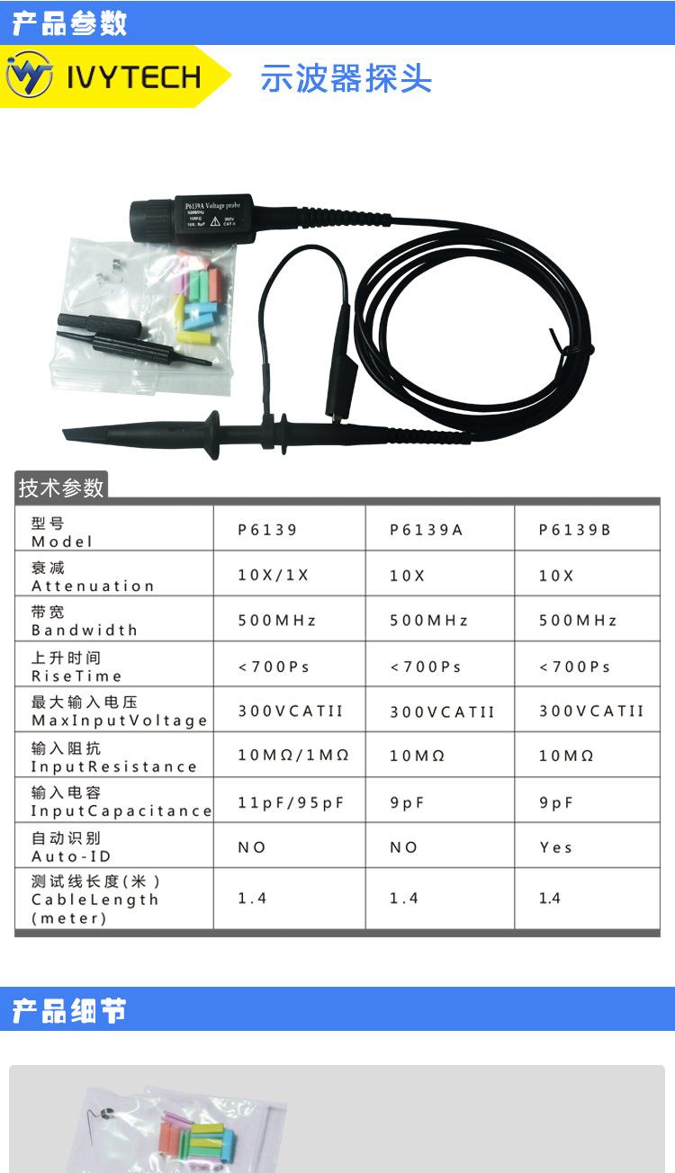 Punta de prueba para osciloscopio Iviteco P6139 500MHz DC300V de doble canal