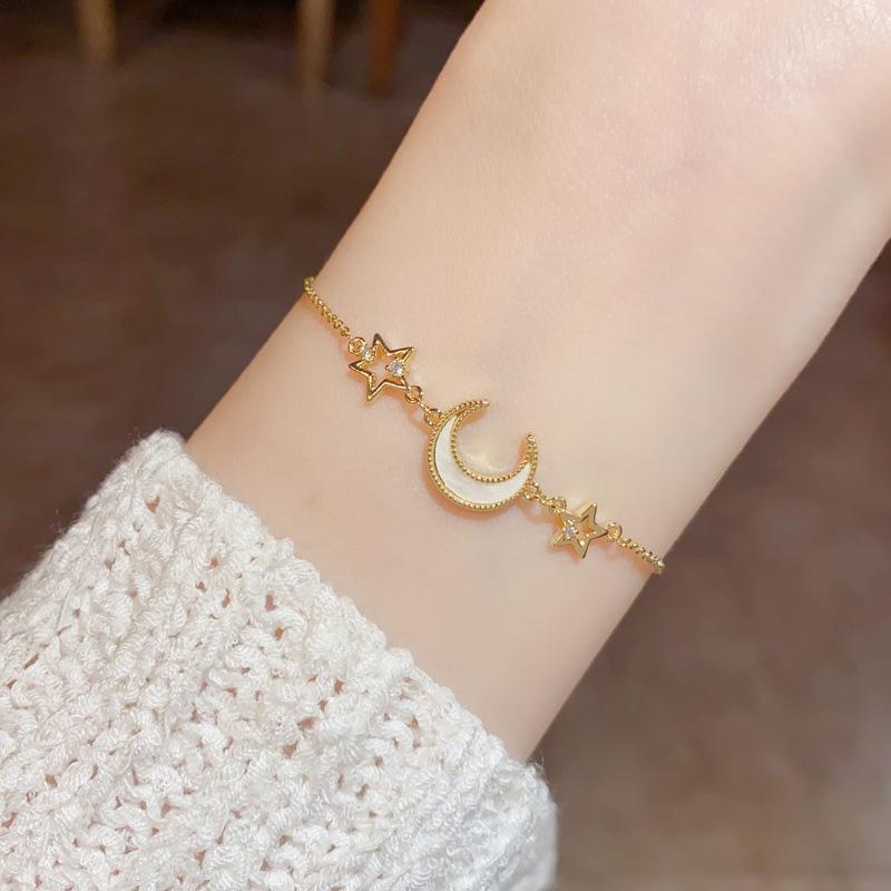 Gold-Zircon Star Moon Bracelet (Thickened Gold Plating)