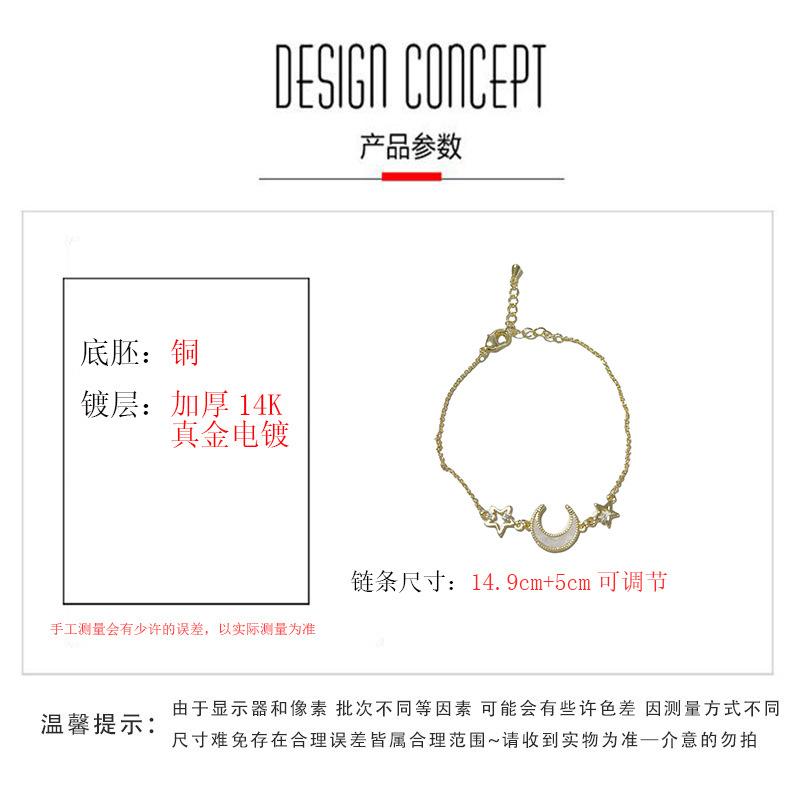 Gold-Zircon Star Moon Bracelet (Thickened Gold Plating), silver-Zircon Star Moon Bracelet (Thickened Gold Plating)