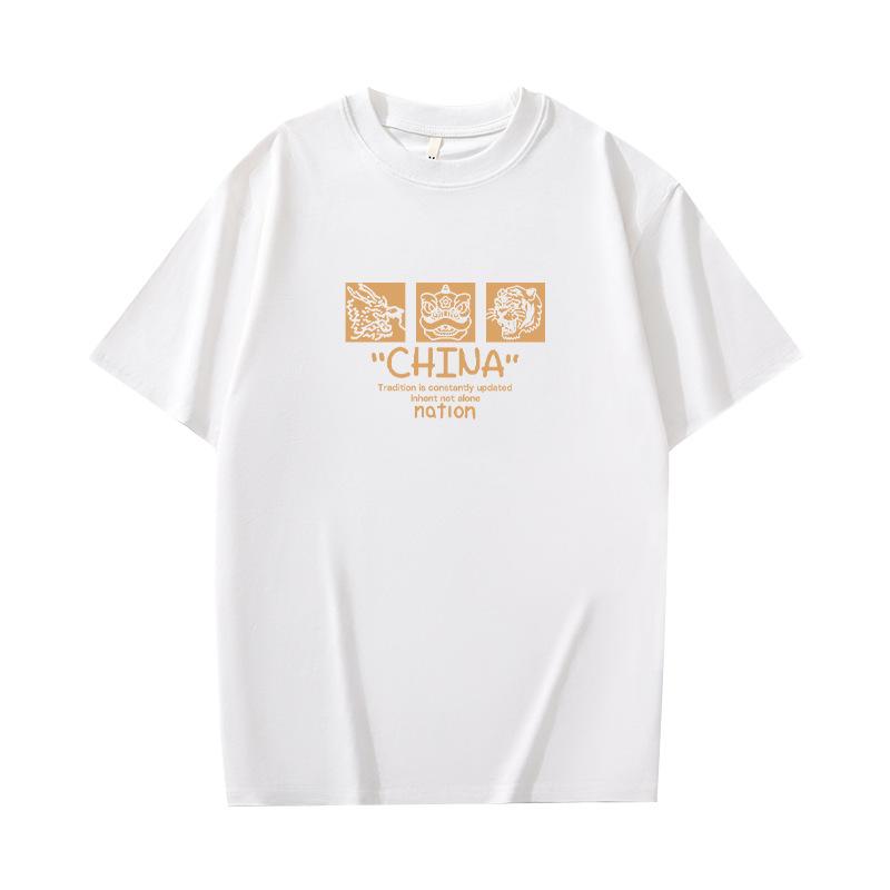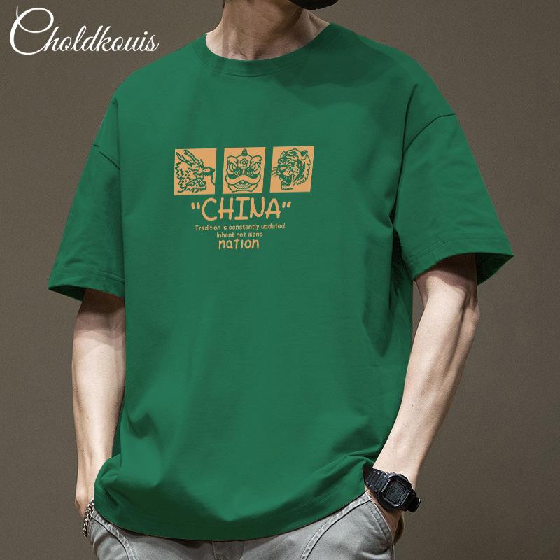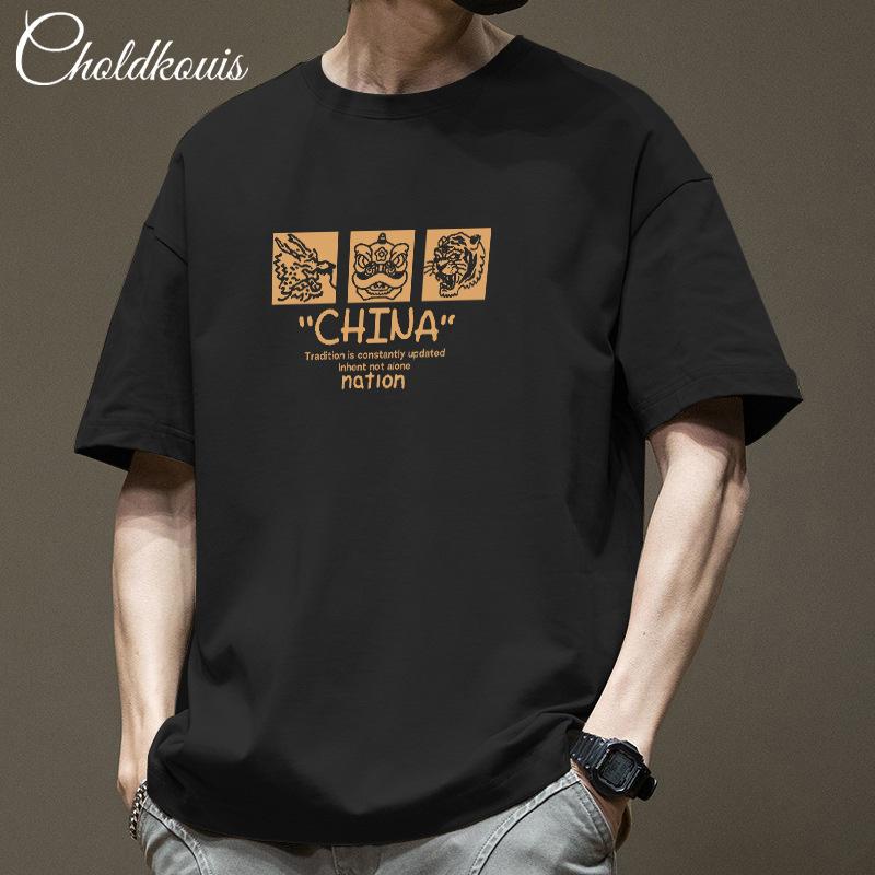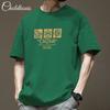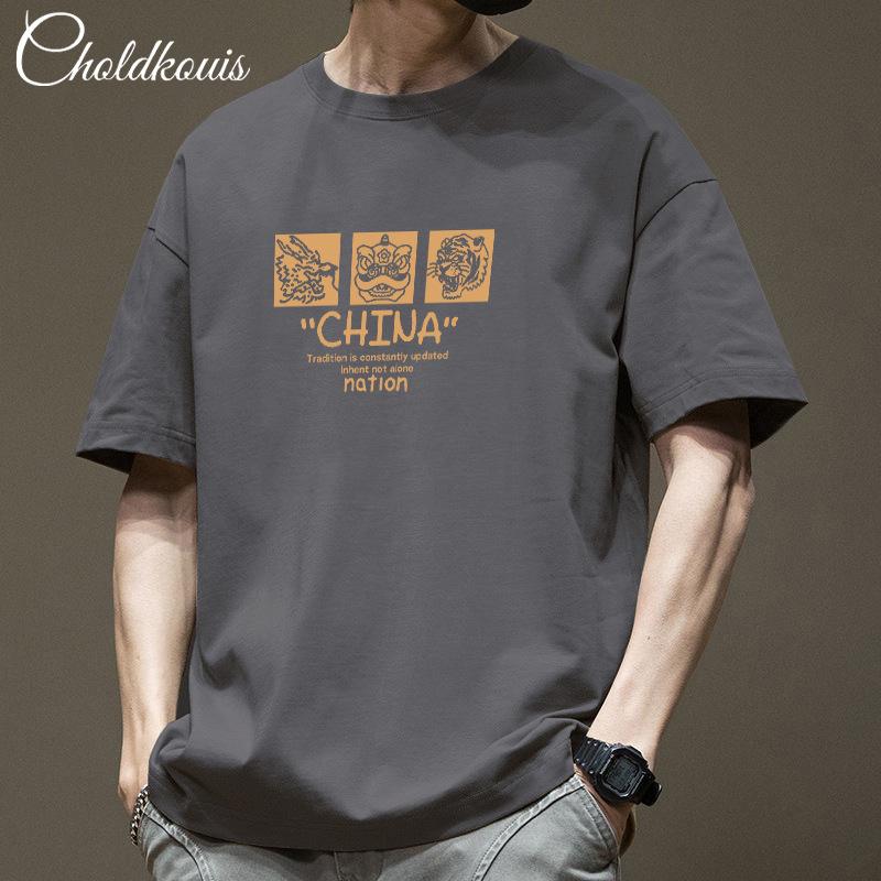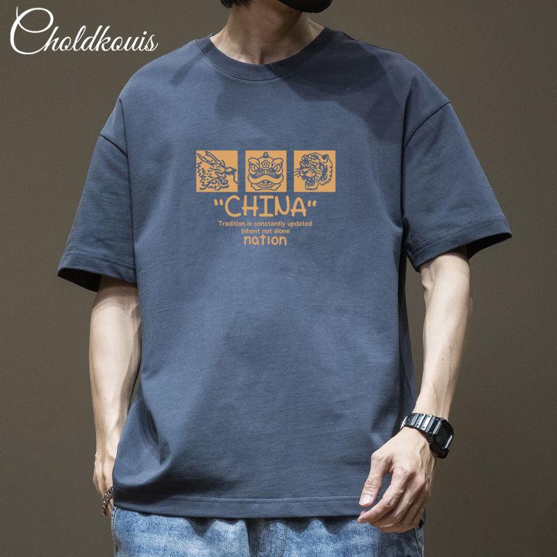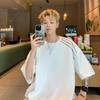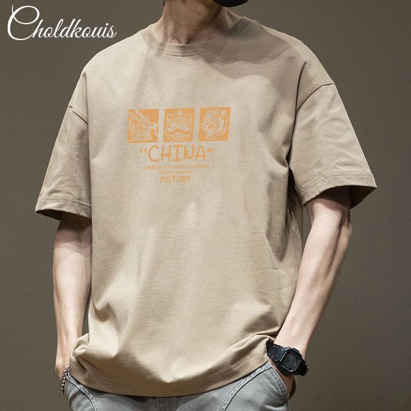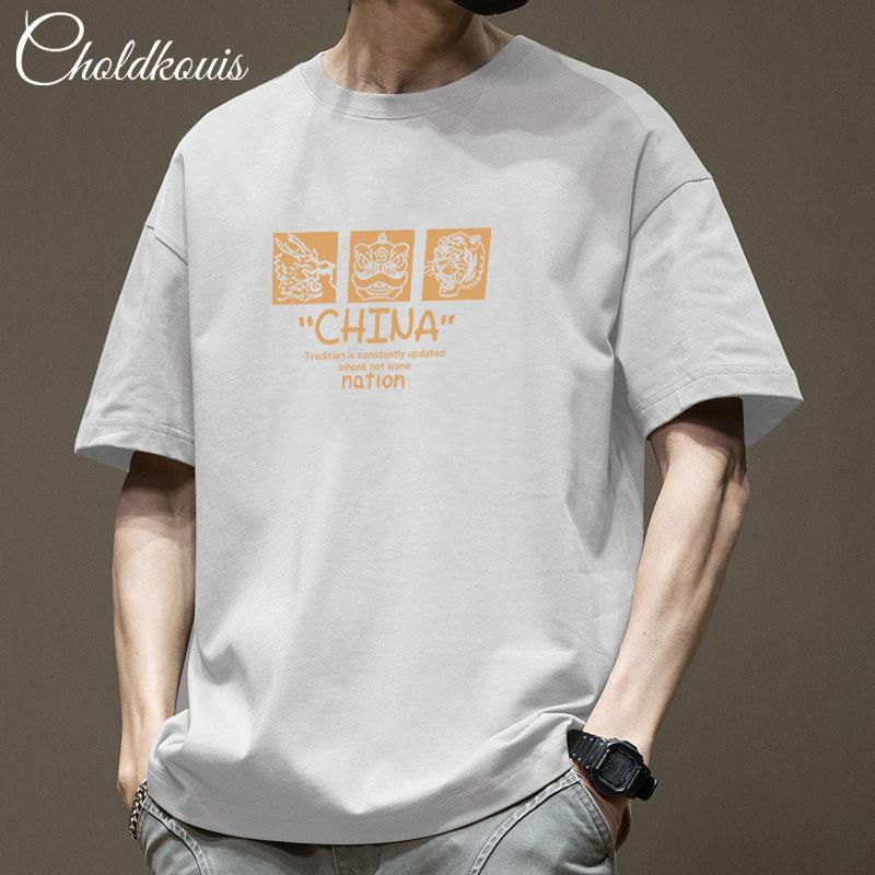 Camiseta japonesa pesada para hombre, de manga corta, de algodón puro, cuello redondo, holgada, de color liso, con base blanca, de media manga, con estampado de verano a la moda.