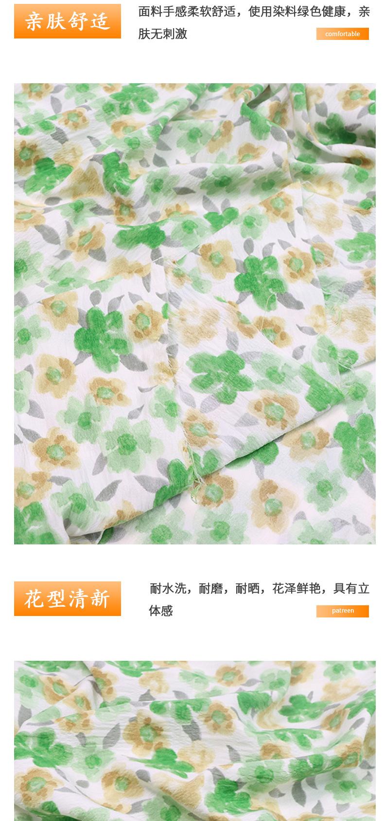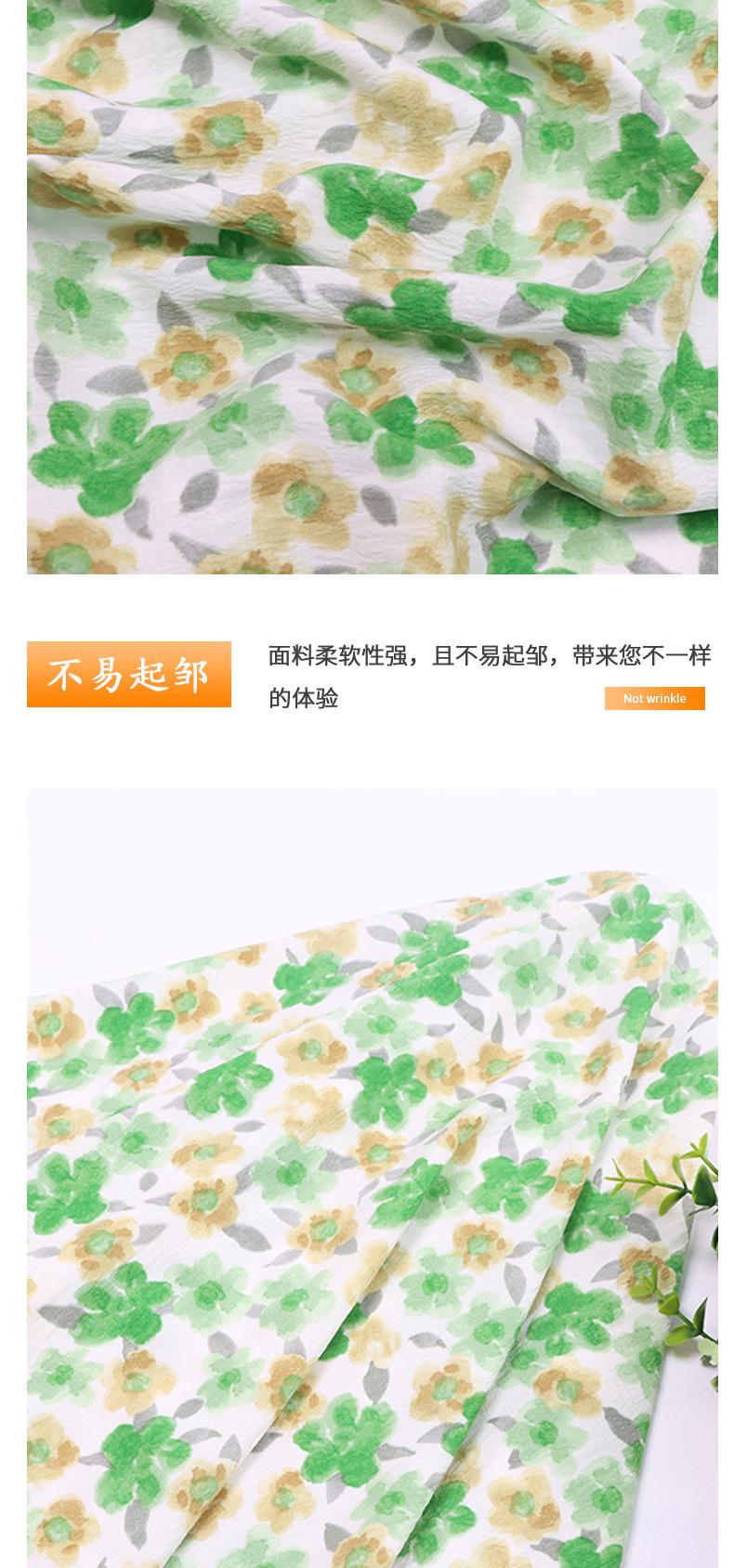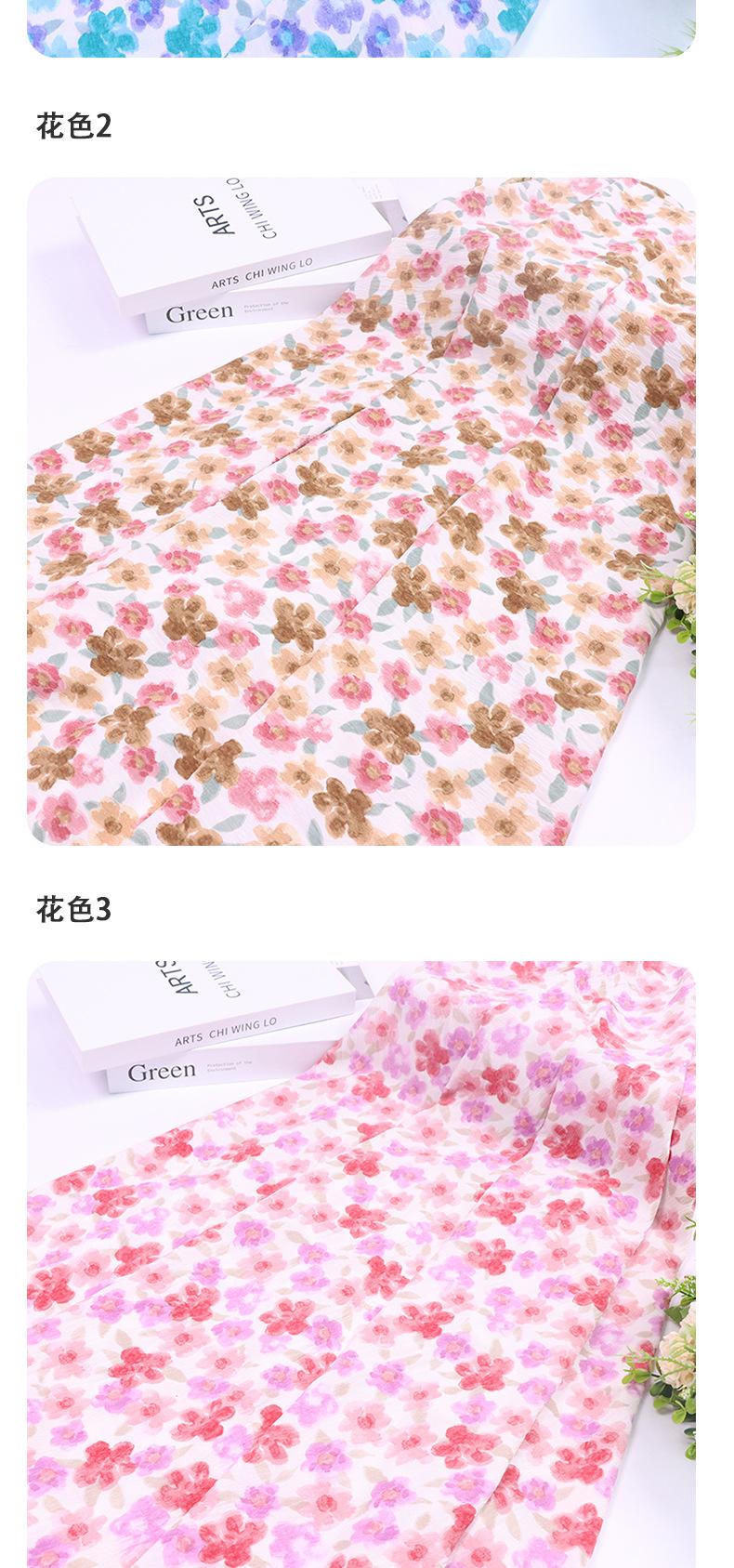 Vestido de gasa arrugada con burbujas de moda, tela estampada con flores pequeñas, estilo pastoral, 100 % poliéster.