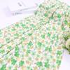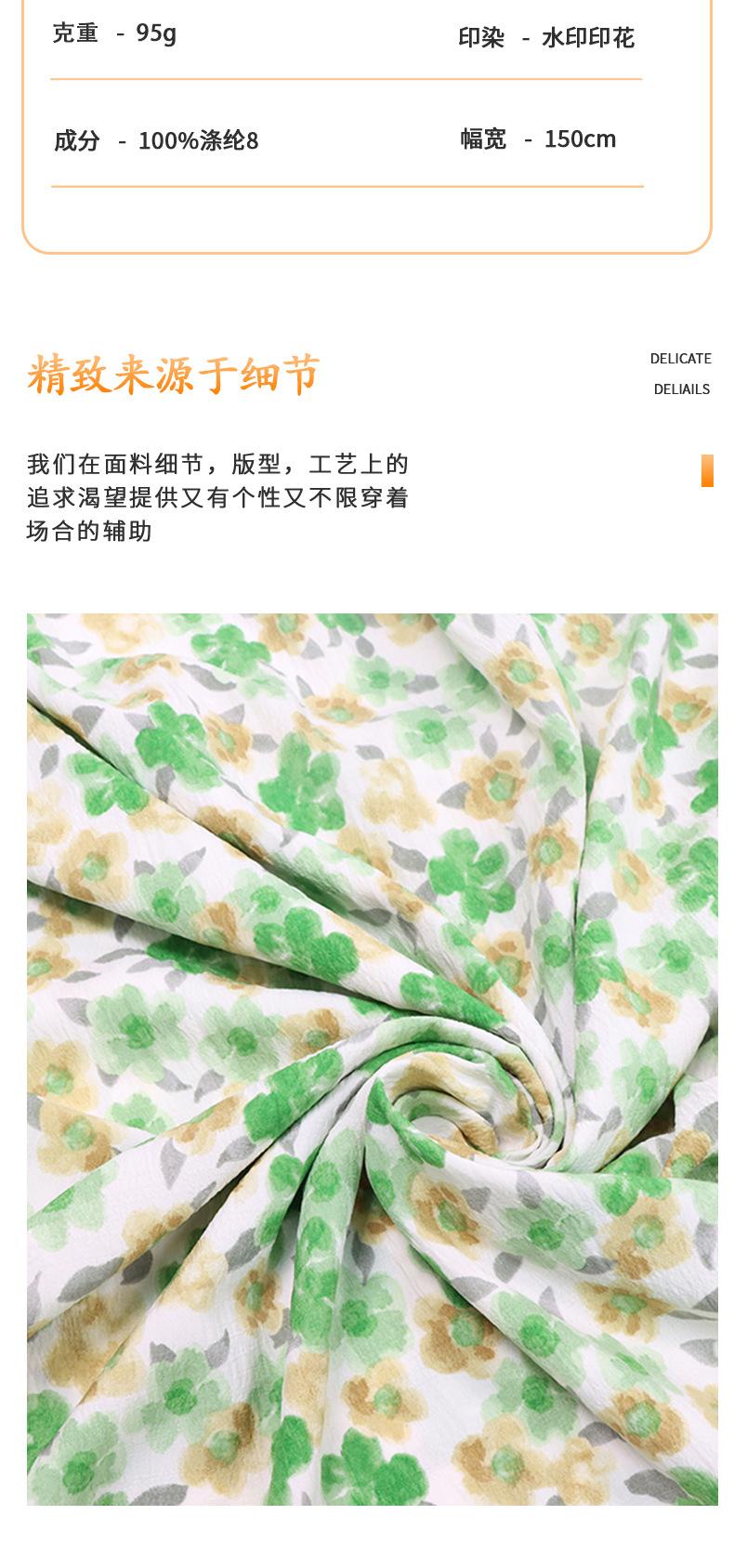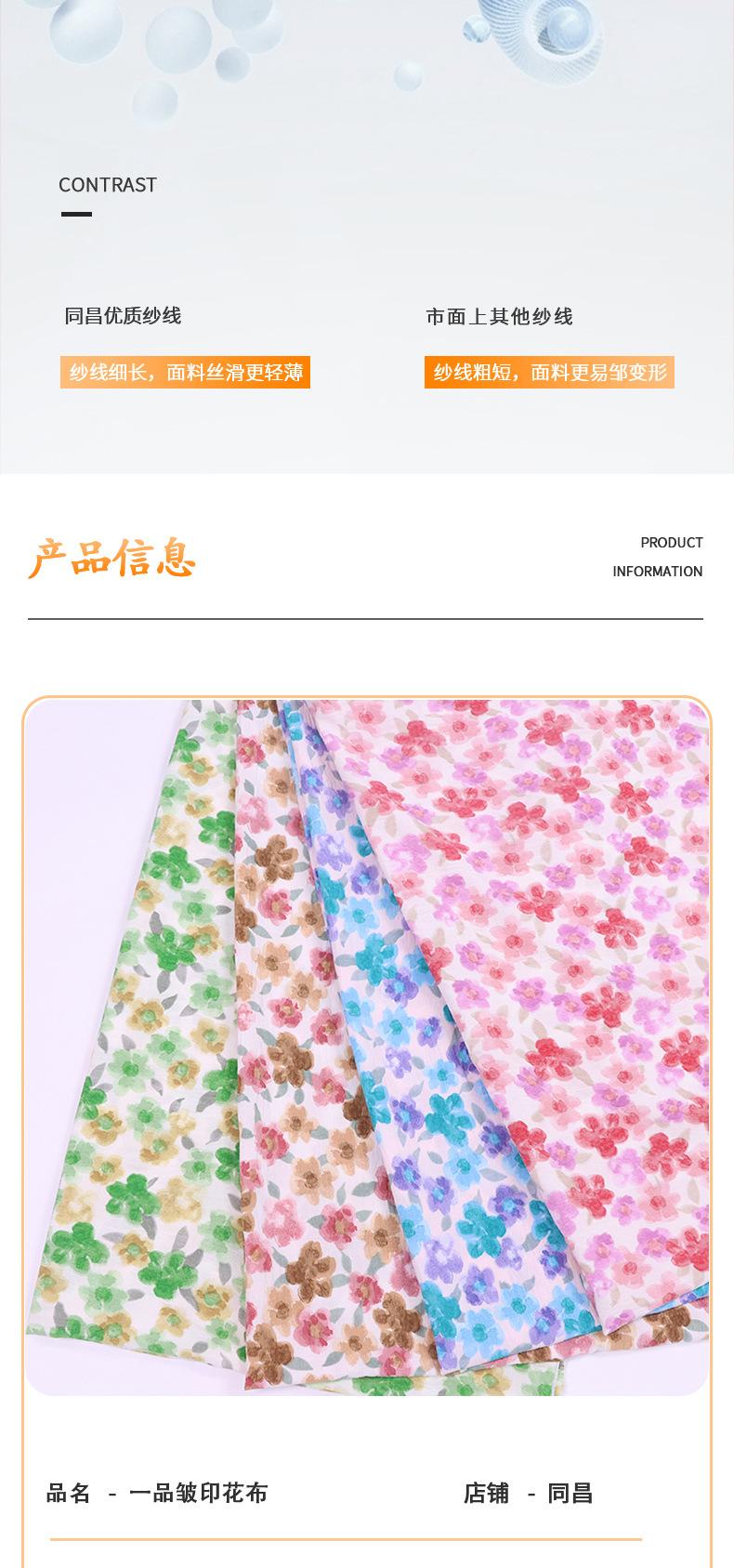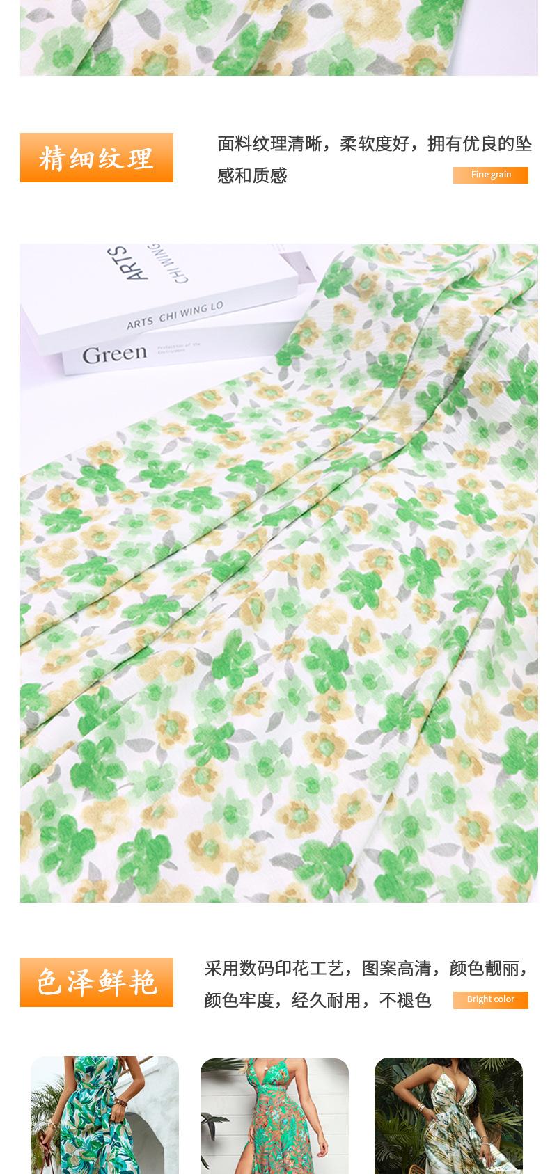 Vestido de gasa arrugada con burbujas de moda, tela estampada con flores pequeñas, estilo pastoral, 100 % poliéster.