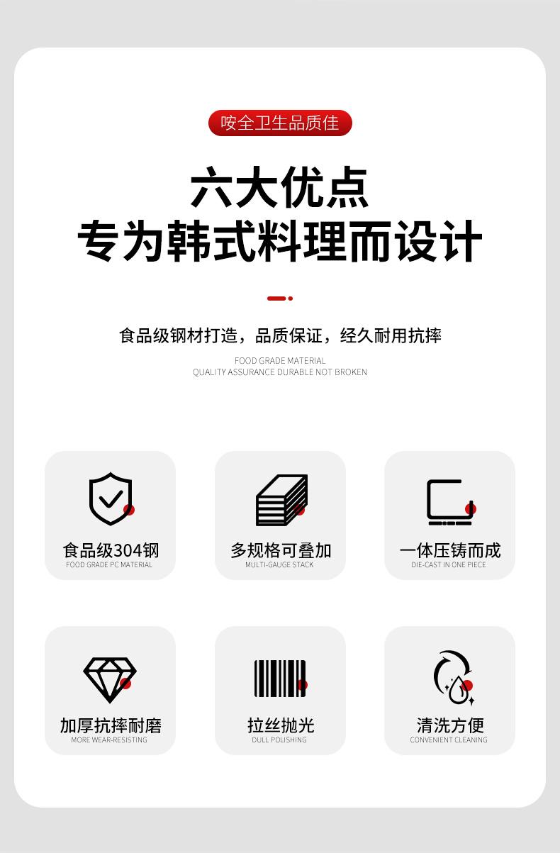 Plato rectangular de acero inoxidable 304 para barbacoa, con platos, para uso comercial, estilo coreano, cuadrado.