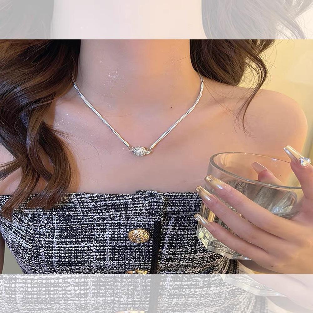 Atractivo ~ Collar Magnético Flash Diamante Multicapa para Mujer Diseño Nicho Lujo Ligero 2023 Nuevo Cadena Clavicular Celebridad de Internet
