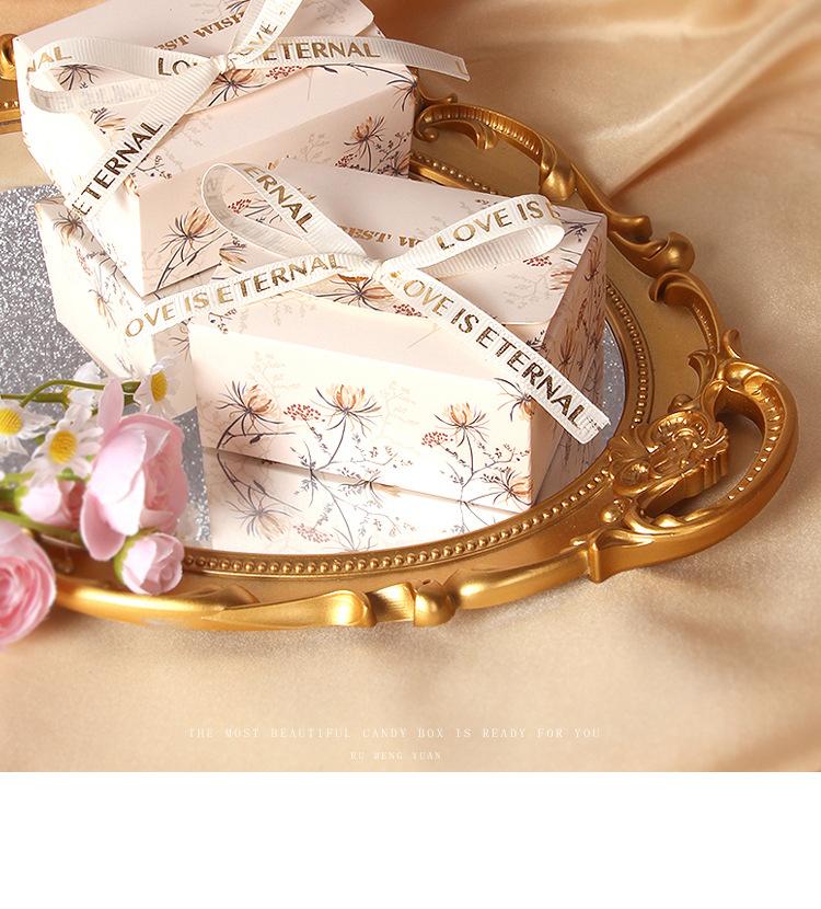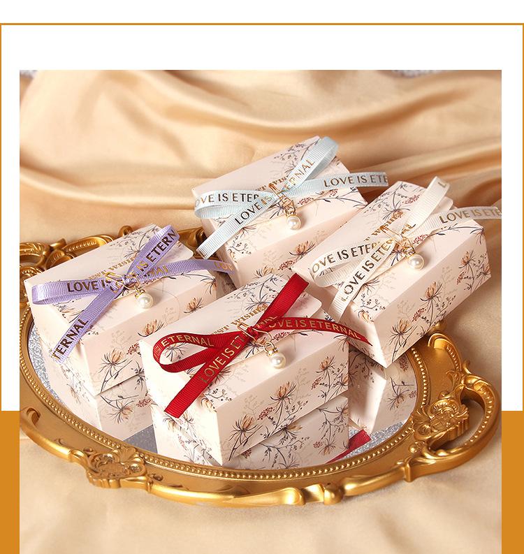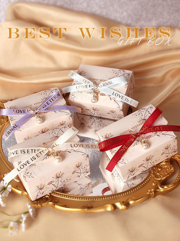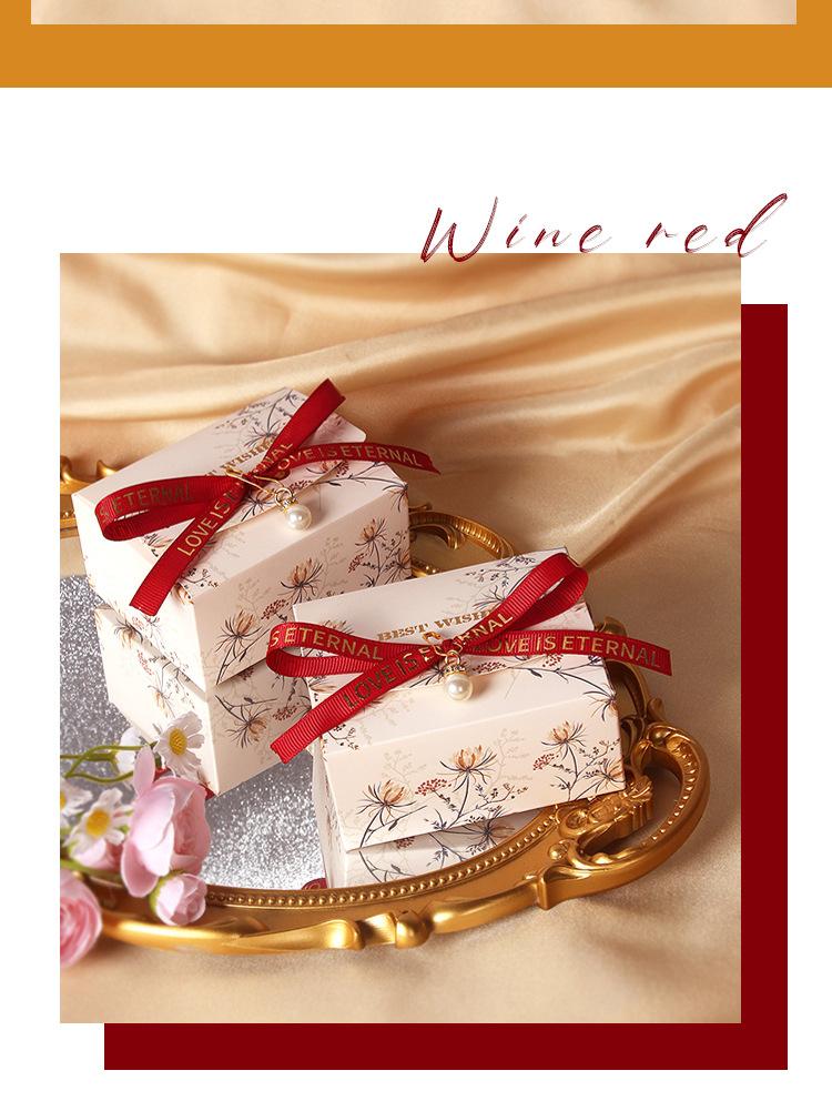 Floral Small Square Box Bronzing wine red Ribbon Pearl, Floral Small Square Box Bronzing wine red Ribbon, Flor...