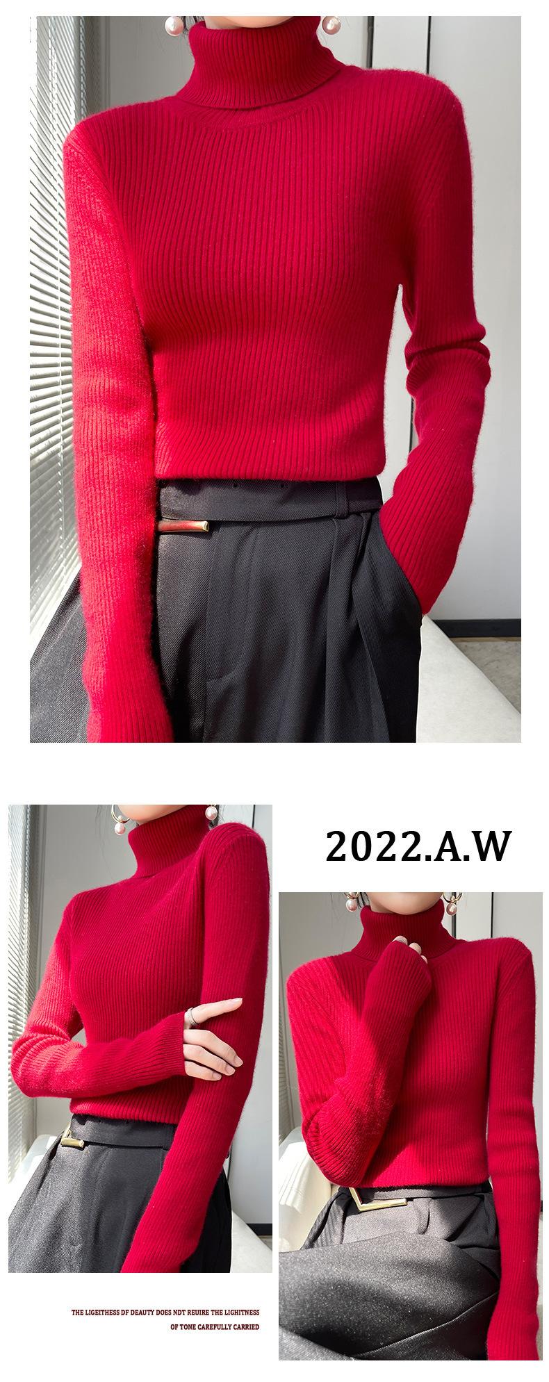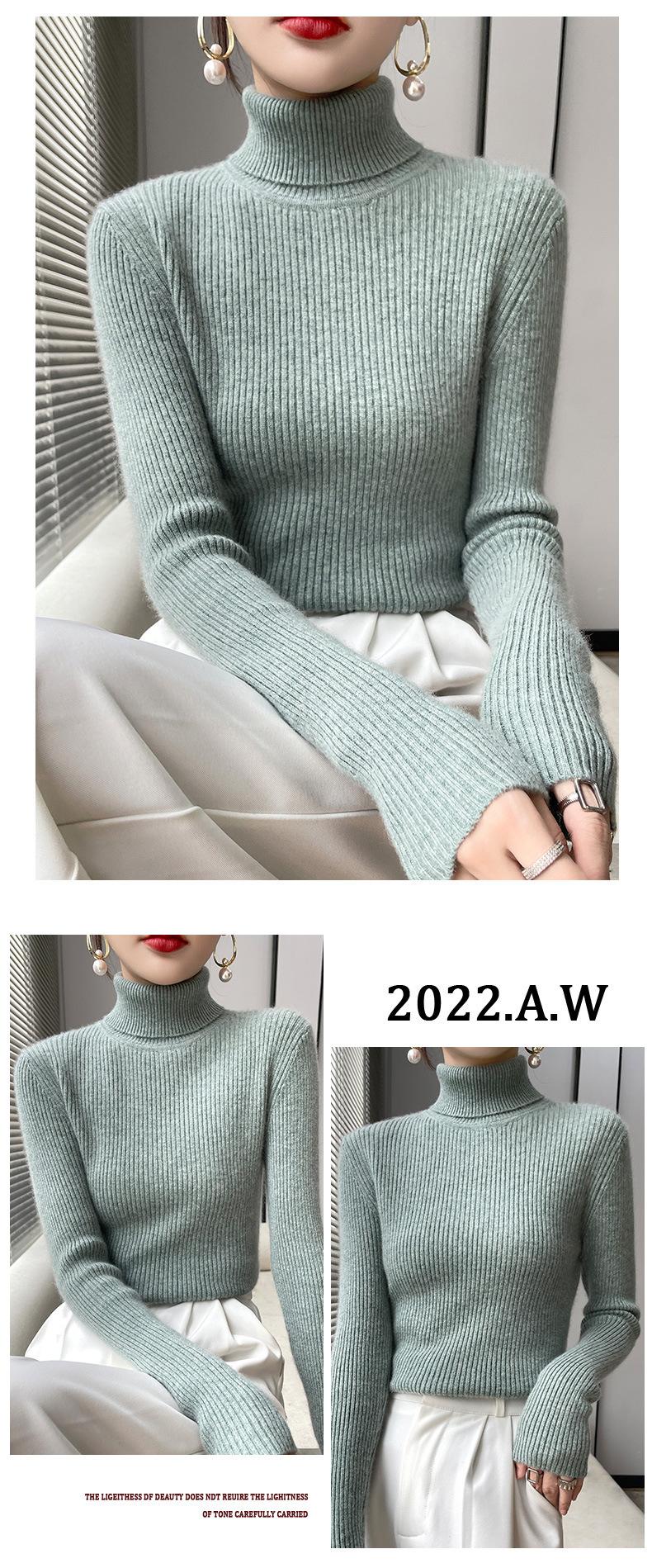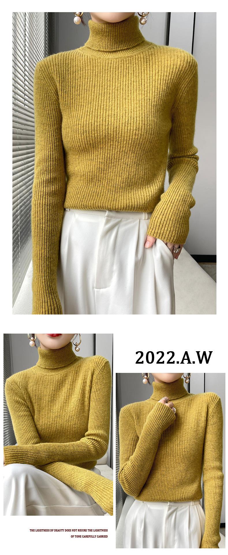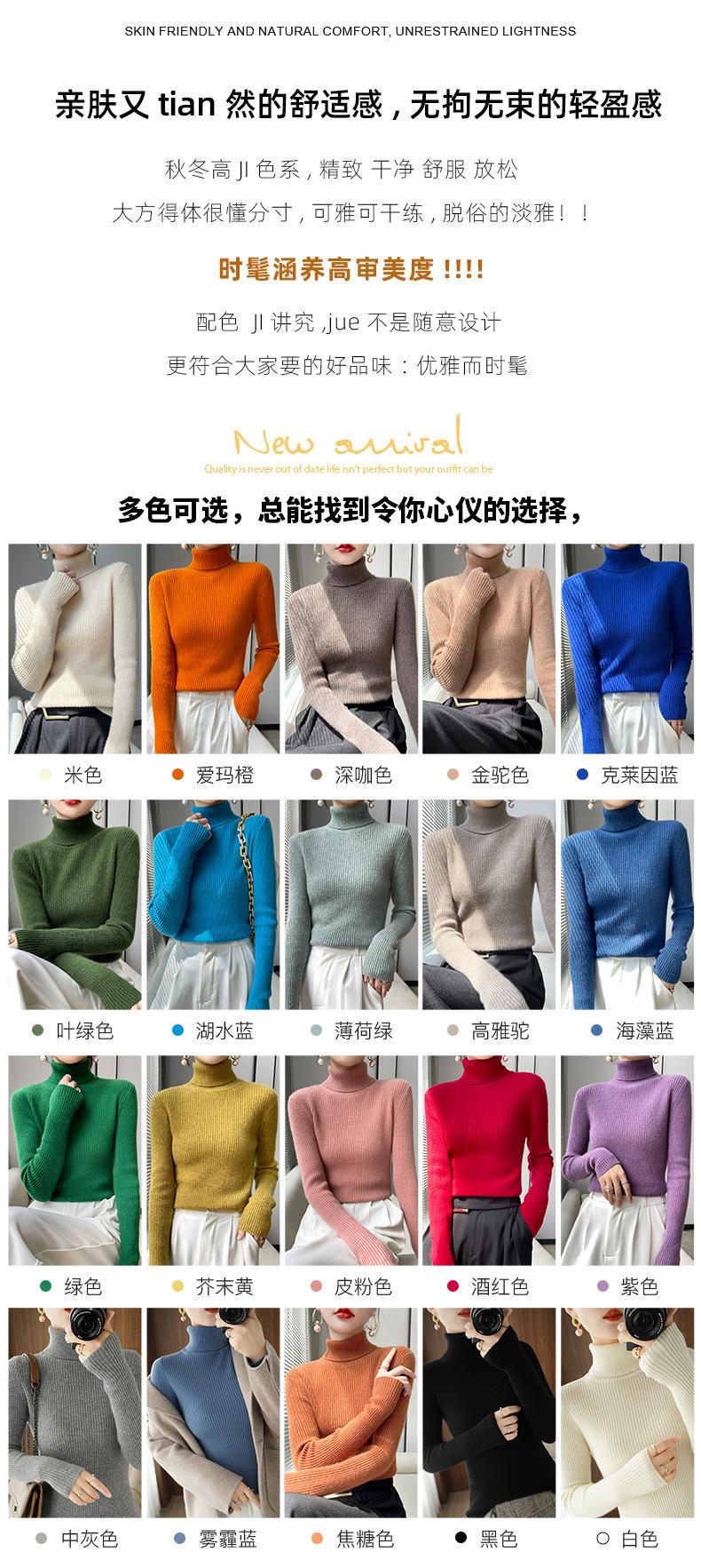 Suéter corto otoño e invierno suéter interior cuello alto ajustado fondo adelgazante suéter de manga larga ropa nueva transfronteriza para mujer