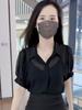 Diseño Francés Ligeramente Transparente Camisa Delgada de Manga Corta para Mujer Nuevo Verano 2025 Nicho Delgado y Elegante Holgado Top Tendencia