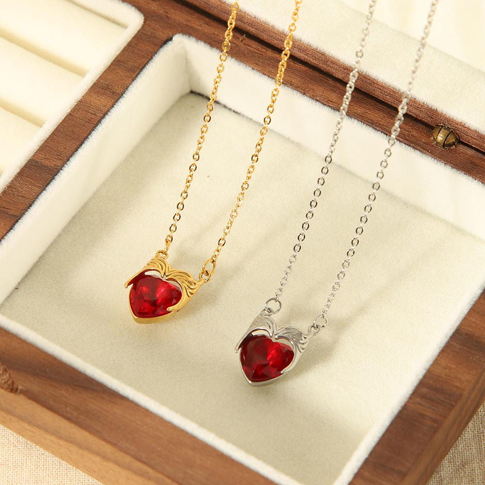 Collar vintage elegante y lujoso con colgante de rubí y cadena de clavícula de acero inoxidable de oro de 18 quilates con circonitas superpuestas.
