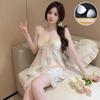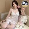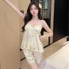 Pijamas transfronterizos para mujer, de verano, de seda de hielo y nieve, sexys y encantadores, con tirantes y almohadilla para el pecho, conjunto fino de dos piezas, ropa para el hogar