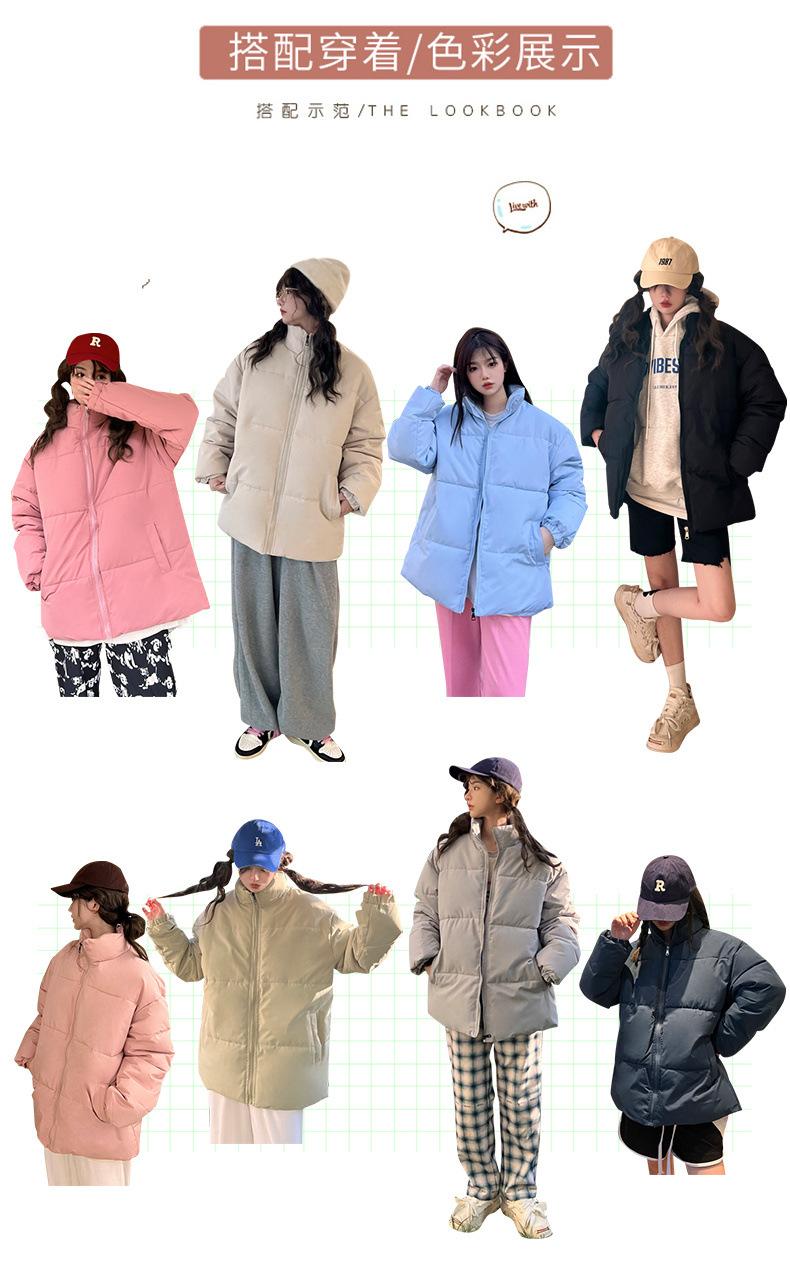 Chaqueta ligera de algodón acolchado con plumón para mujer, cuello alto, corta, versátil, holgada, acolchada de algodón, otoño e invierno 2023, nueva, suelta, fina
