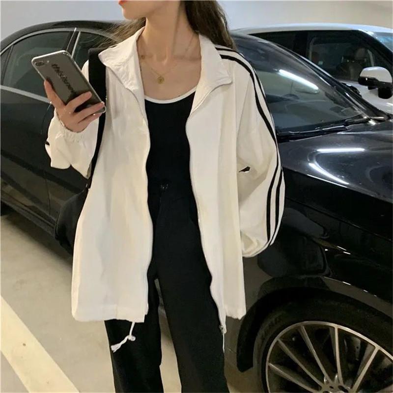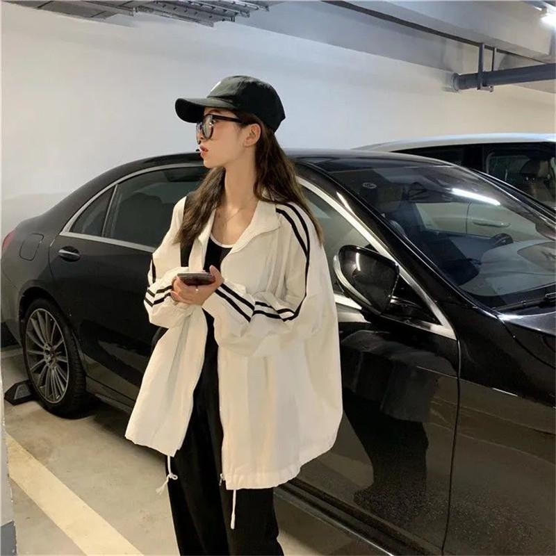 Chaqueta Blanca de Protección Solar para Mujer 2025 Verano Nuevo Suelta Estilo Coreano Estudiante Top de Rayas de Manga Larga con Protección UV