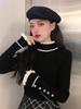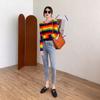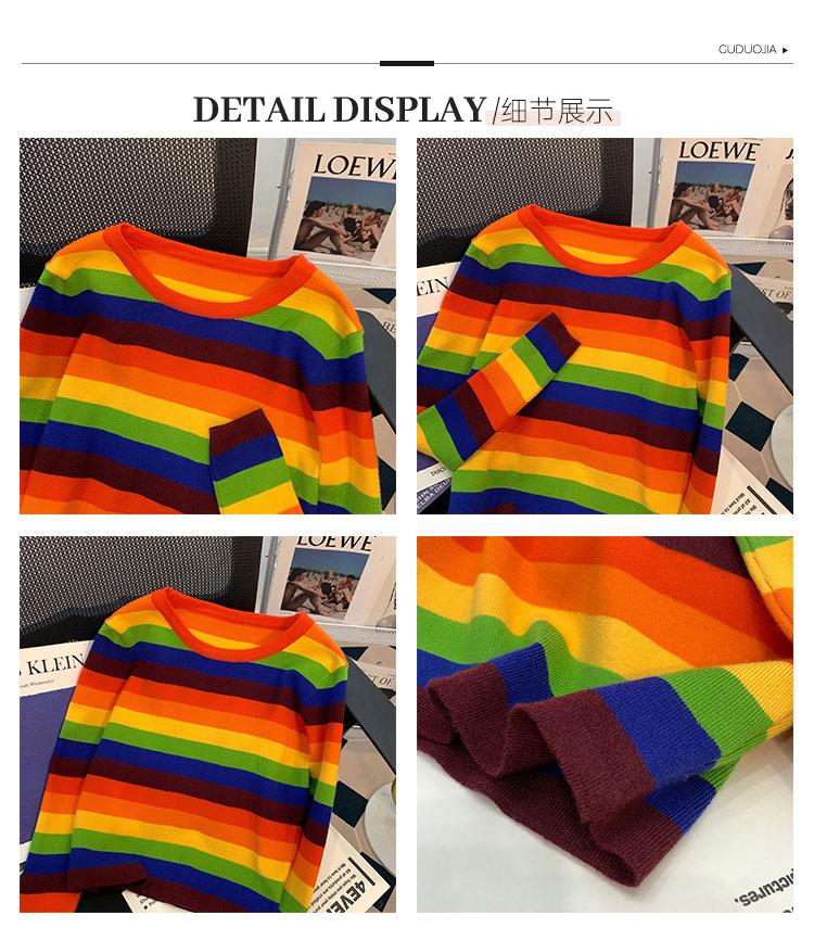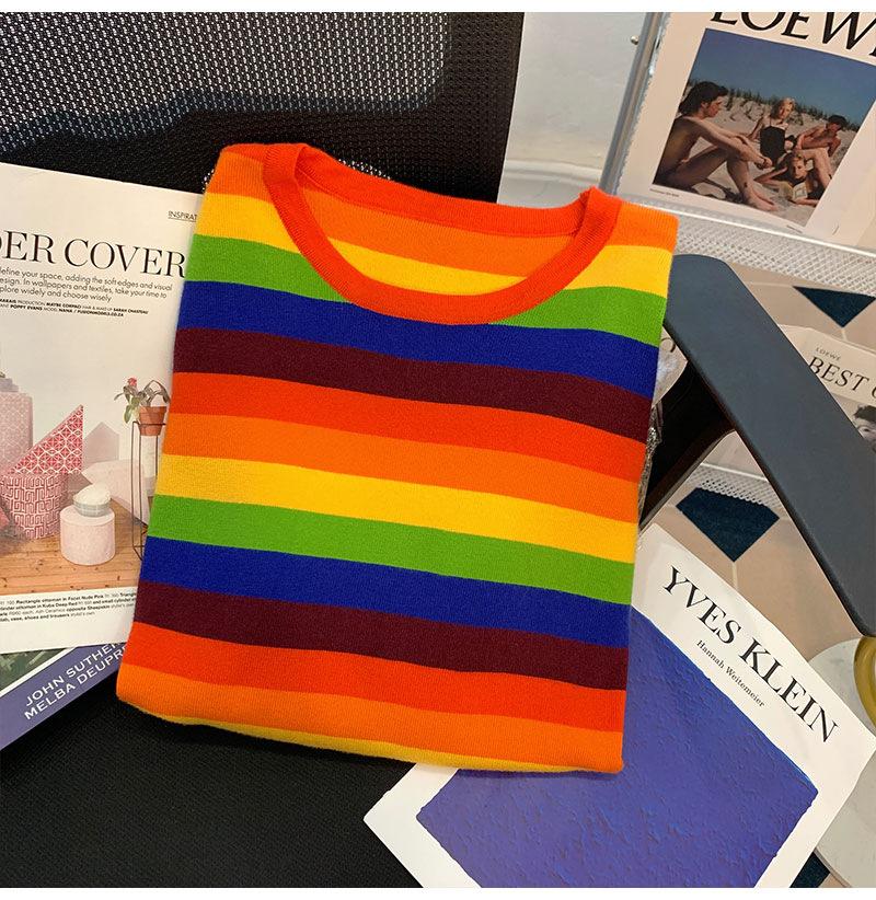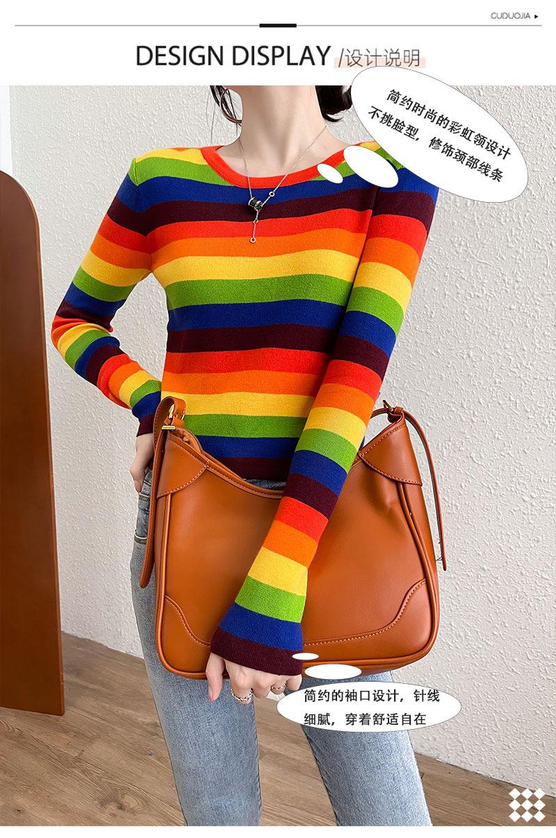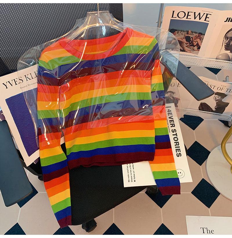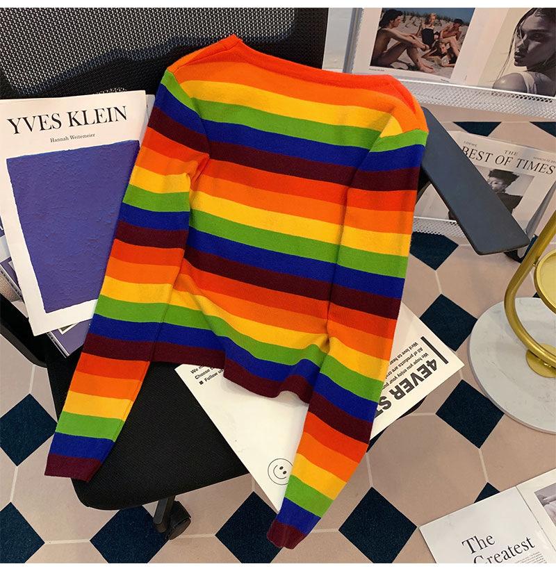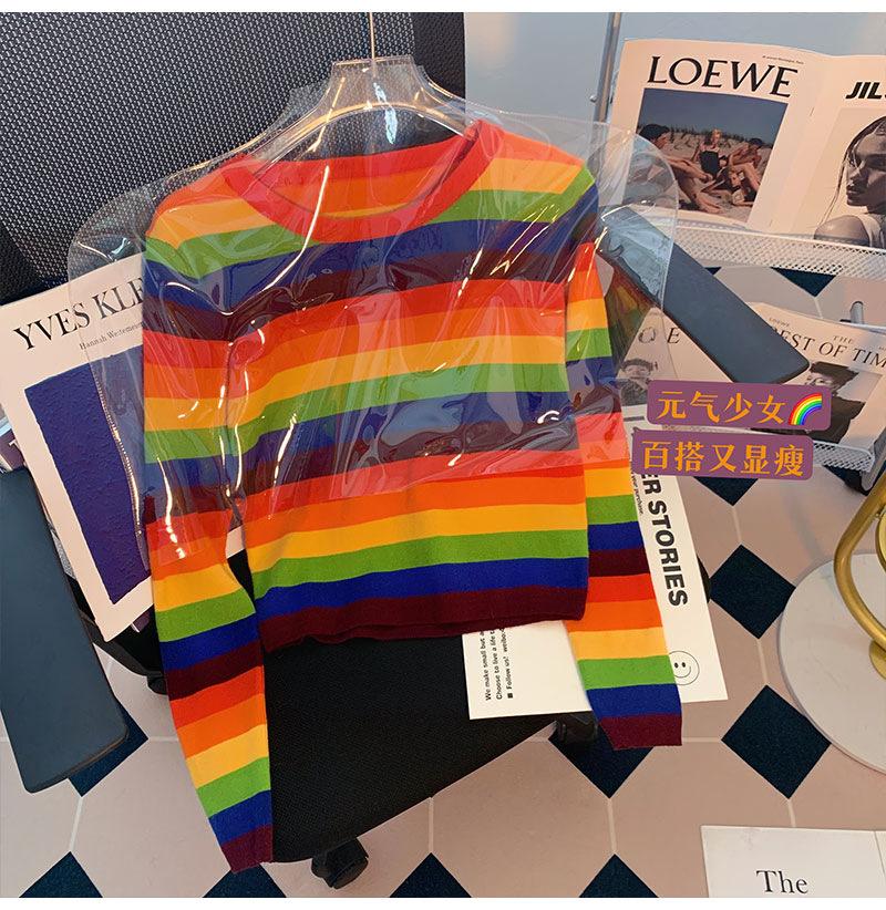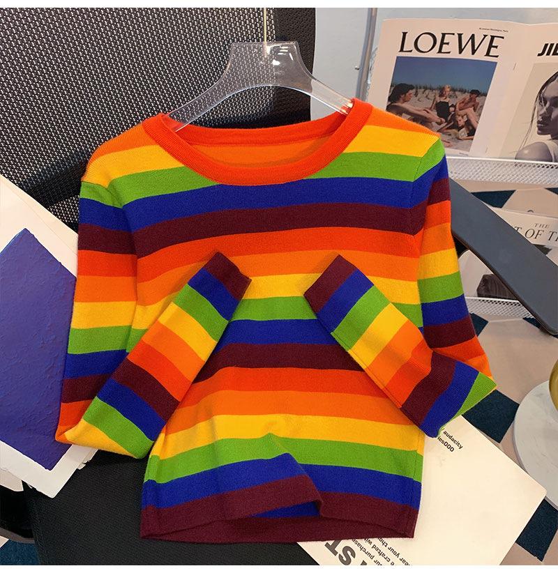 Suéter de Punto Fondo Camiseta de Manga Larga para Mujer Delgada Primavera Principios de Otoño Rayas Arcoíris Ropa 2025 Nuevo Top Corto con Ombligo Descubierto