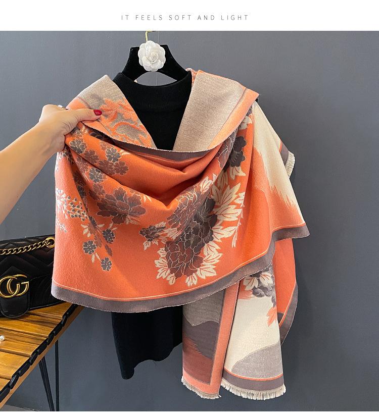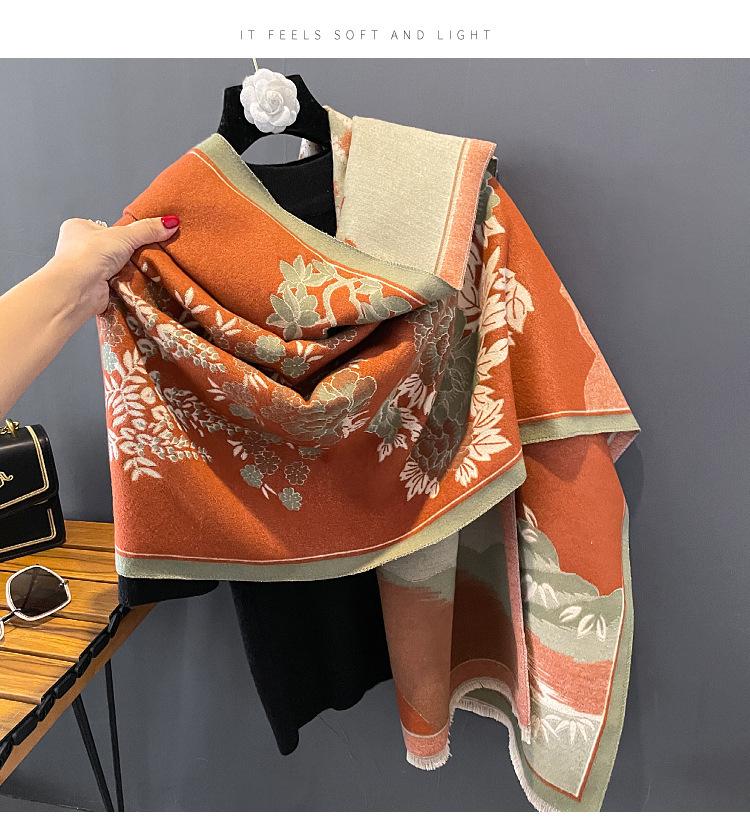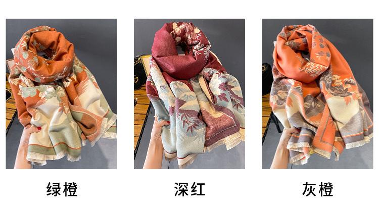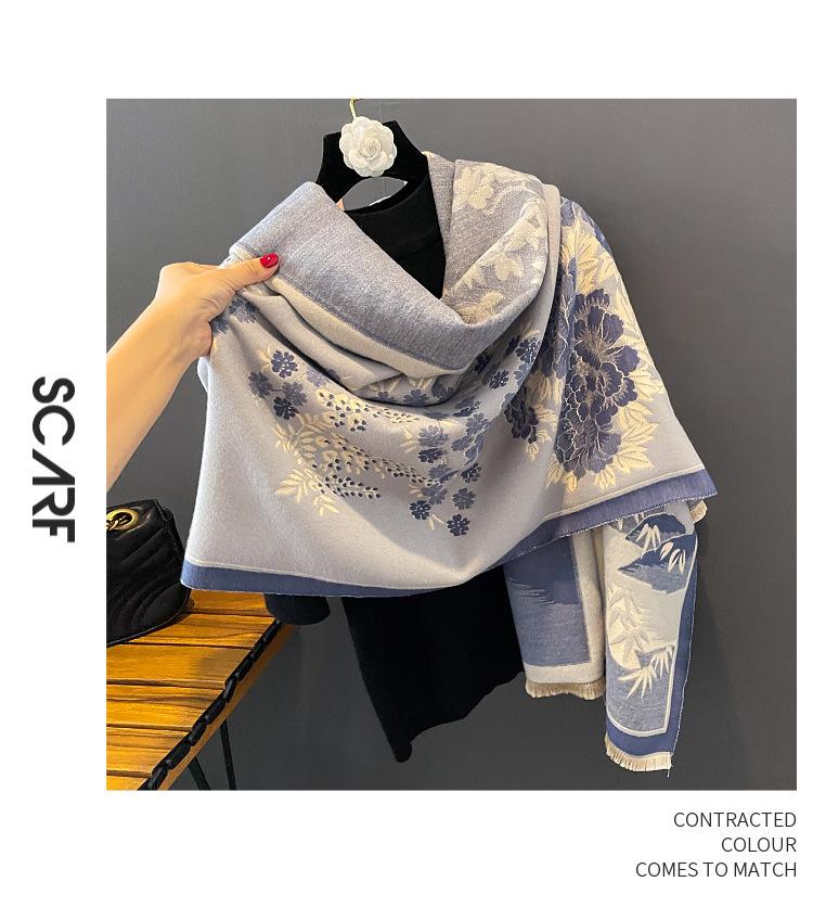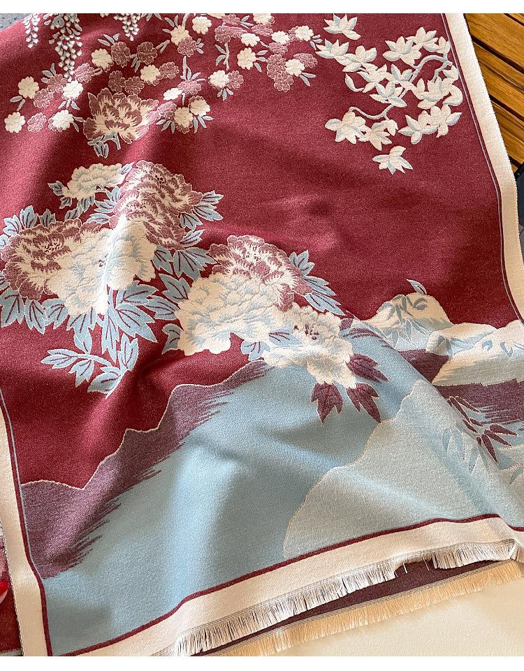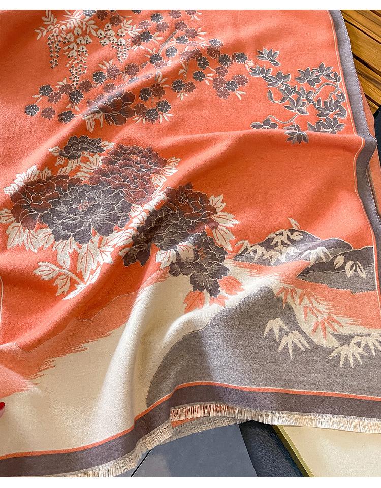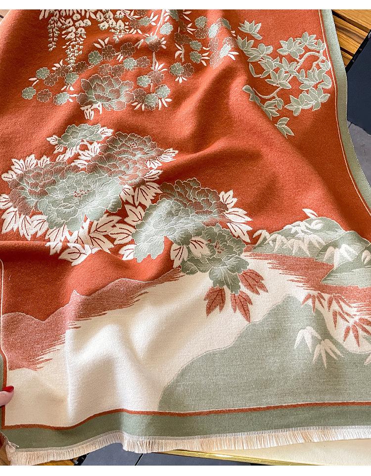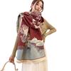 Bufanda de cachemira de imitación artística de invierno para mujer, elegante, nueva, con flores y paisajes, gruesa, cálida, resistente al viento, combinable con todo.