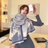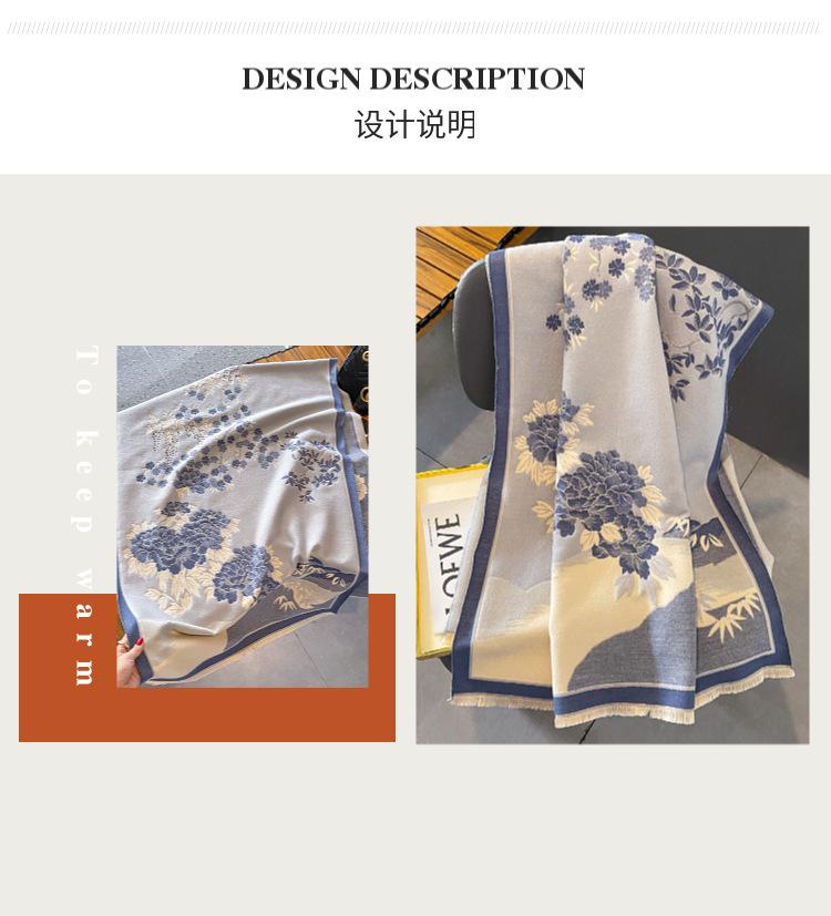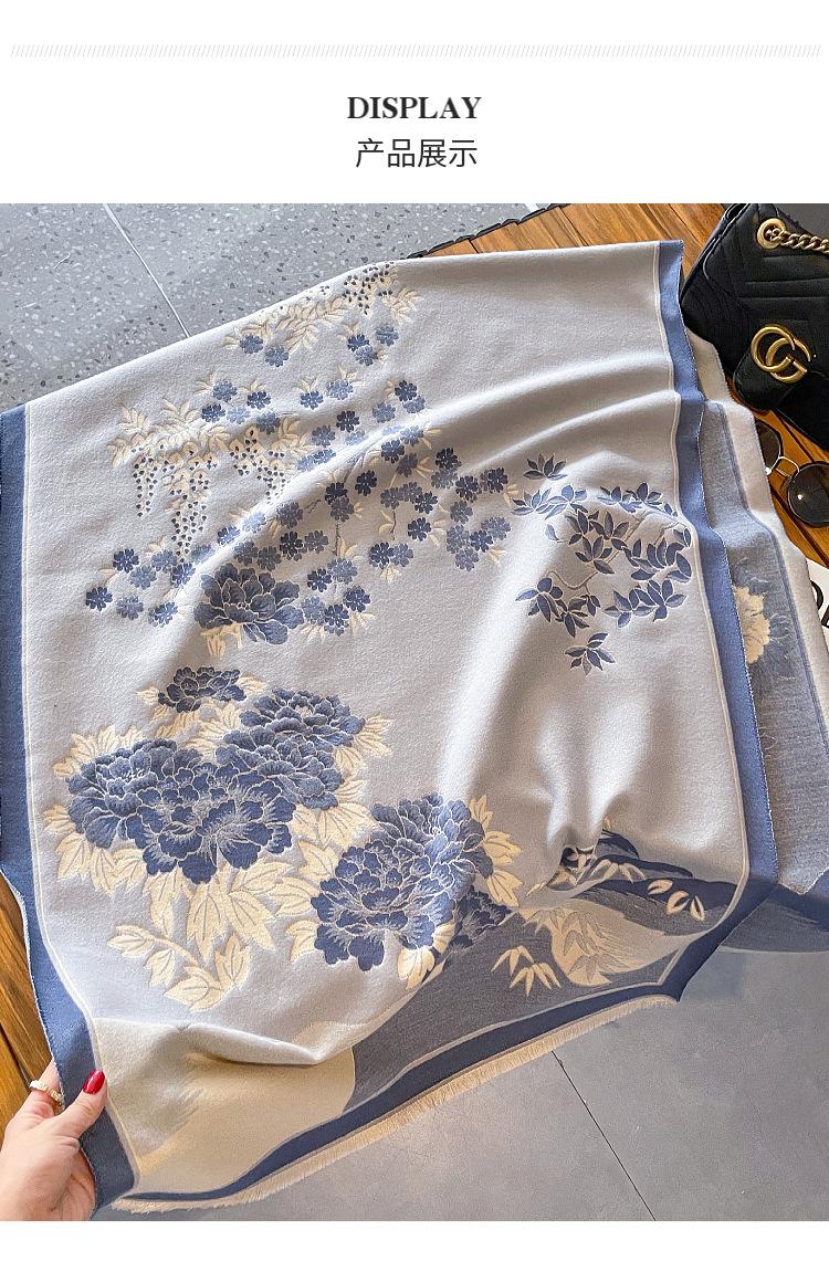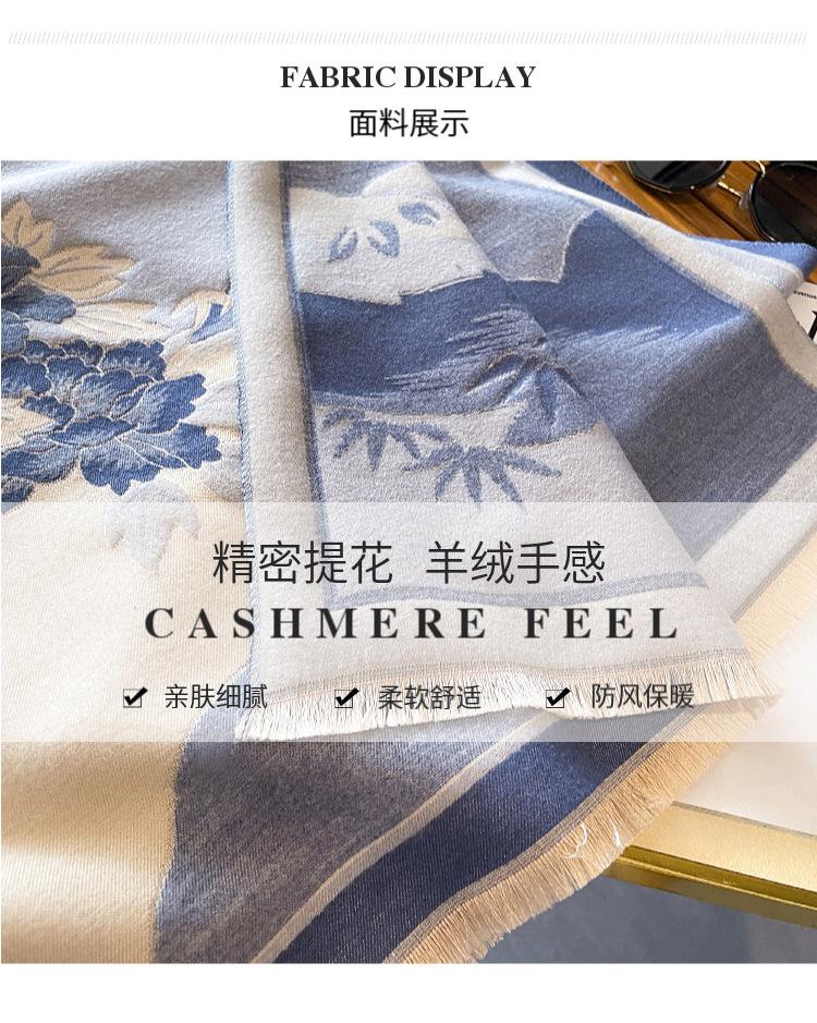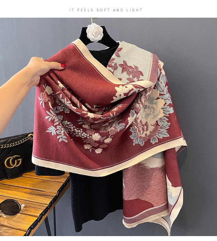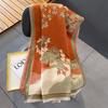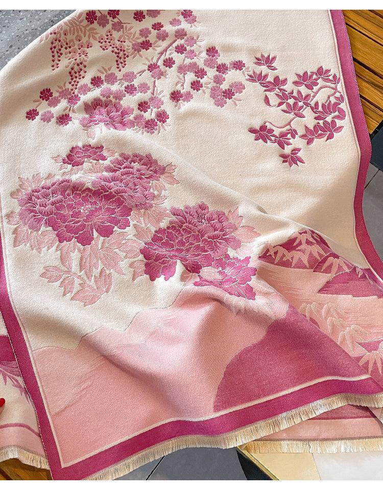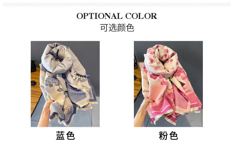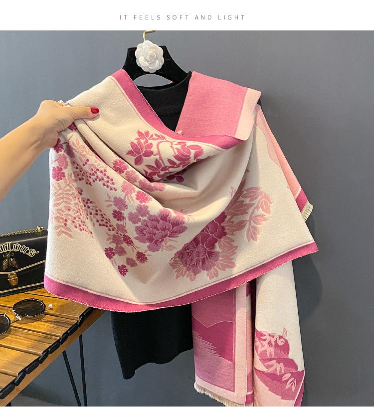 Bufanda de cachemira de imitación artística de invierno para mujer, elegante, nueva, con flores y paisajes, gruesa, cálida, resistente al viento, combinable con todo.