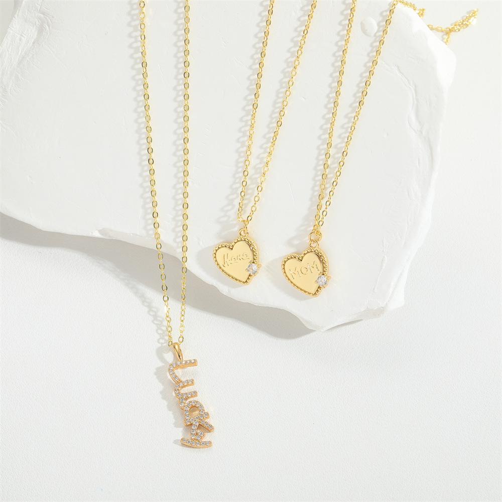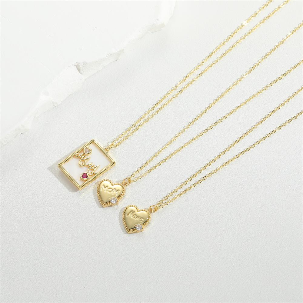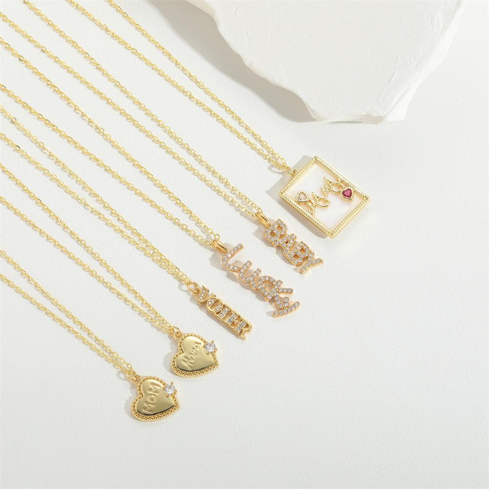 [Nombre del producto] Collar simple de oro real chapado en cobre con cadena de clavícula y colgante para el Día de la Madre, tendencia exquisita y de gran venta transfronteriza, joyería para mujer